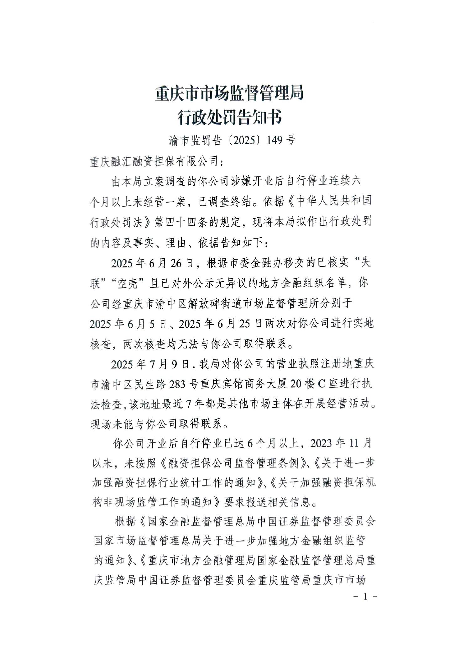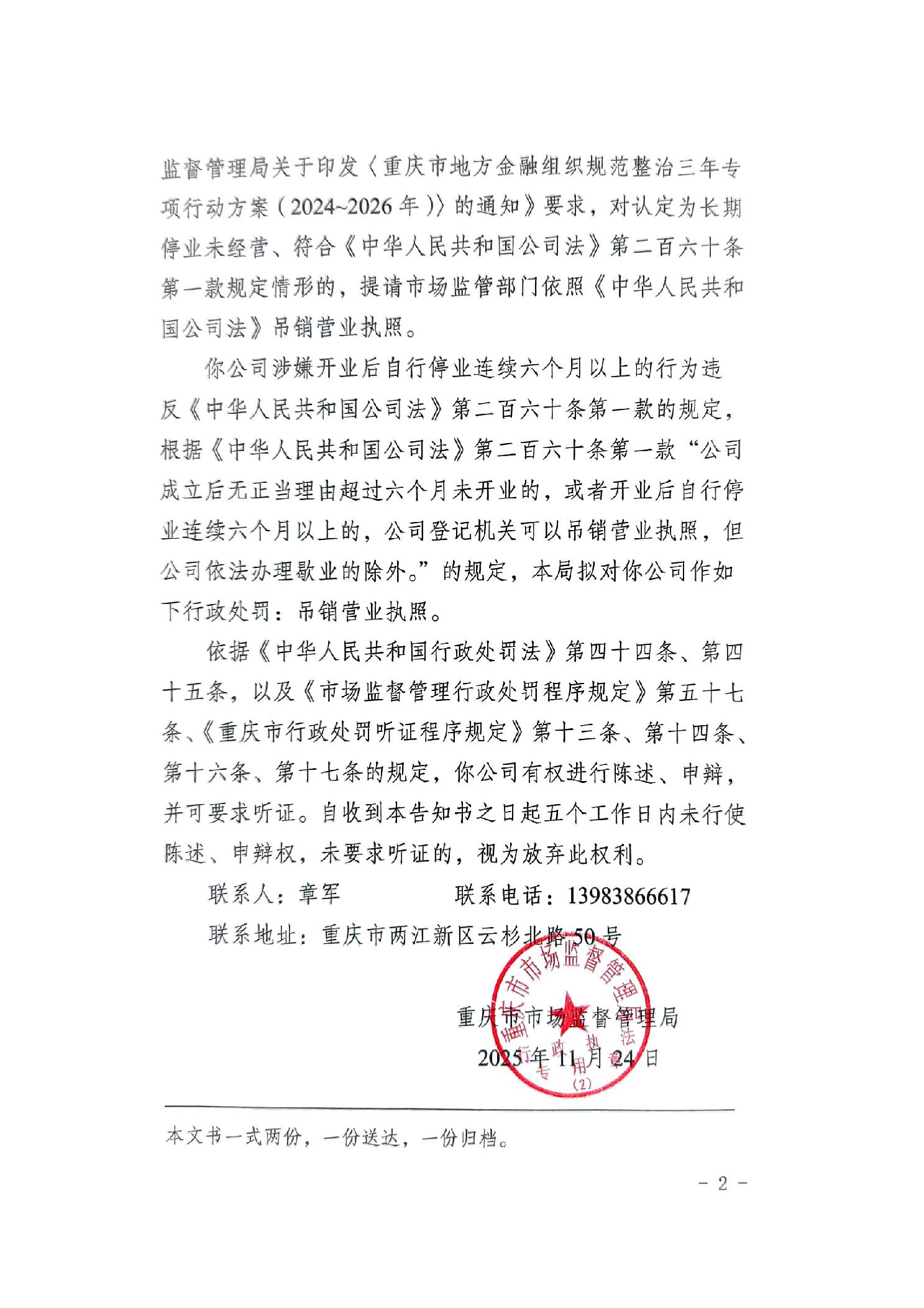 重庆市市场监督管理局行政处罚告知书(渝市监罚告〔2025〕149号)