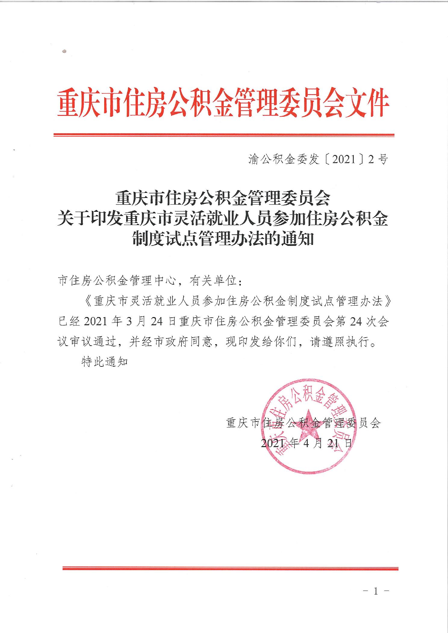重庆市住房公积金管理委员会关于印发重庆市灵活就业人员参加住房公积金制度试点管理办法的通知