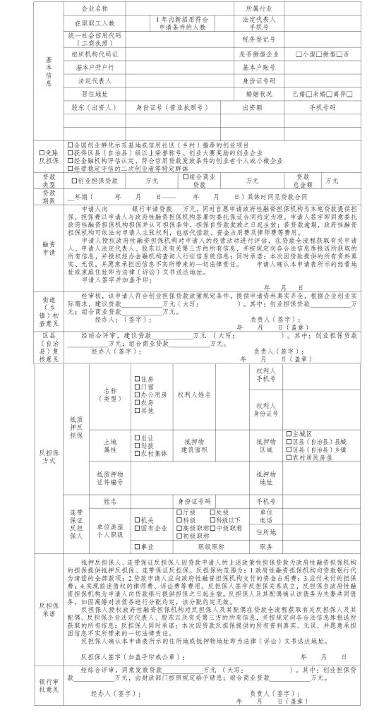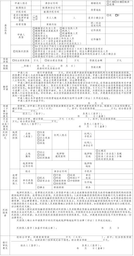 申请创业担保贷款的个人或小微企业应如实填写《创业担保贷款申请表》(附件1),由当地人力社保部门进行资格审核,通过审核的个人或小微企业,向经办银行、经办担保机构提交申请。经办银行、经办担保机构收到申请后,开展贷前保前审查,对符合相关贷款和担保条件的,与其签订贷款和担保合同。