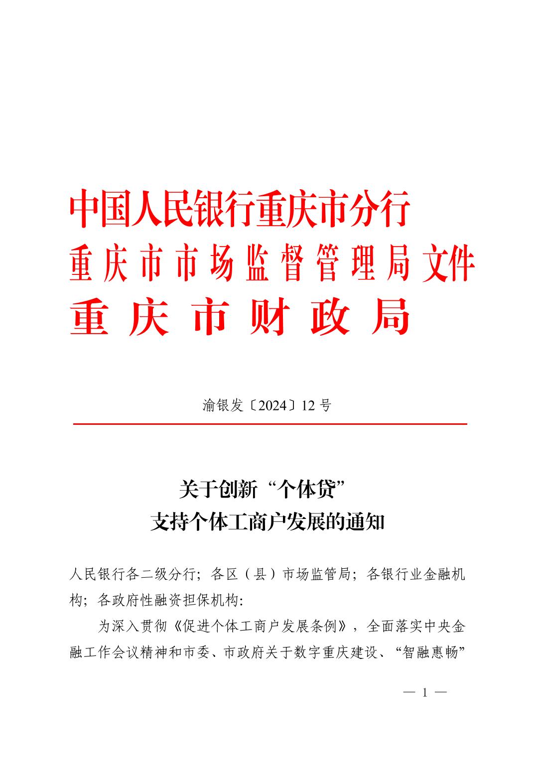关于创新“个体贷” 支持个体工商户发展的通知