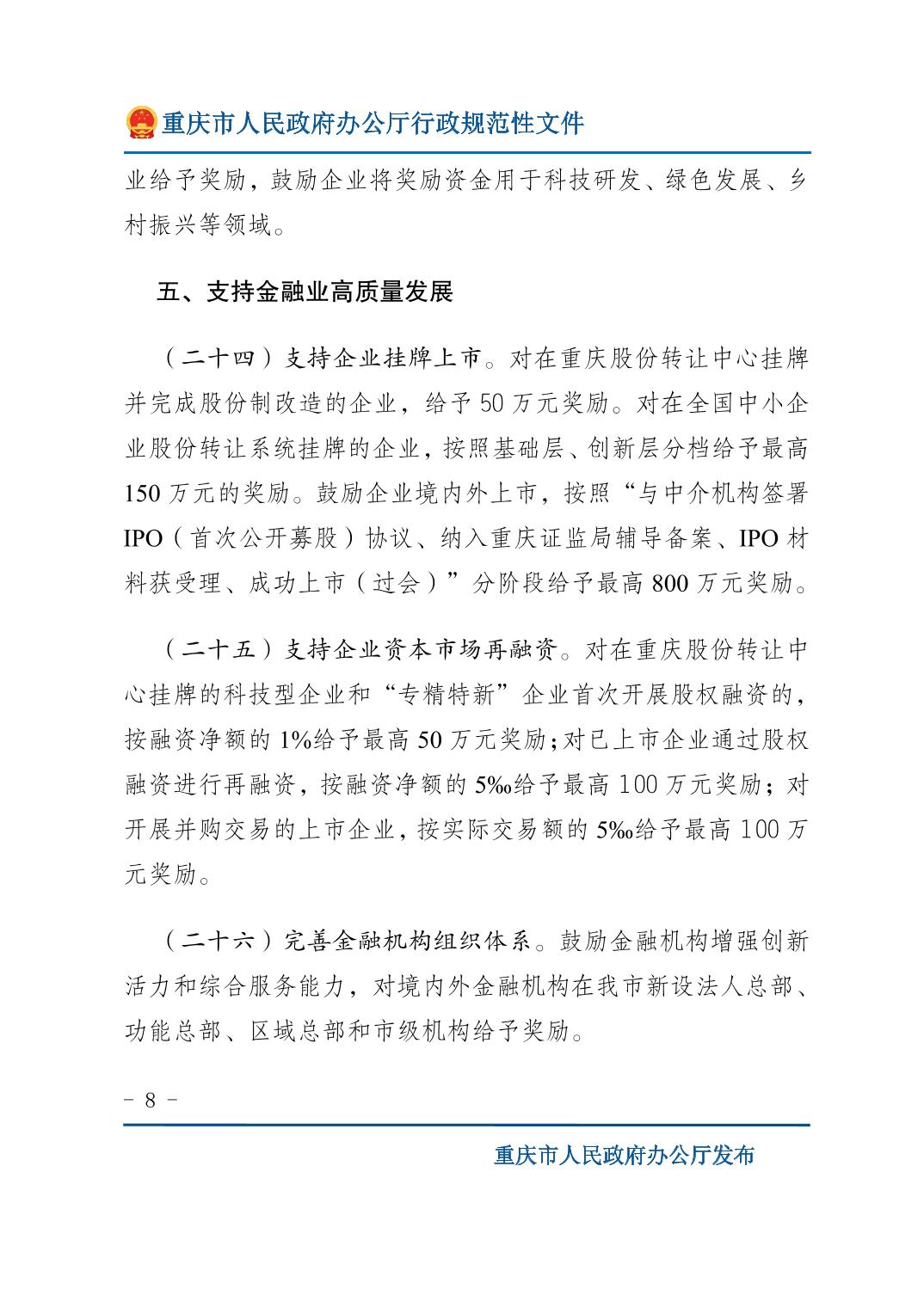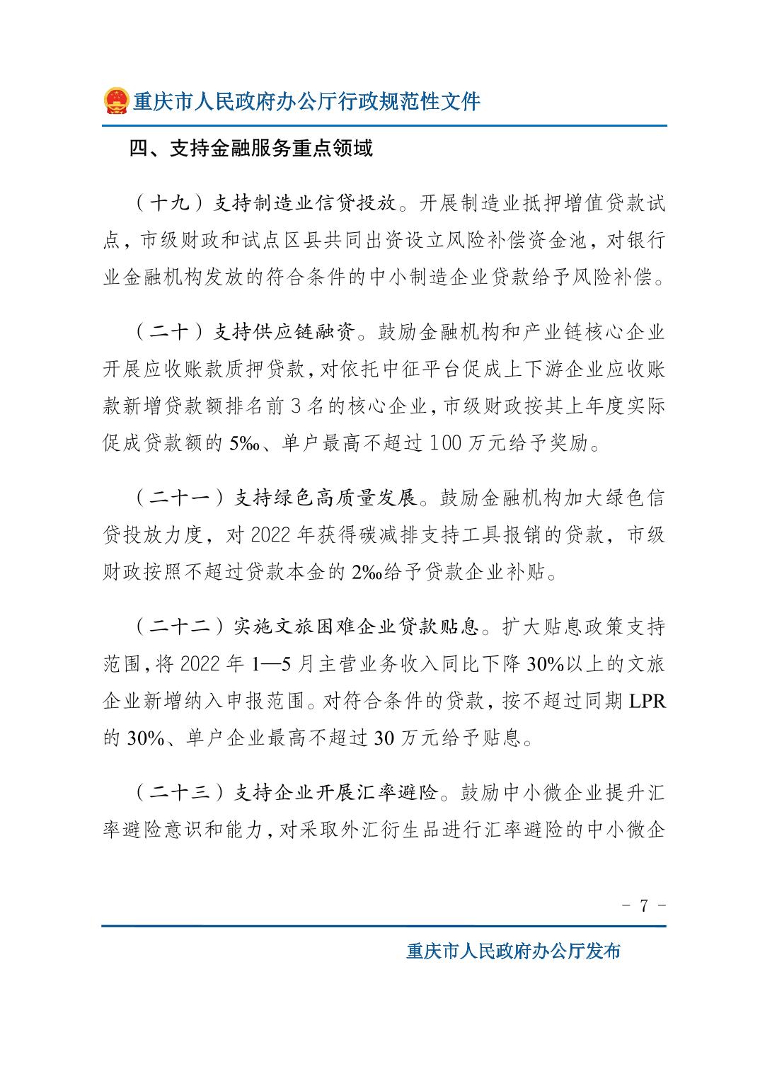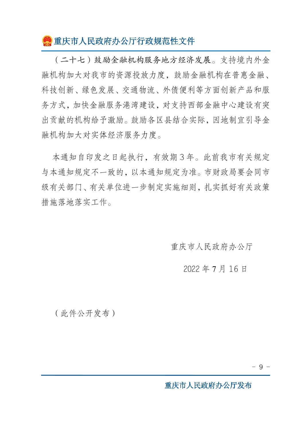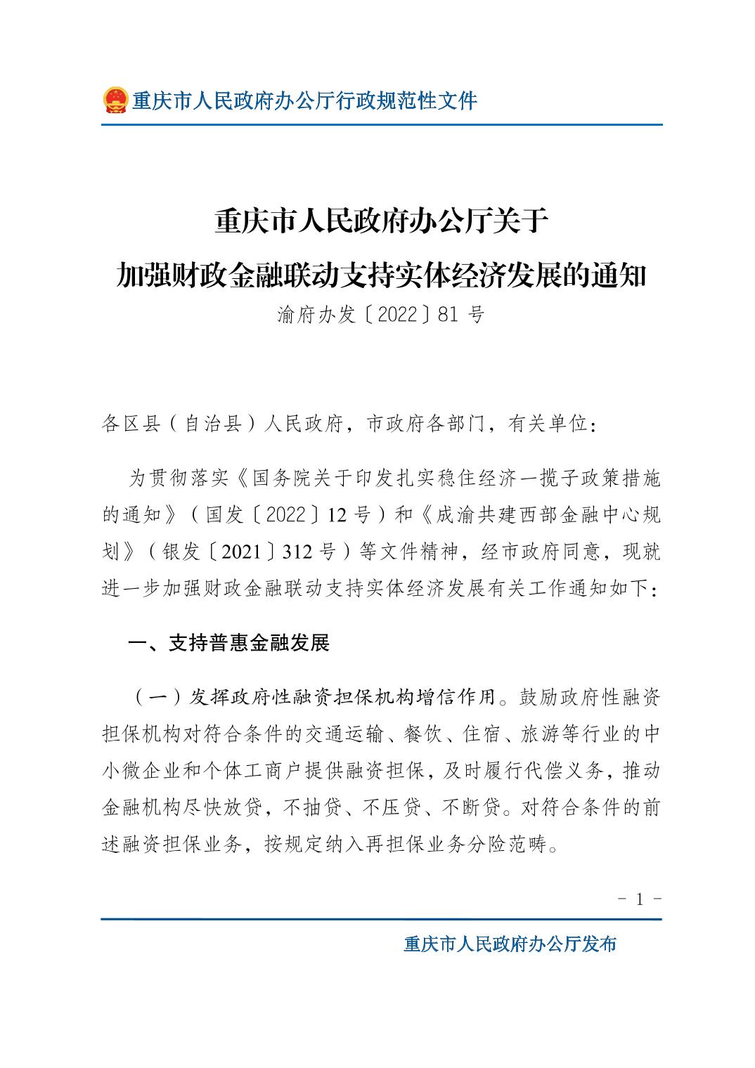 重庆市人民政府办公厅关于加强财政金融联动支持实体经济发展的通知