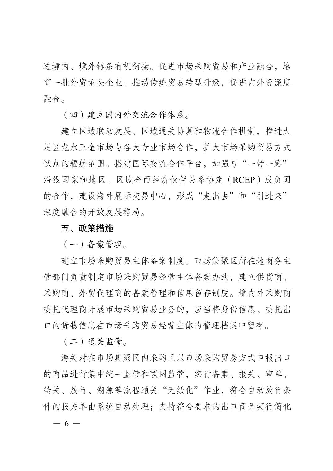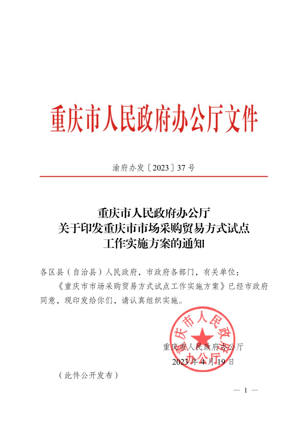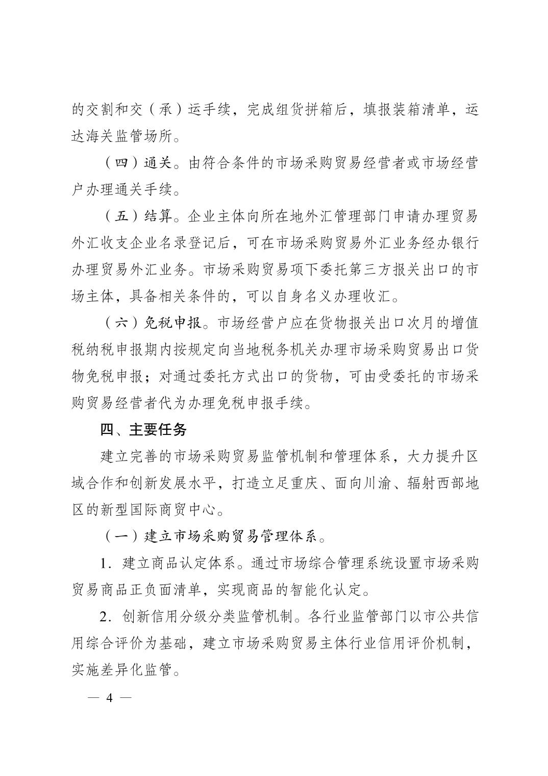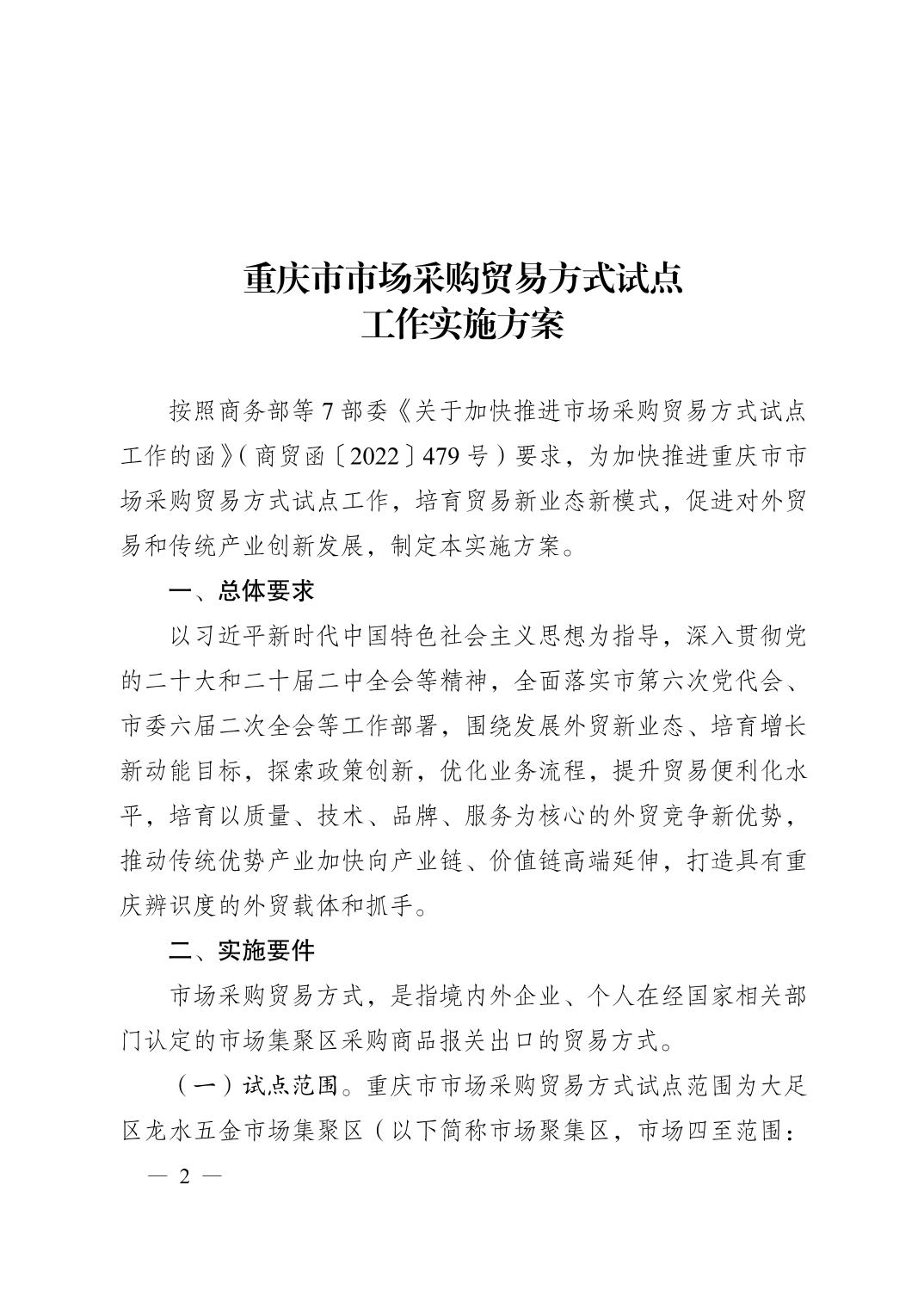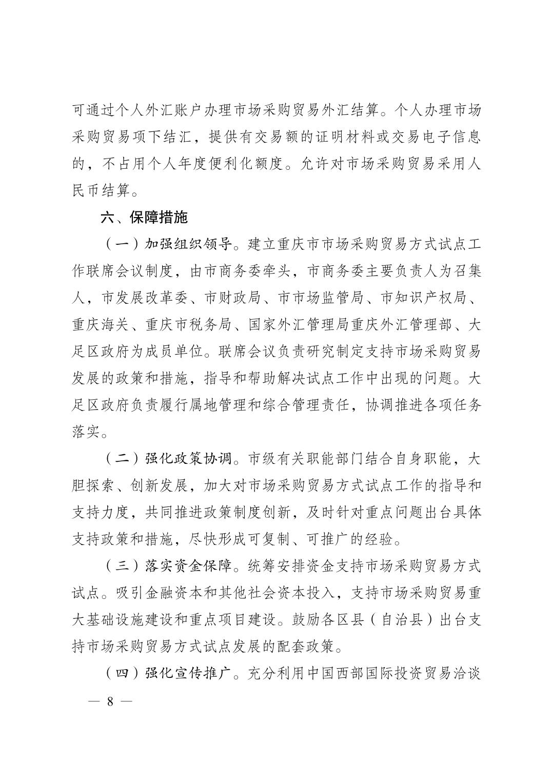 重庆市人民政府办公厅关于印发重庆市市场采购贸易方式试点工作实施方案的通知