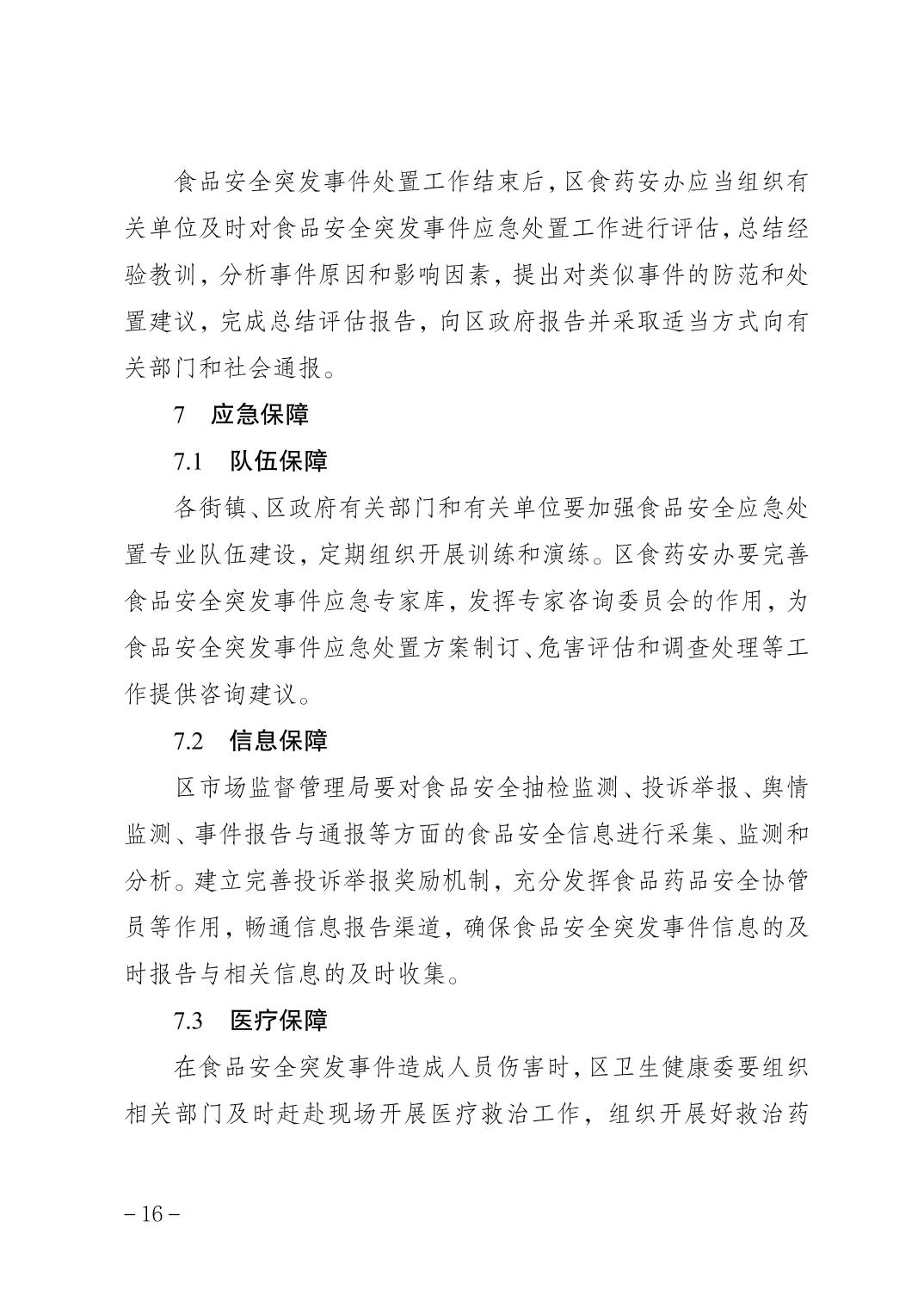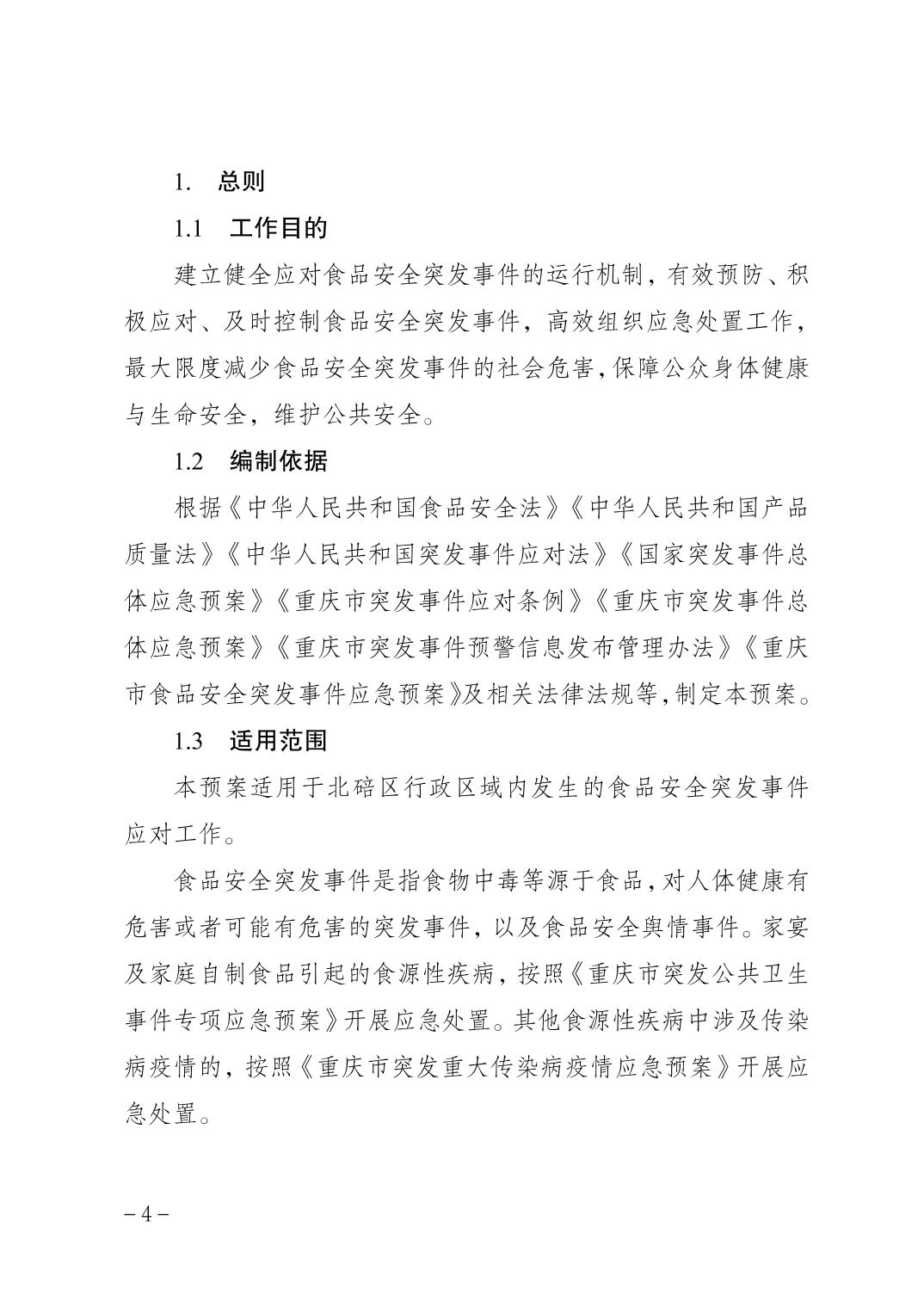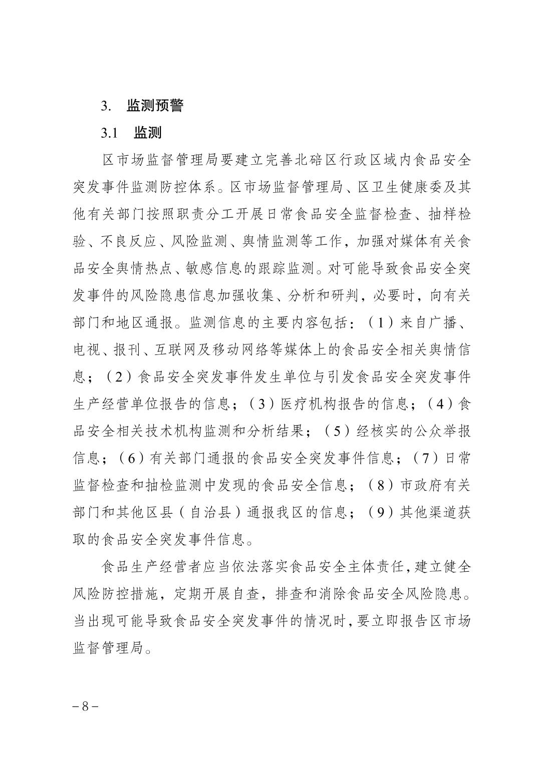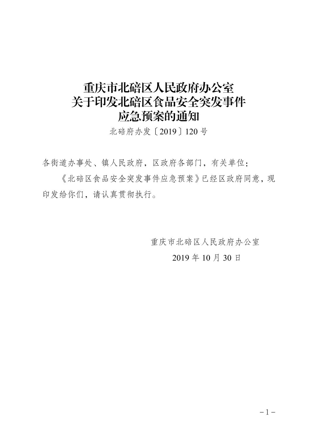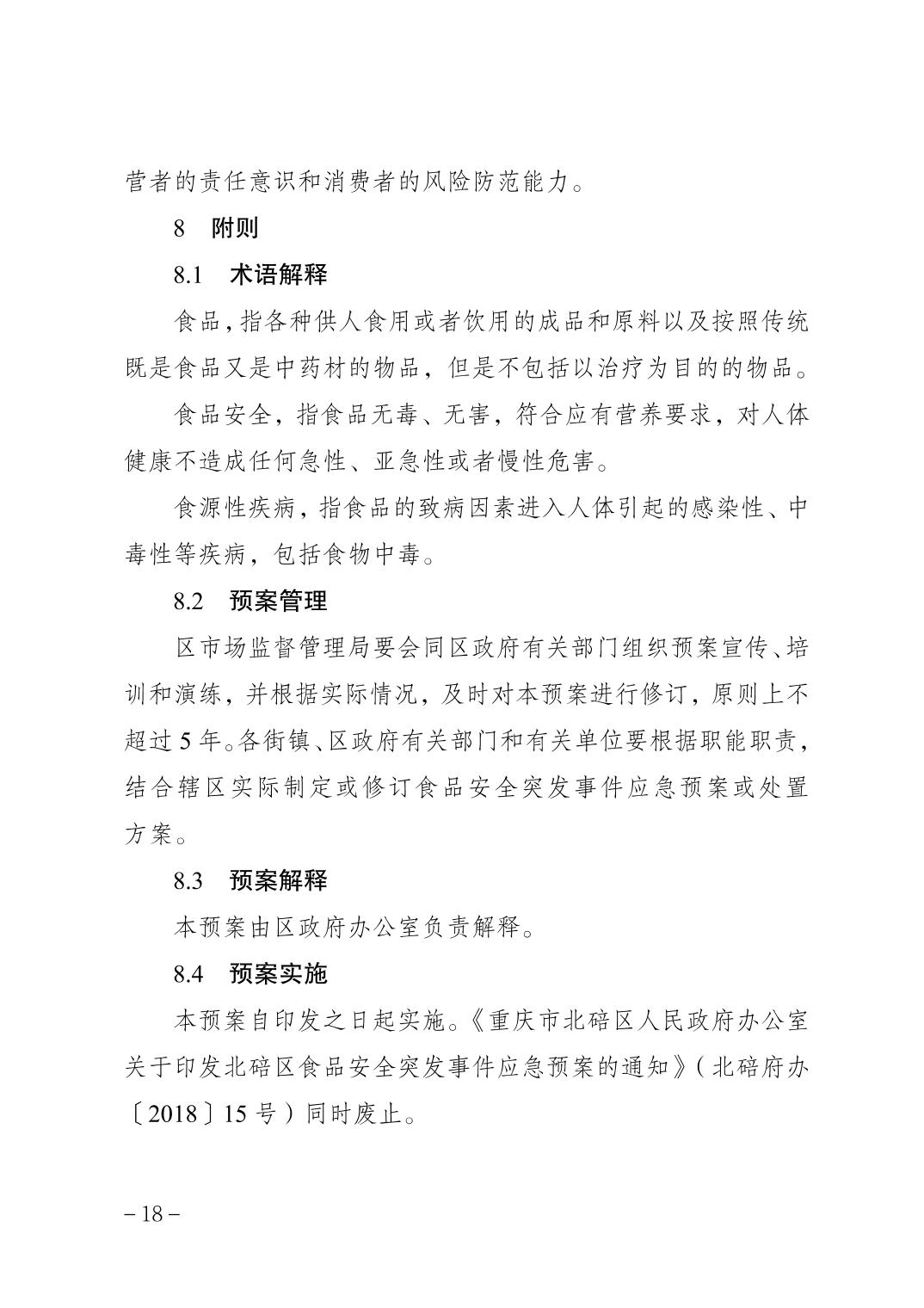 重庆市北碚区人民政府办公室关于印发北碚区食品安全突发事件应急预案的通知