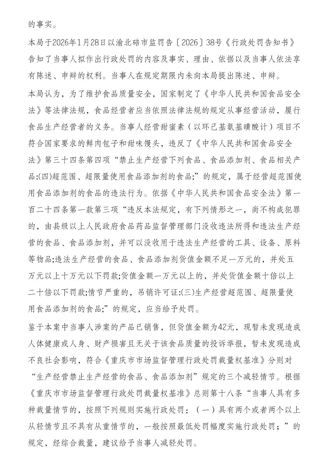重庆市北碚区市场监督管理局行政处罚决定书