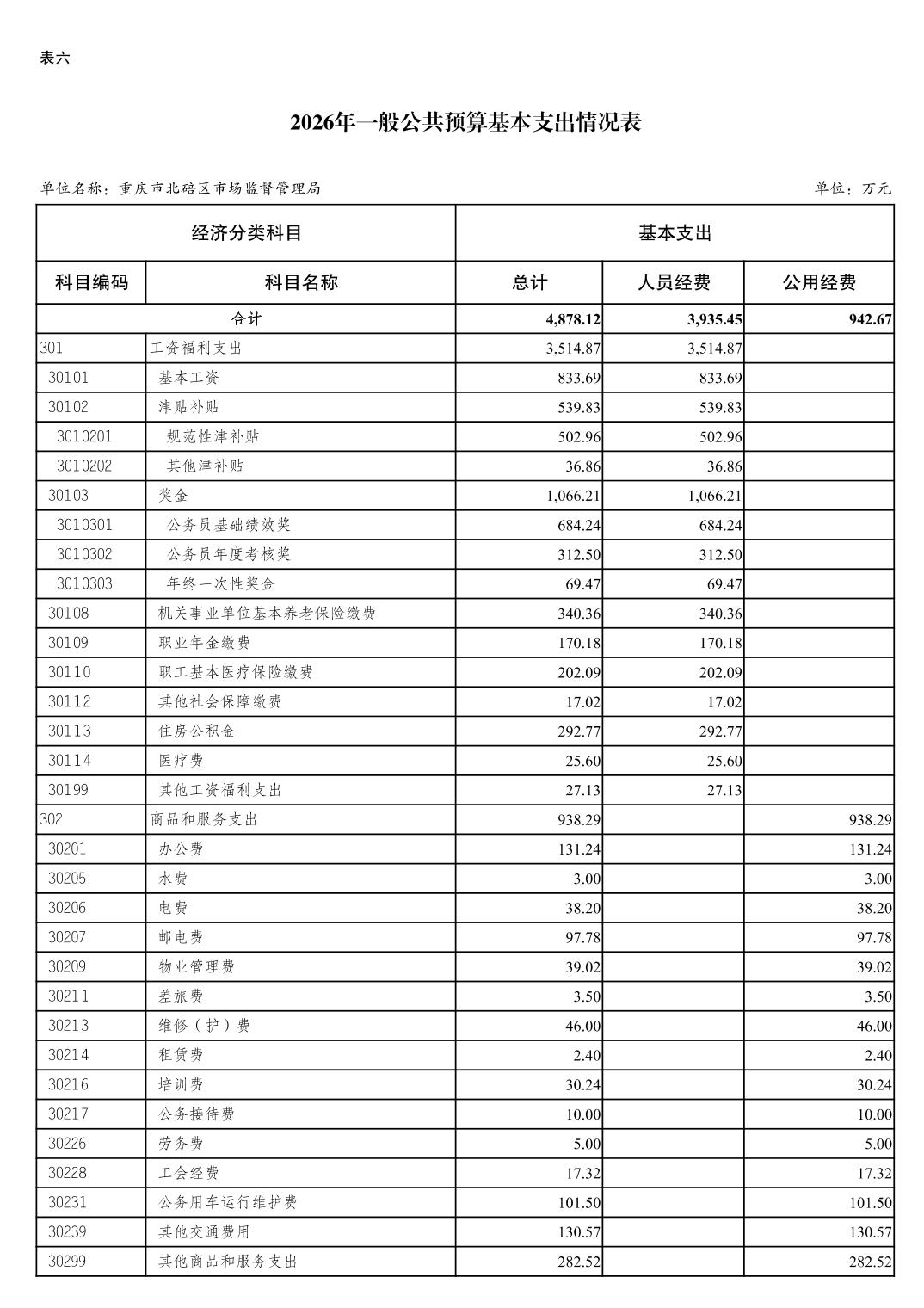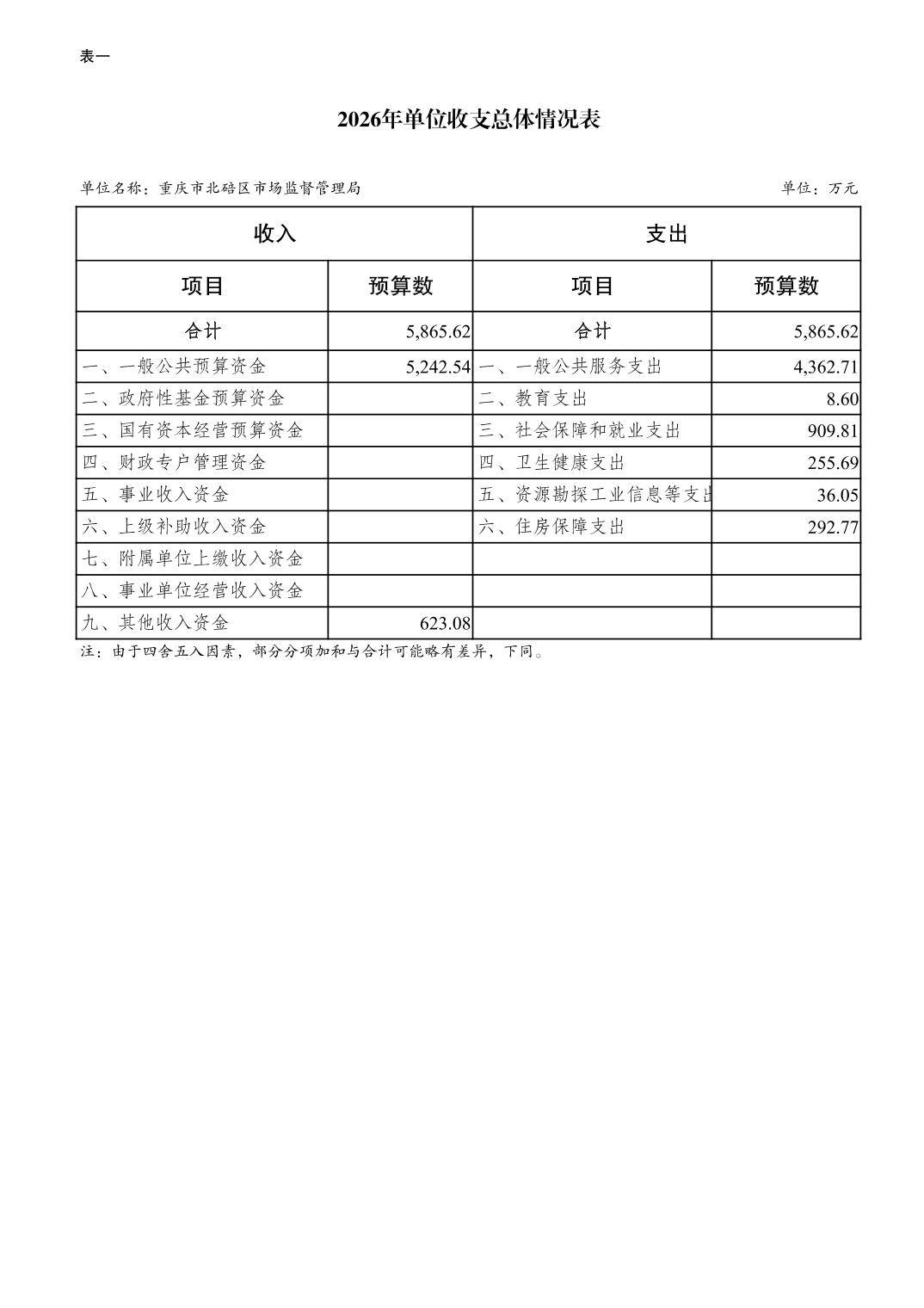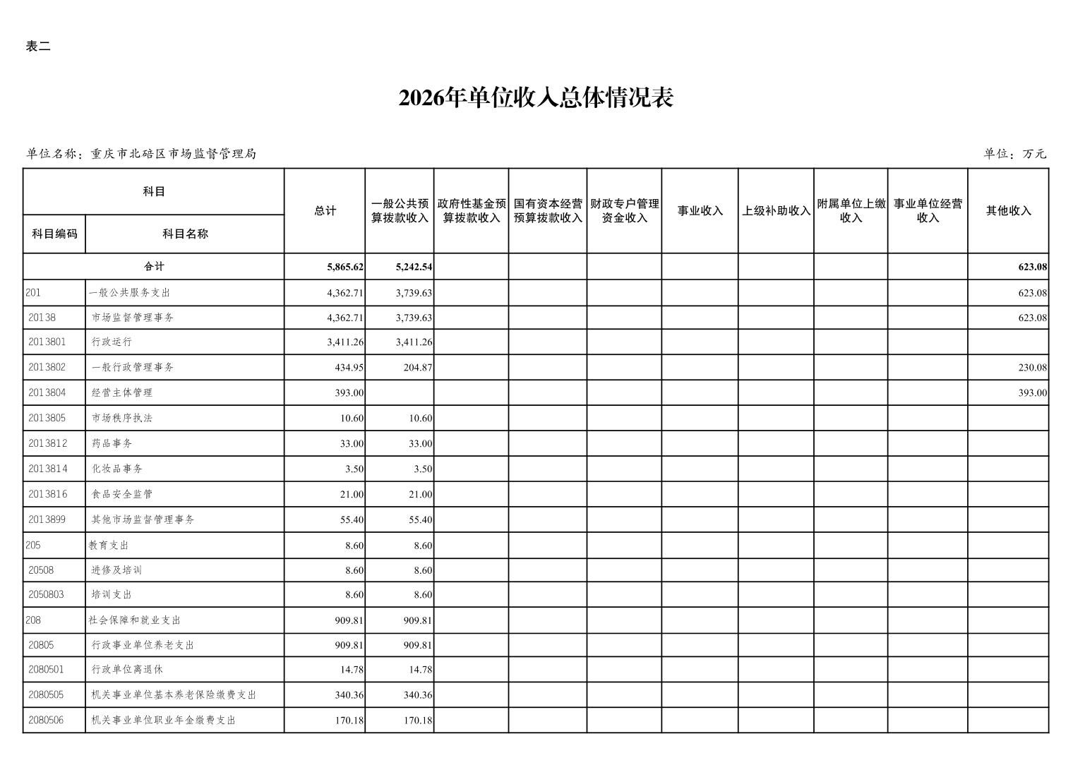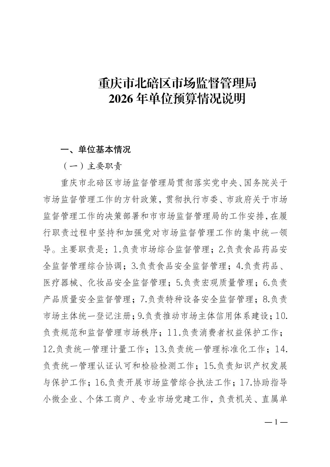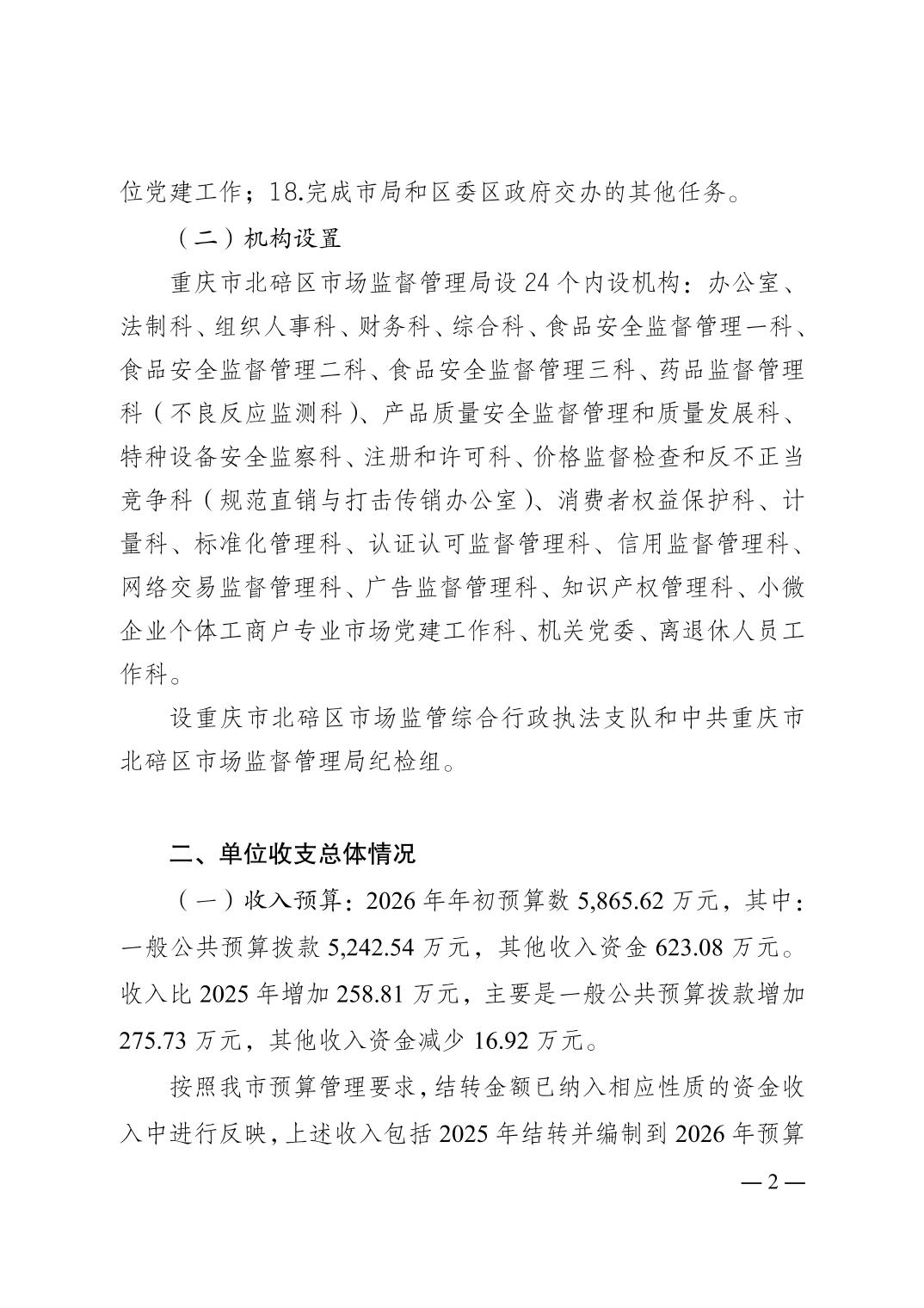 重庆市北碚区市场监督管理局2026年单位预算情况说明