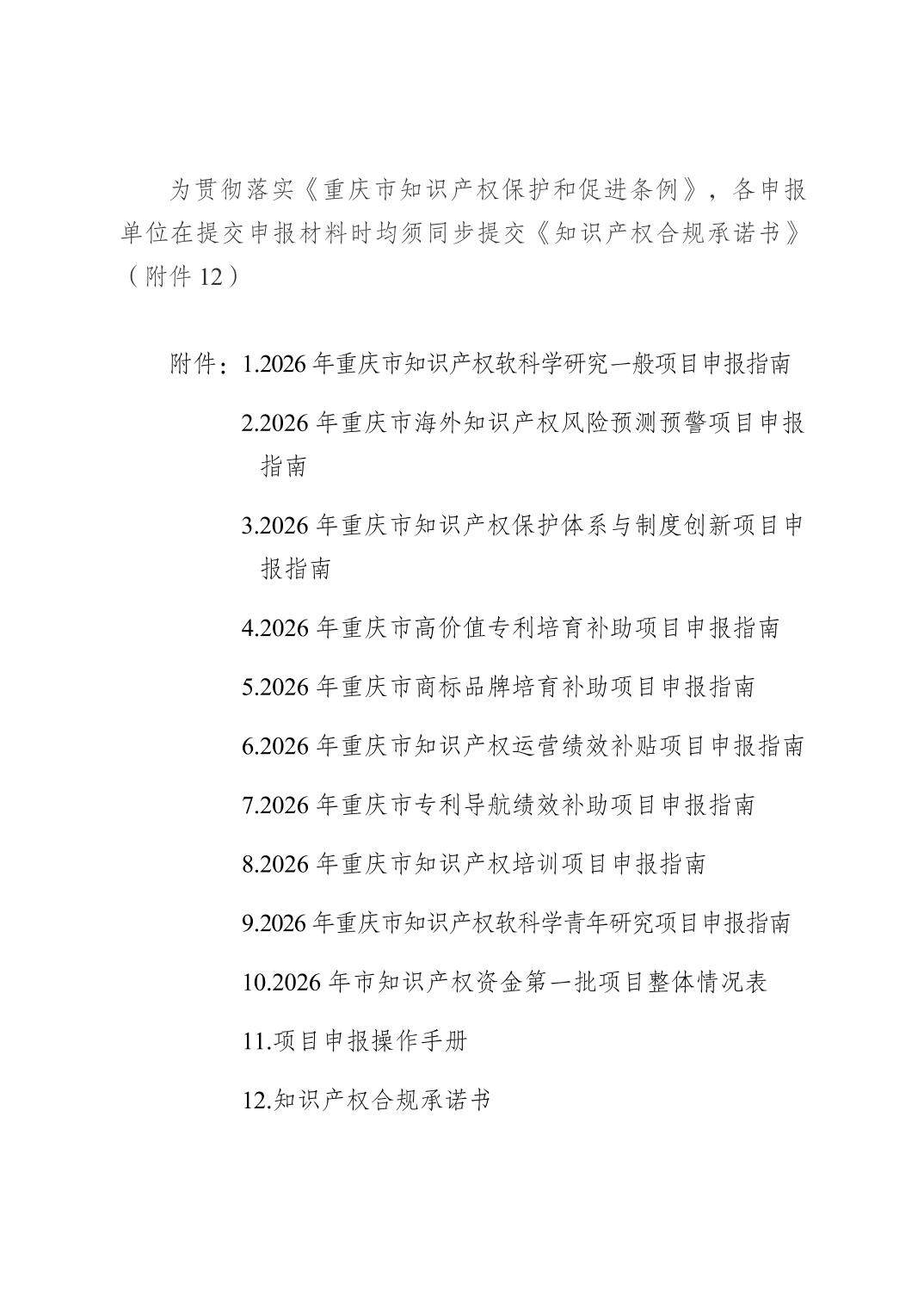 附件1.2026年重庆市知识产权软科学研究一般项目申报指南20260306.doc