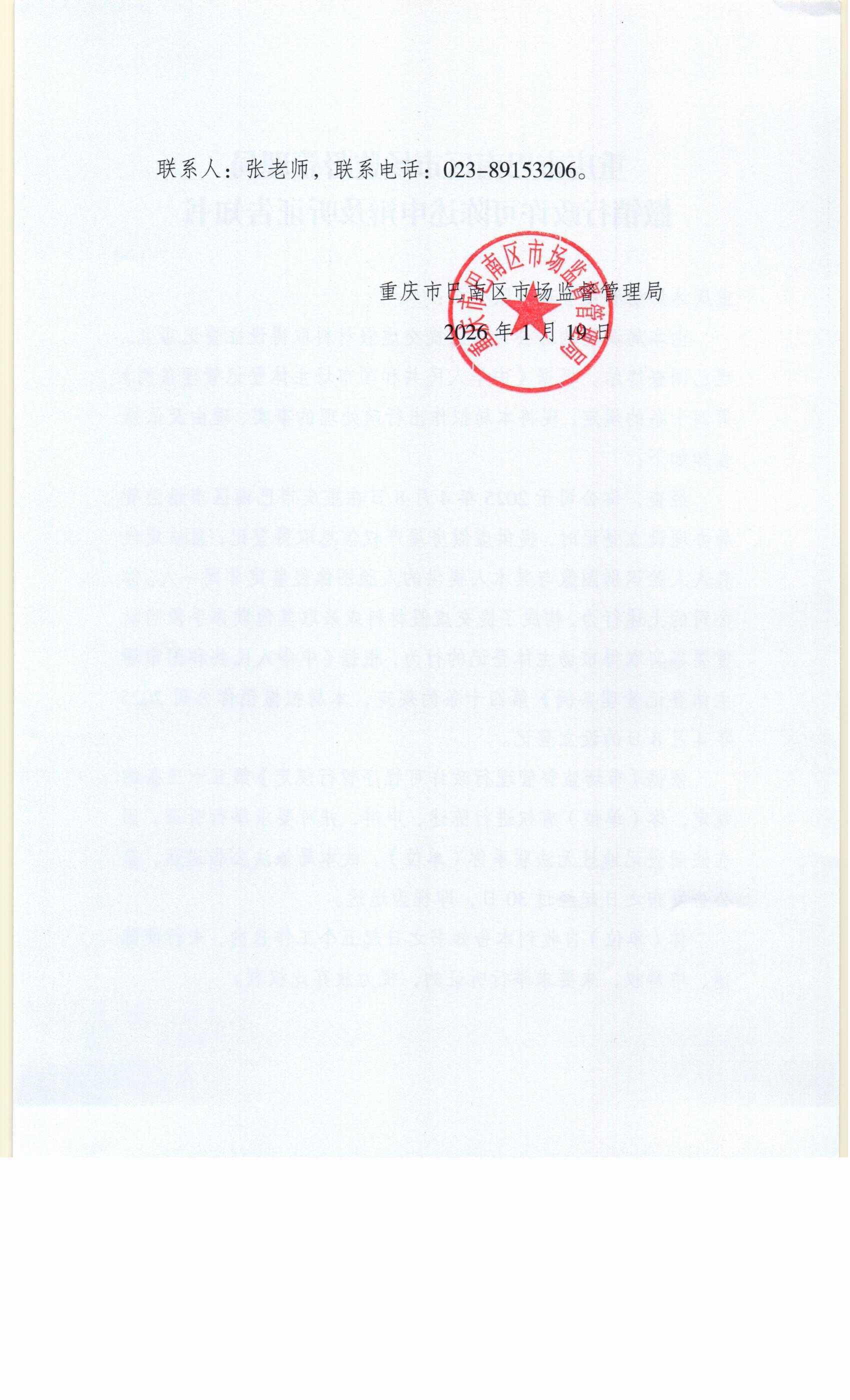 | [ 发布机构 ] | 重庆市巴南区市场监督管理局 | ||