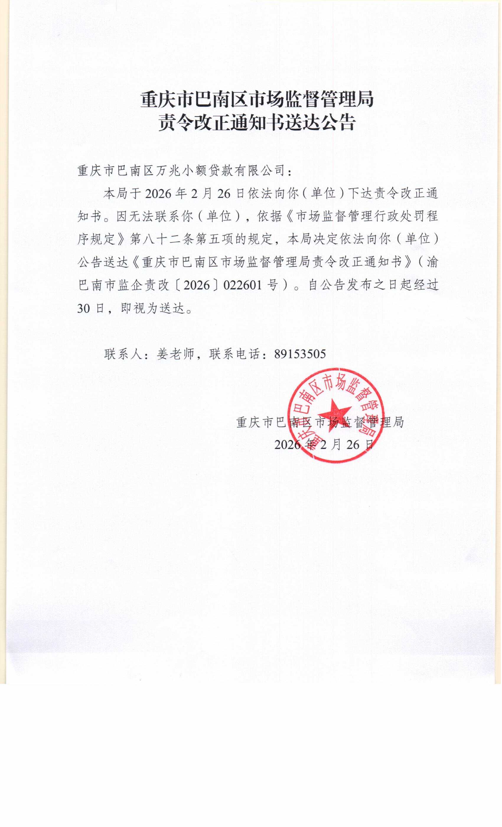 责令改正通知书(重庆市巴南区万兆小额贷款有限公司)