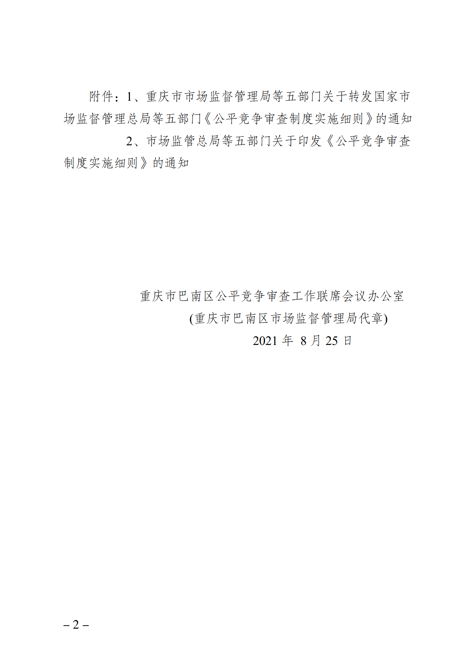 ![1-9巴南区公平竞争审查联席会议办公室[2021]5号文转发重庆市市场监督管理局等五部门关于转发国家市场监督管理总局等五部委局《关于印发公平竞争审查制度实施细则的通知》_02.png](./W020220706532694639039.png)