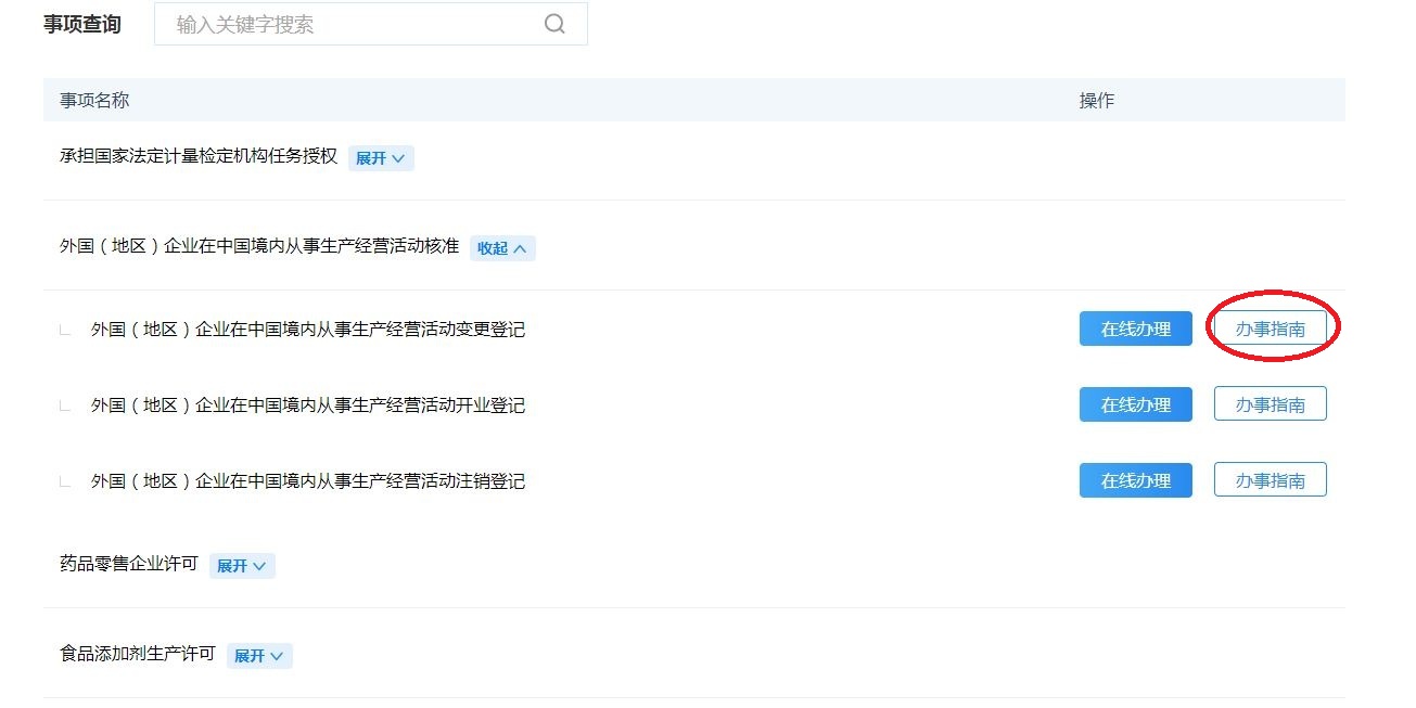 3.展开后选择相关服务事项的“办事指南”。如图三所示。