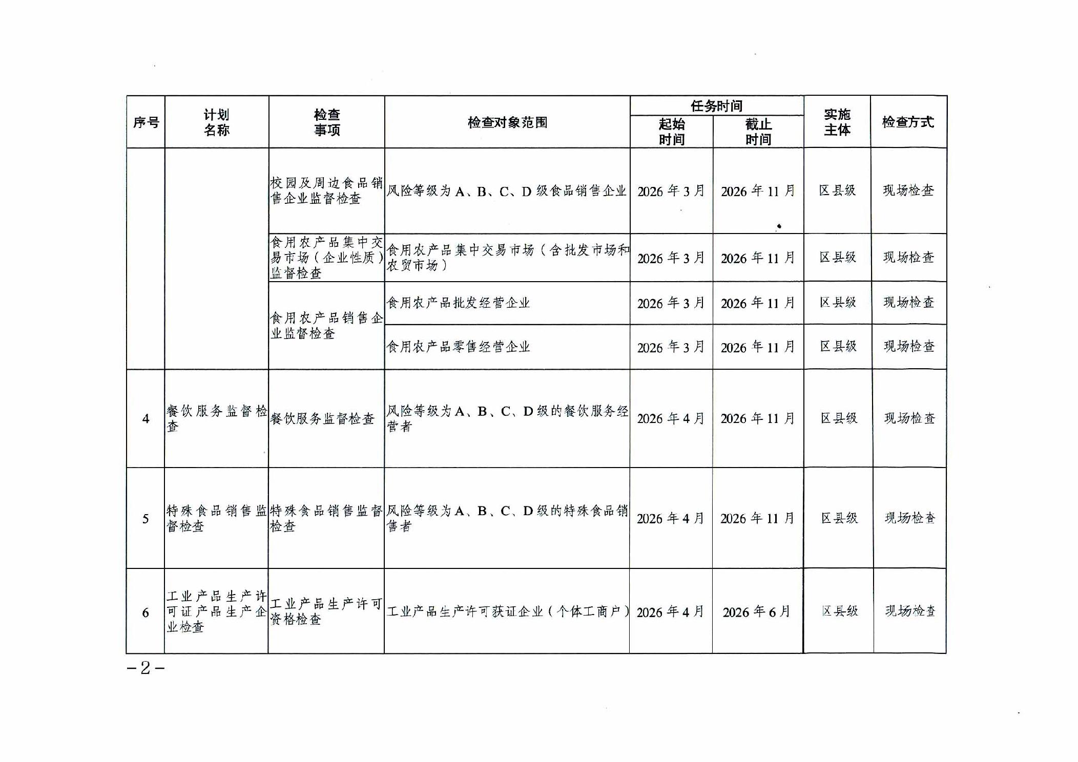 重庆市市场监督管理局2026年度涉企行政检查日常检查计划
