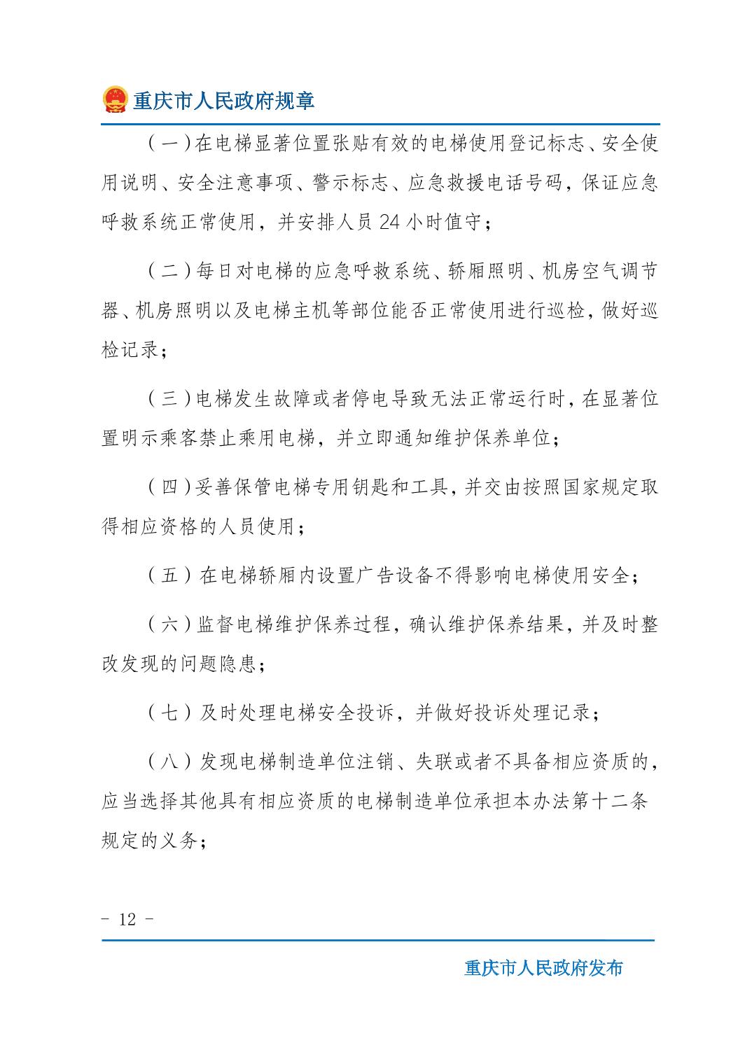 重庆市电梯安全管理办法