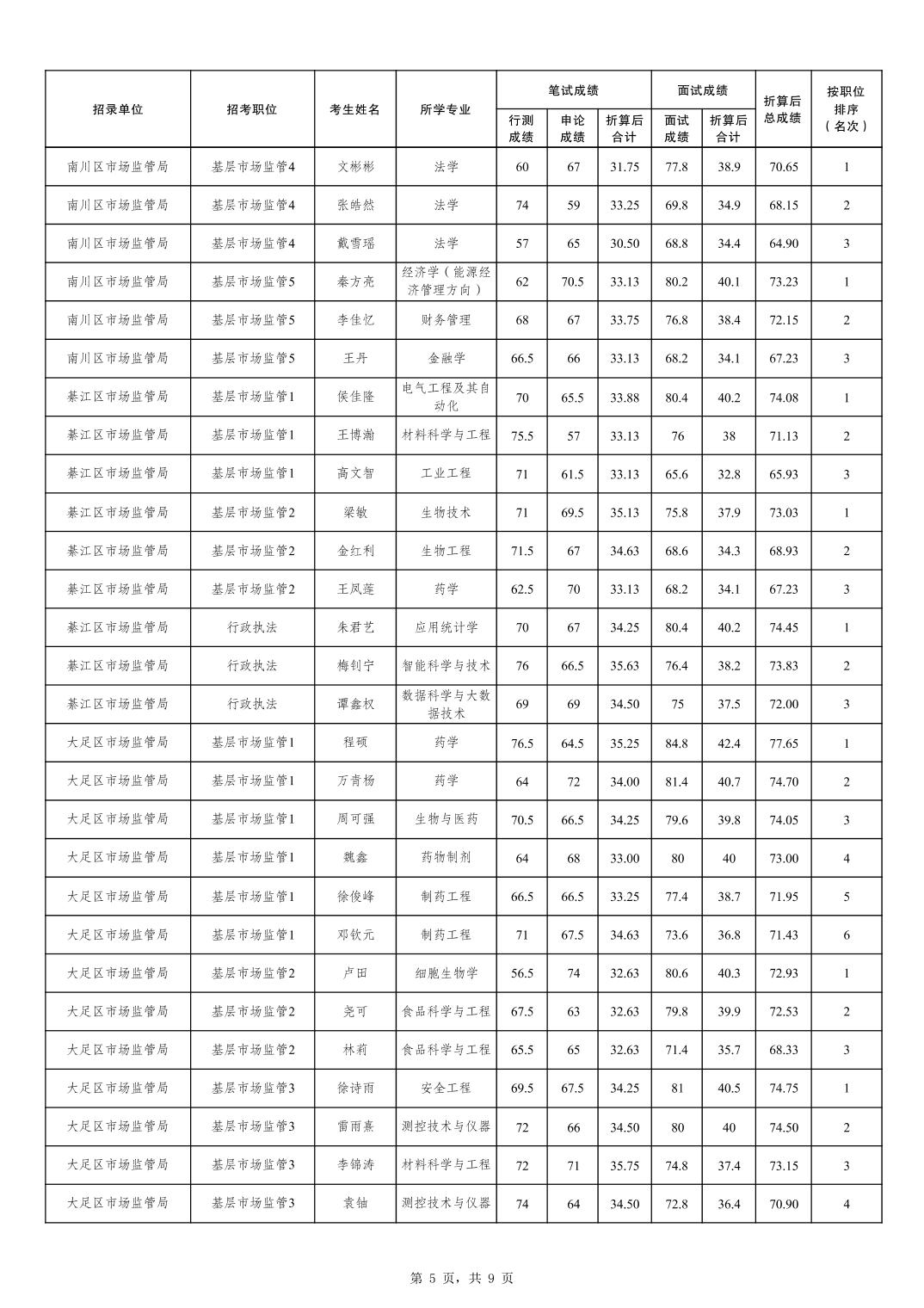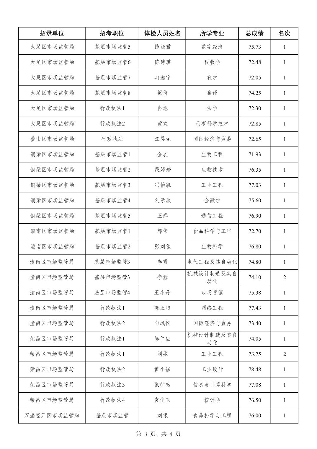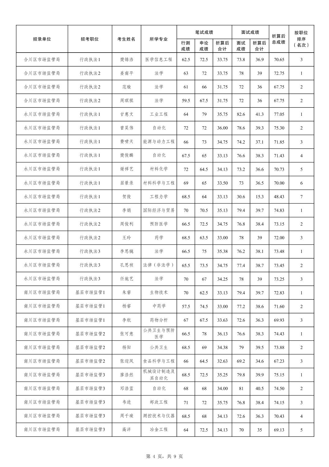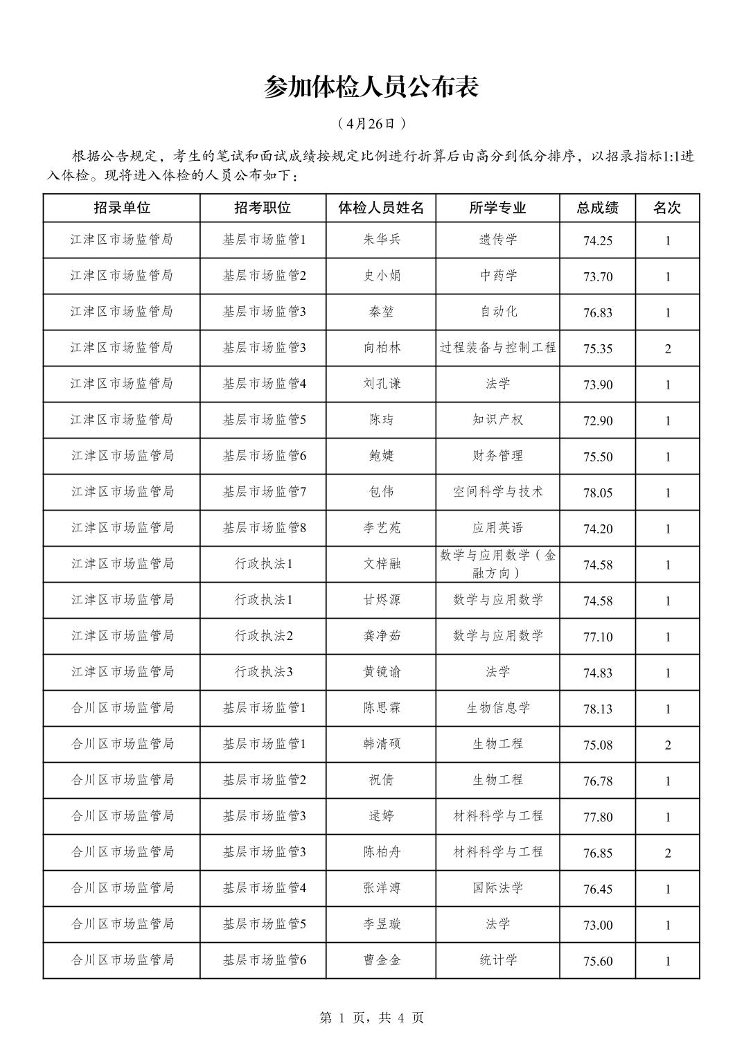 重庆市市场监督管理局2026年考试录用公务员成绩及参加体检人员公布(4月26日面试)