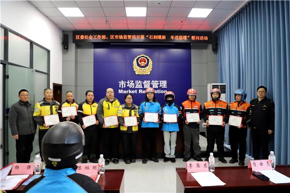 为深入贯彻《大足区“石刻暖新”十五条措施》等一系列关爱新就业群体的政策文件精神,扎实推进新就业群体关心关爱工作,切实增强网约配送员的职业荣誉感与社会归属感,大足区委社会工作部与区市场监管局精心筹备,携手为600名穿梭于城市大街小巷、辛勤奔波在一线的网约配送员送去冬日的温暖与关怀。
