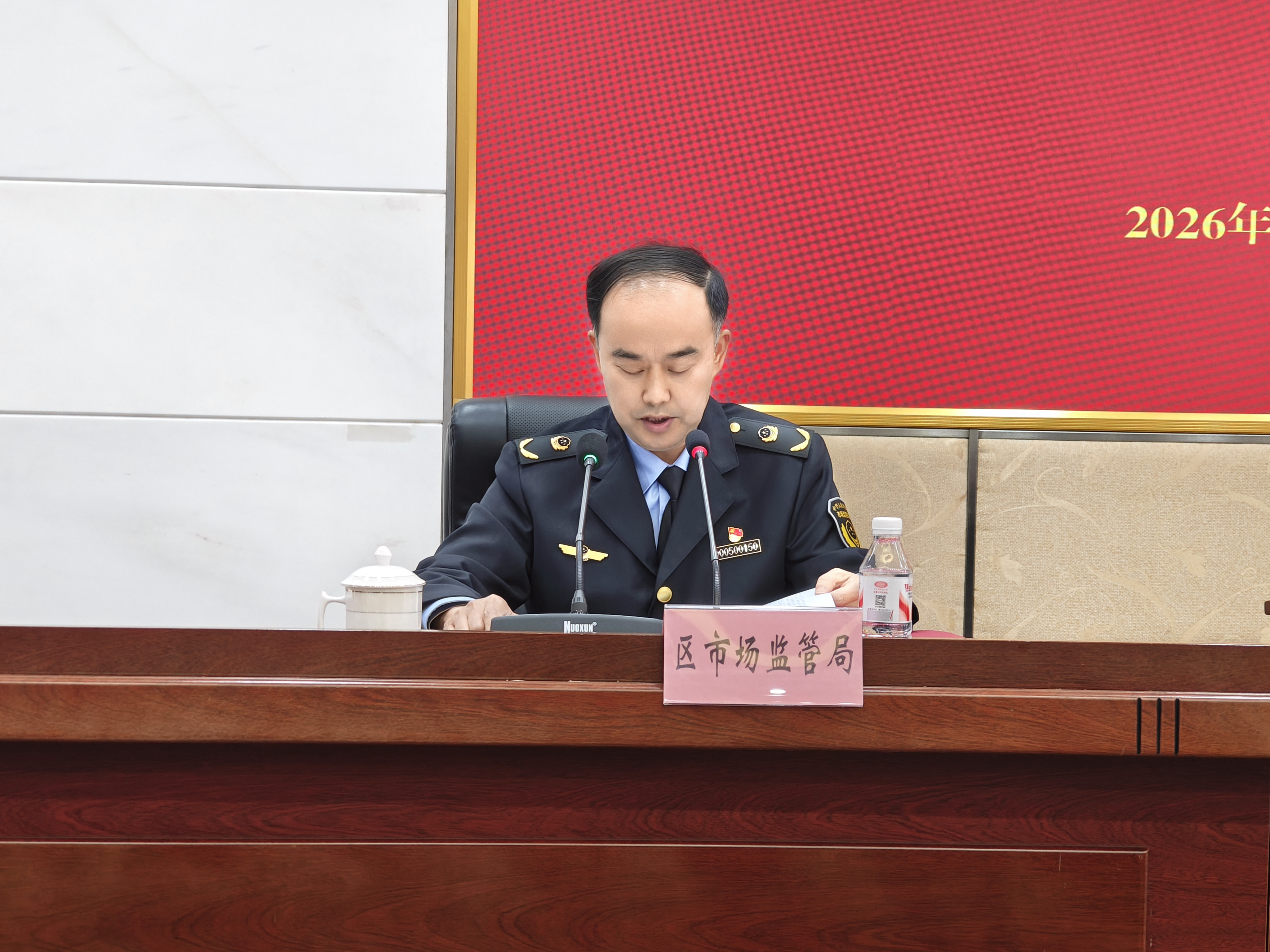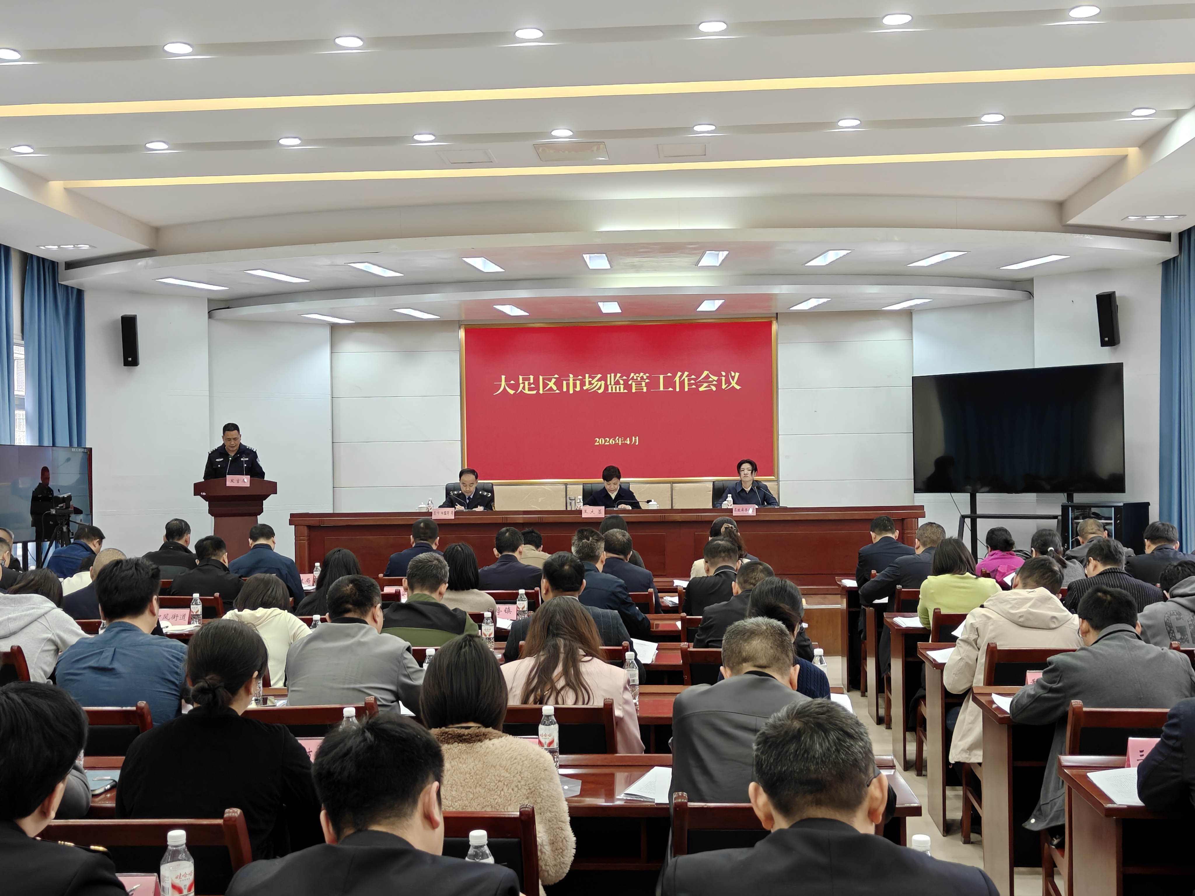 4月2日,大足区召开2026年全区市场监管工作会议。会议深入贯彻党的二十大和二十届历次全会精神、市委六届历次全会及区委三届历次全会精神,认真落实全市市场监管、药品监管工作会议部署,全面总结“十四五”时期市场监管工作成效,分析当前形势,安排部署2026年市场监管重点任务 。会议由区数字政务服务中心副主任沈秀梅主持,区市场监管局党组书记、局长周建超作工作报告,区政府副区长王大蓉出席会议并讲话。