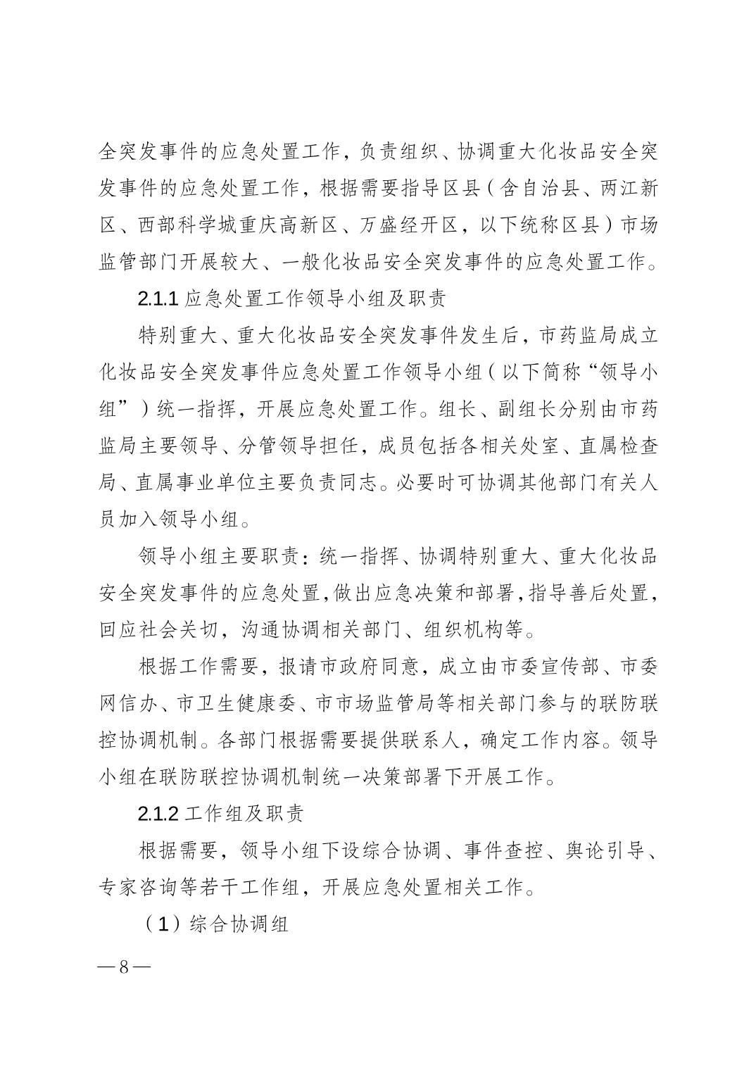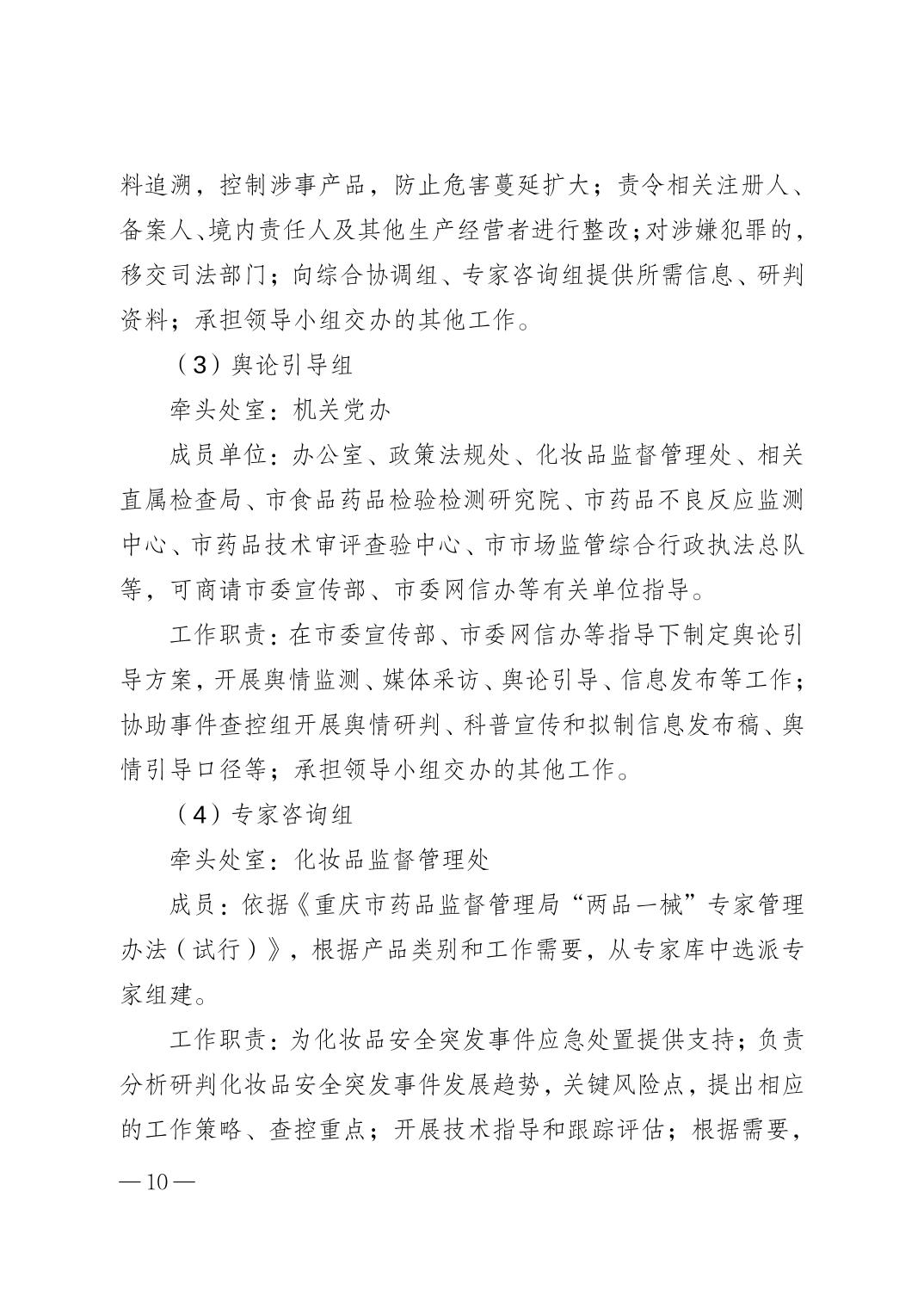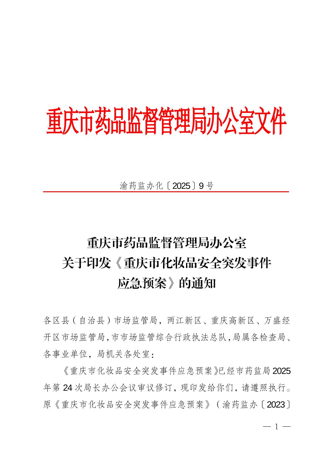 重庆市药品监督管理局办公室关于印发《重庆市化妆品安全突发事件应急预案》的通知