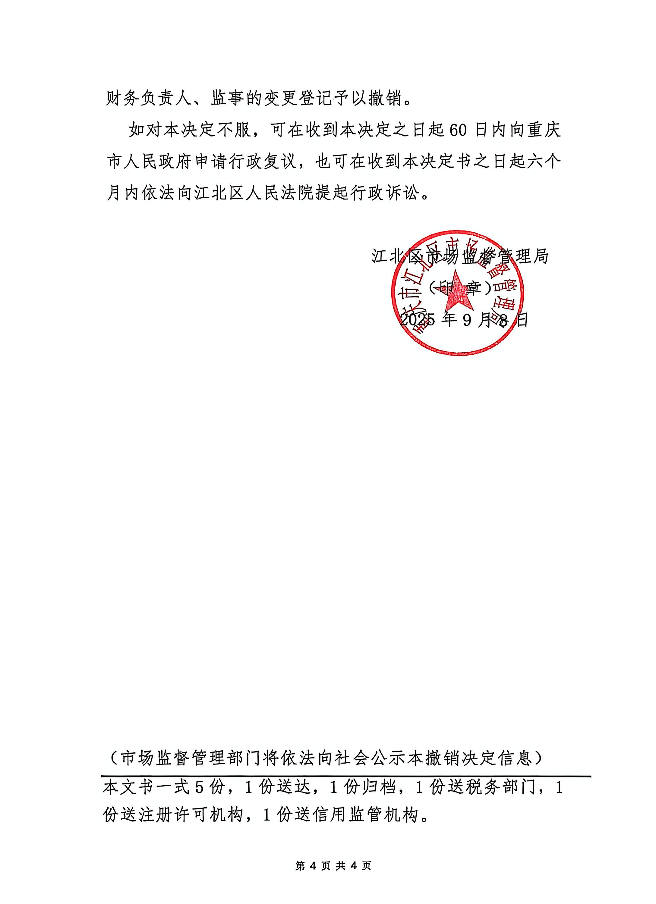 [ 索引号 ] | 11500000MB1915499P/2025-00434 | [ 发文字号 ] | 渝江北市监企撤【2025】2-0908号 |