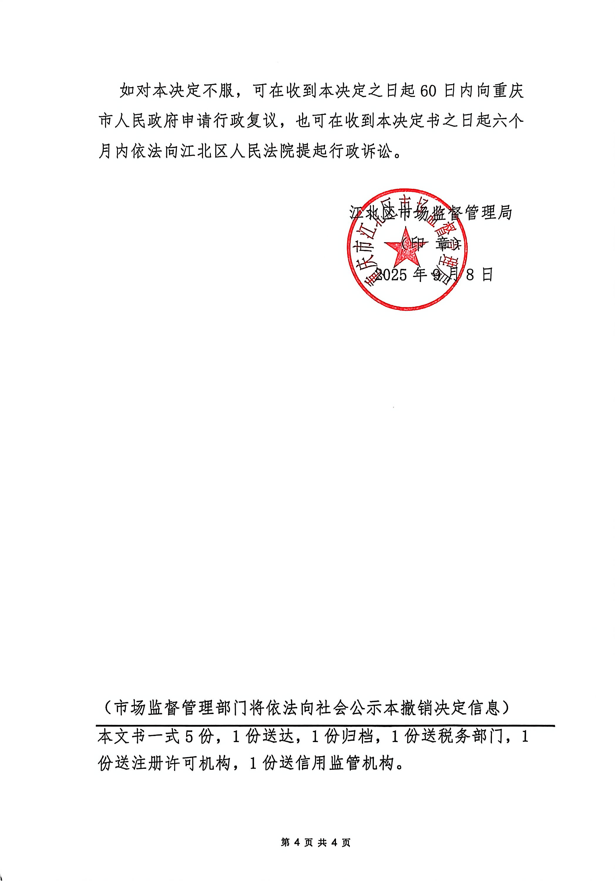 [ 发文字号 ] | 渝江北市监企撤【2025】3-0908号 |