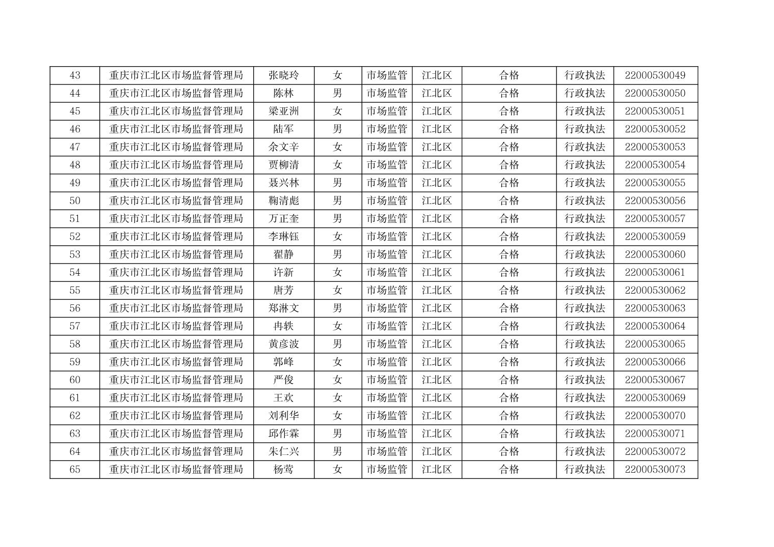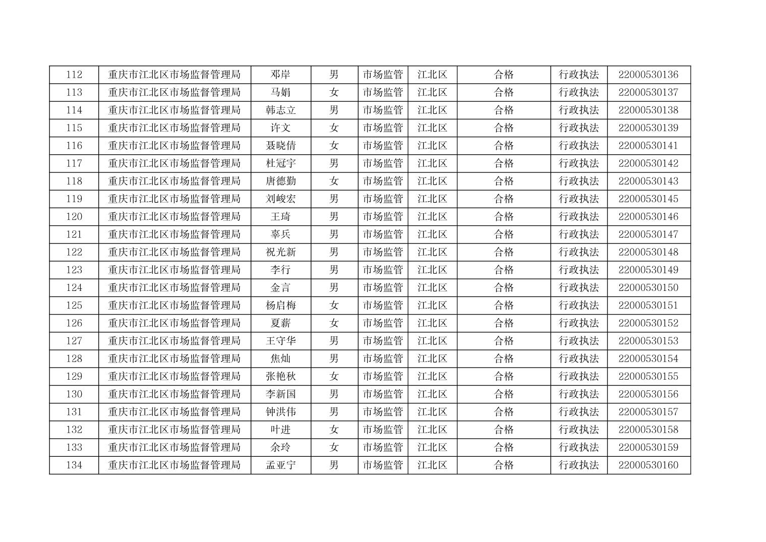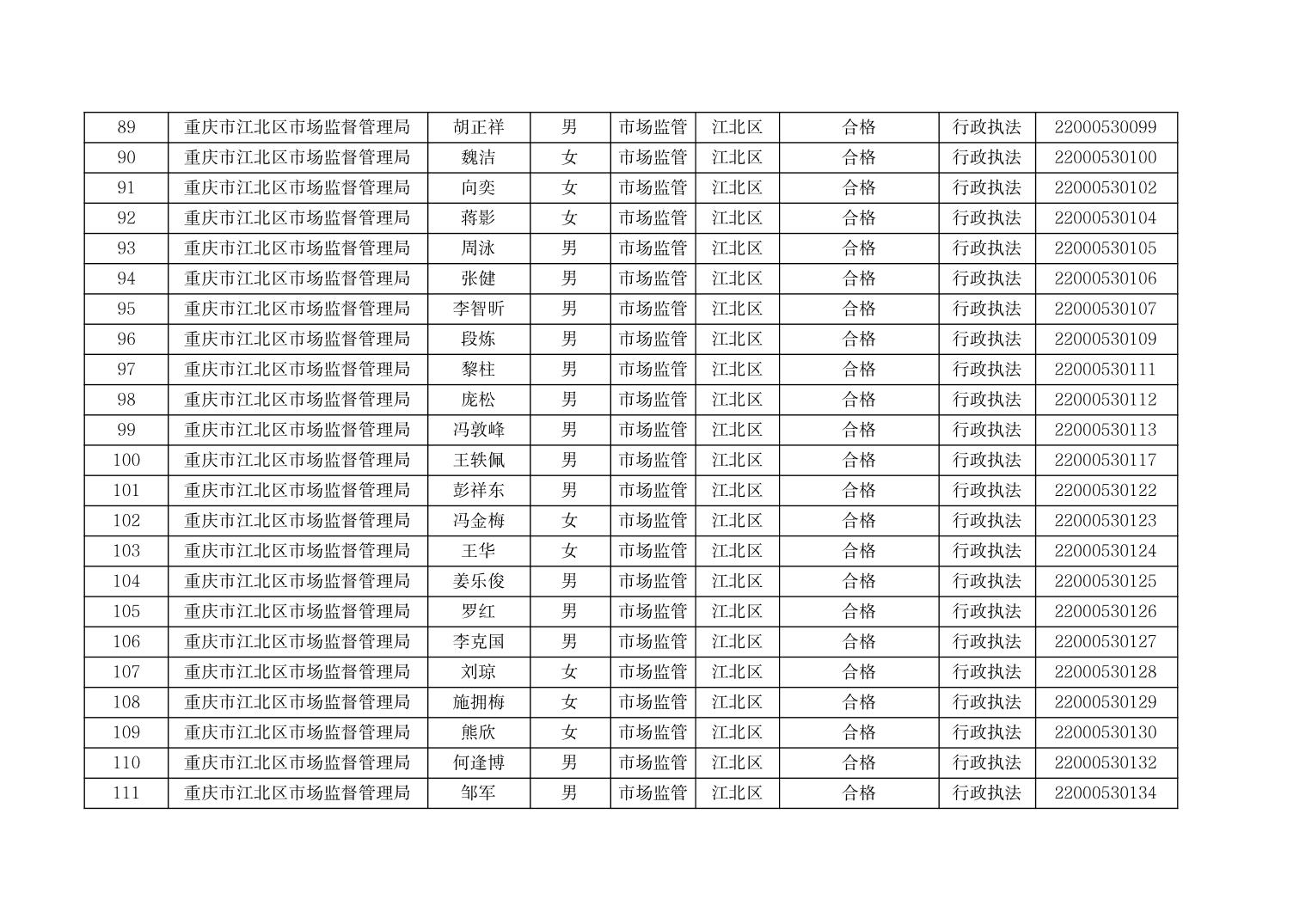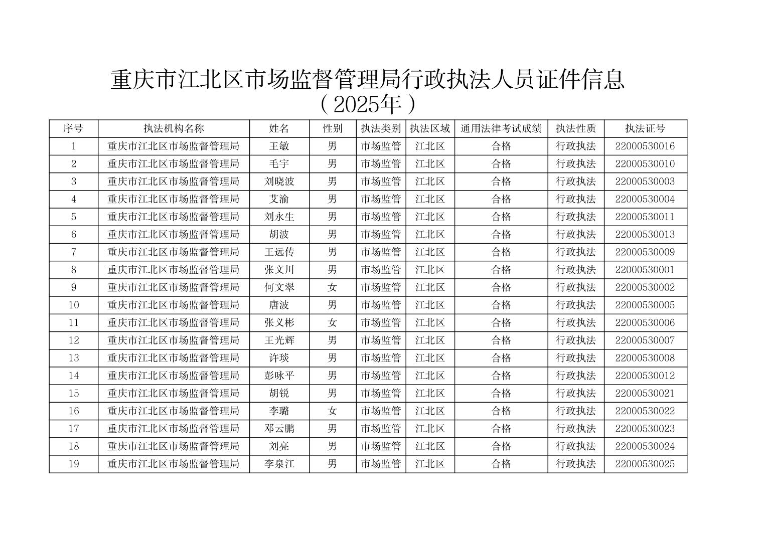 重庆市江北区市场监督管理局行政执法人员证件信息(2025年)
