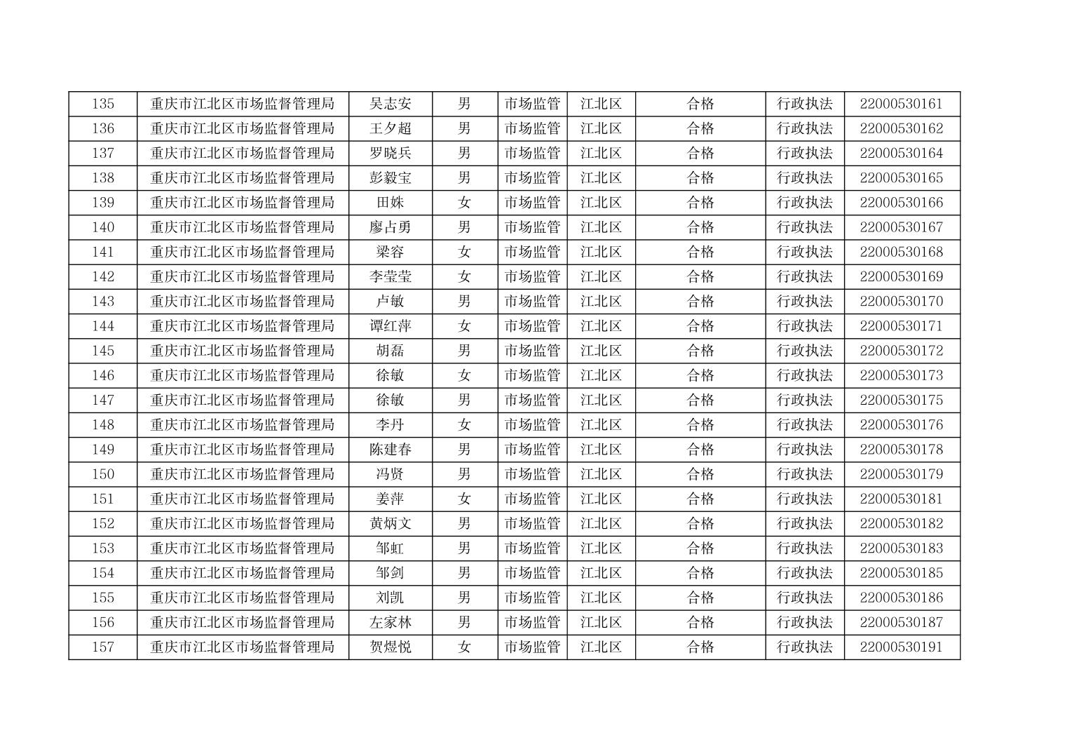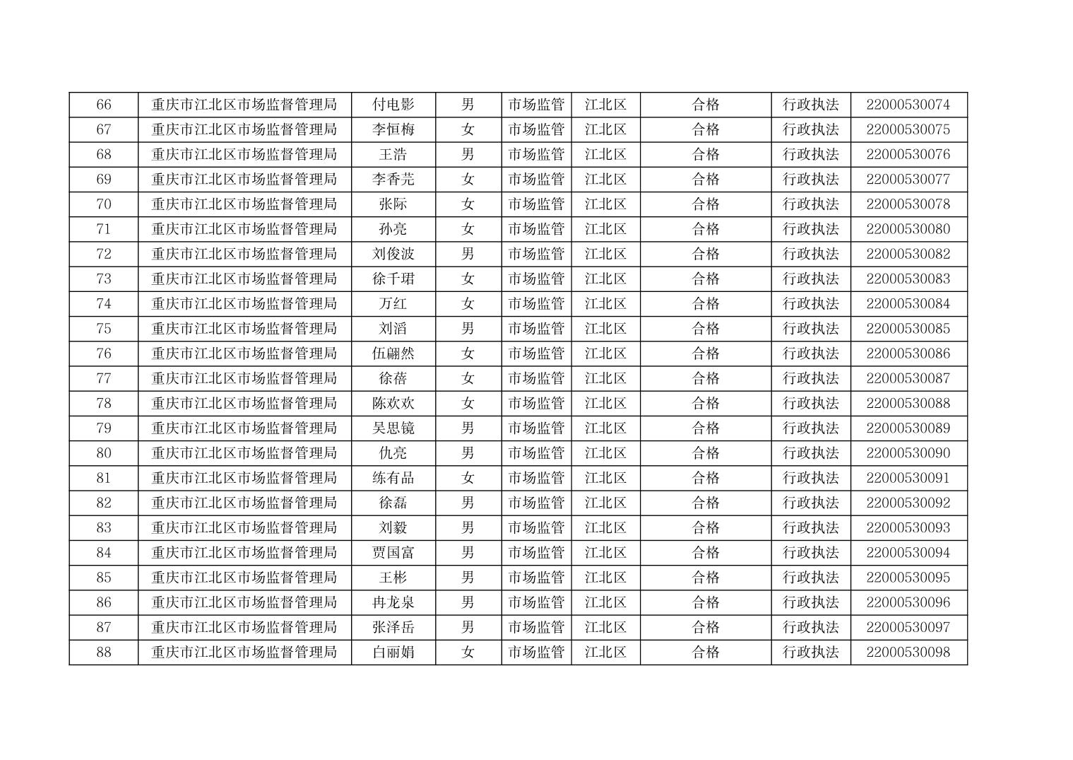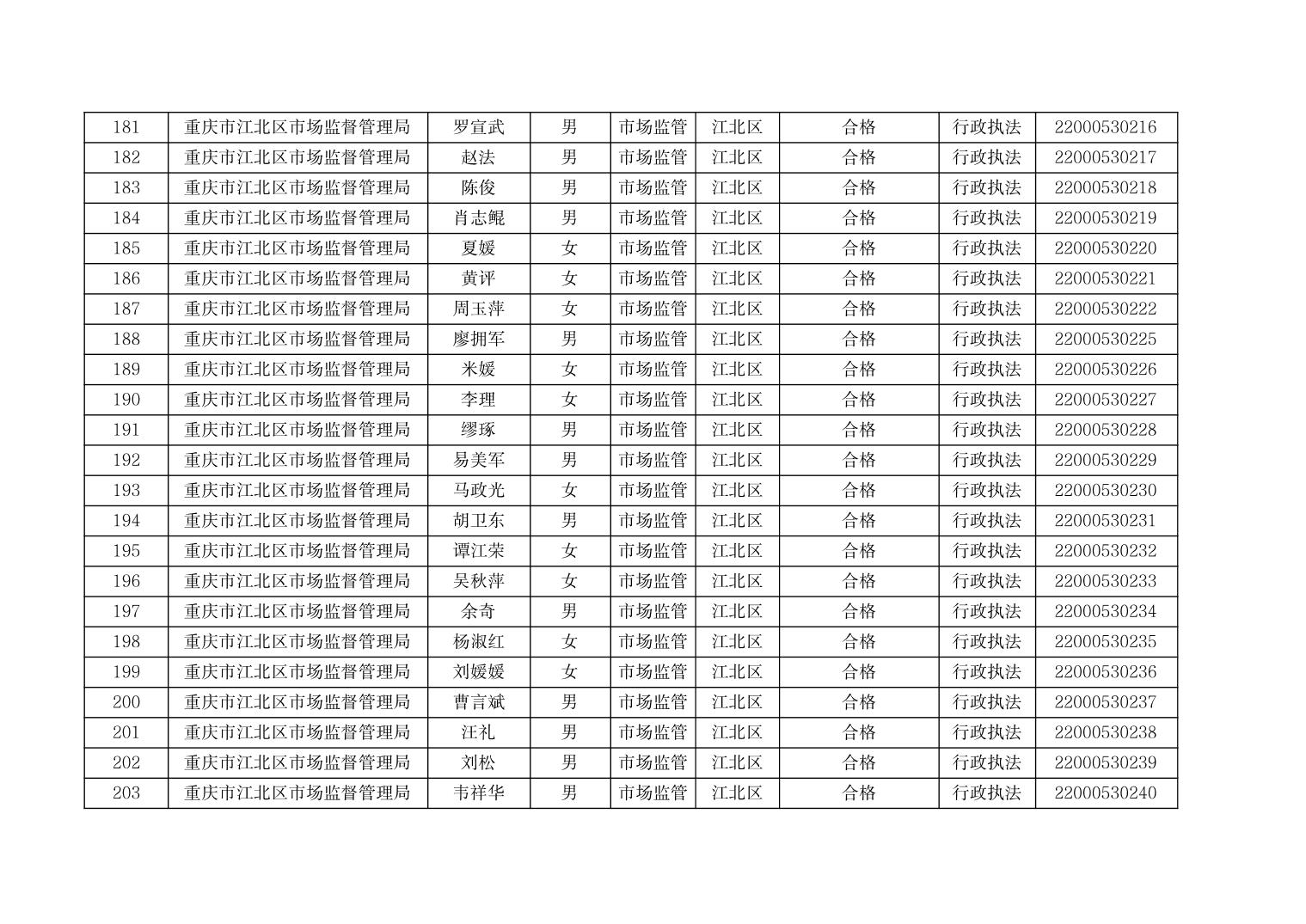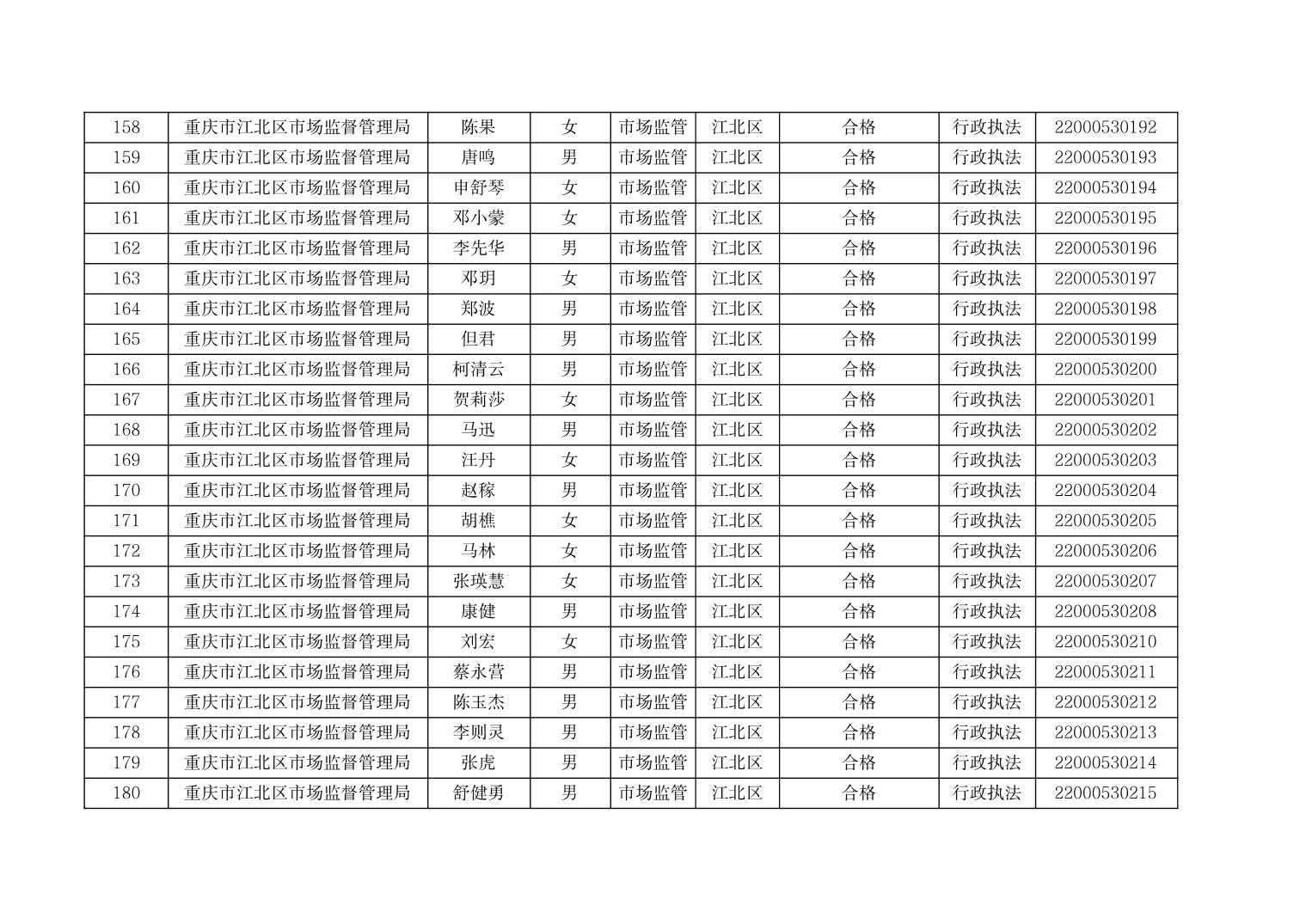 重庆市江北区市场监督管理局行政执法人员证件信息(2025年)
