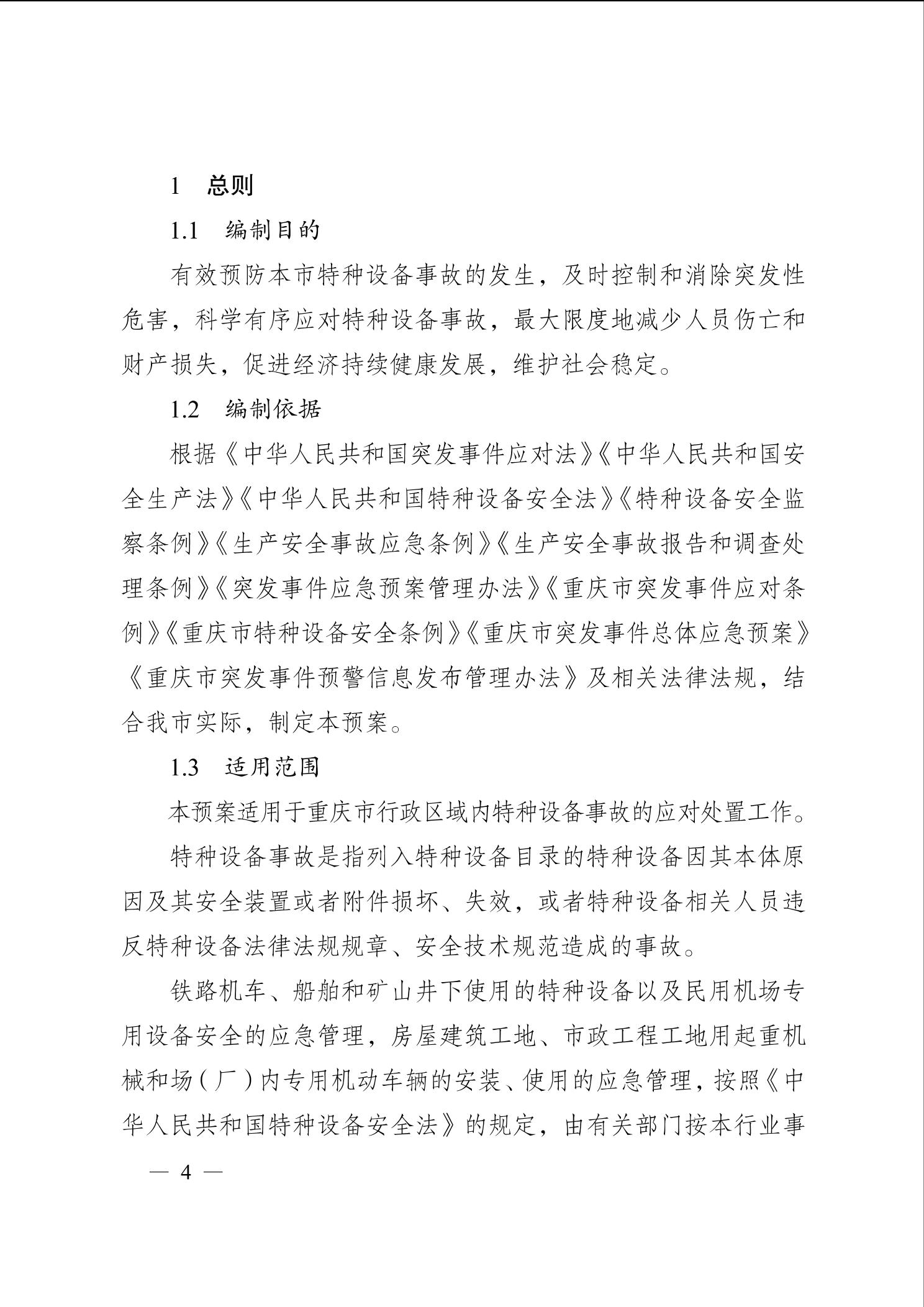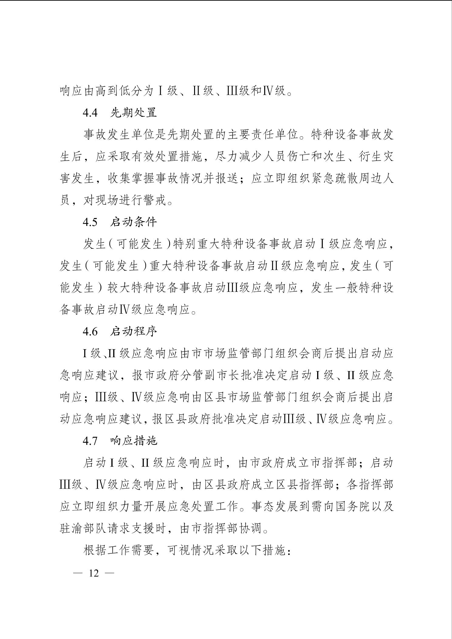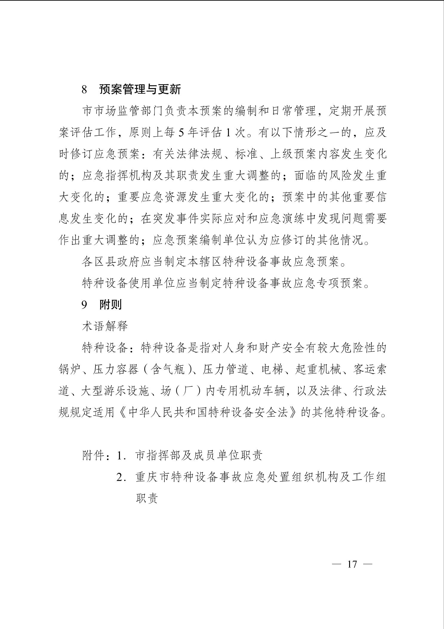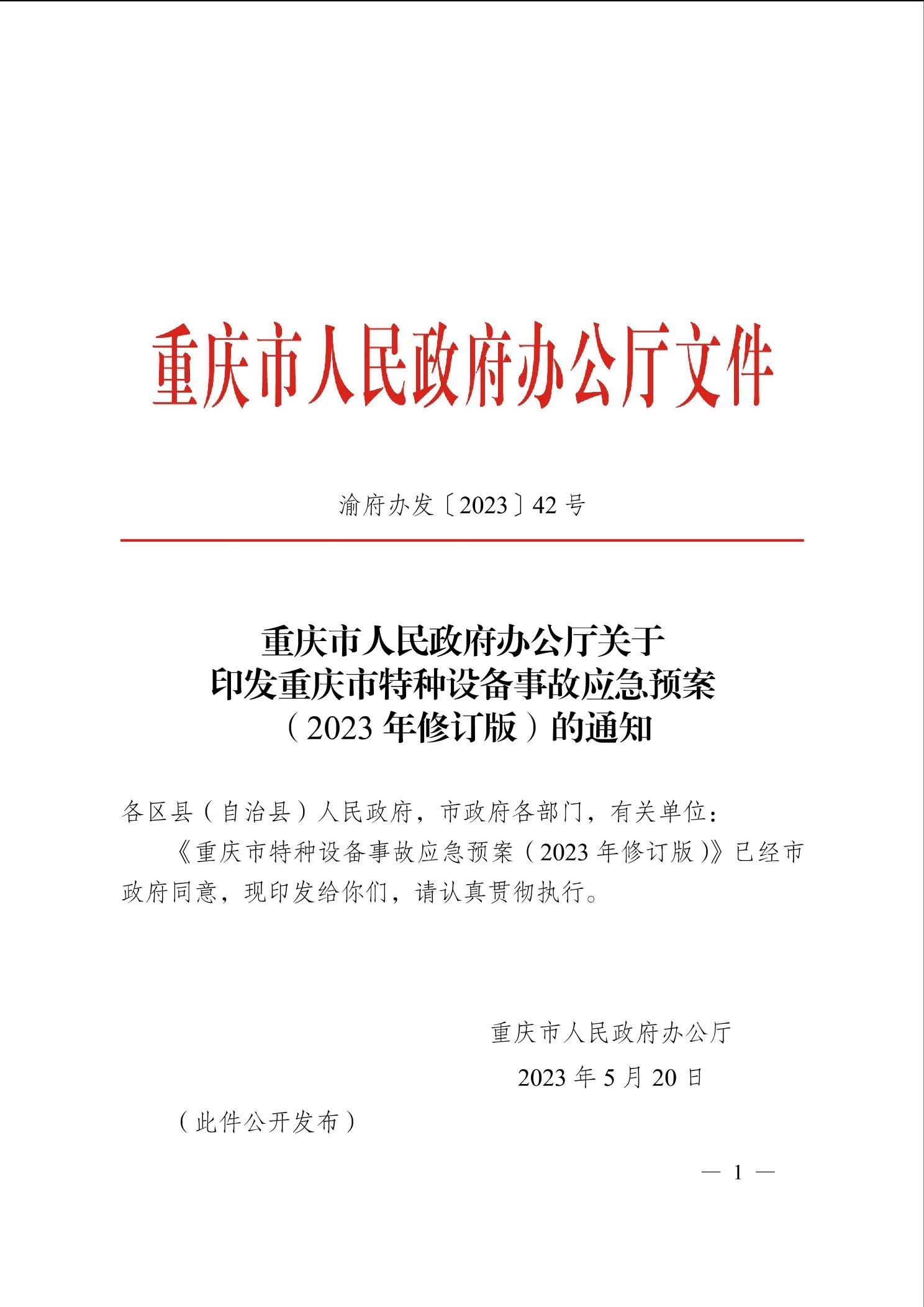 重庆市人民政府办公厅关于印发重庆市特种设备事故应急预案(2023年修订版)的通知