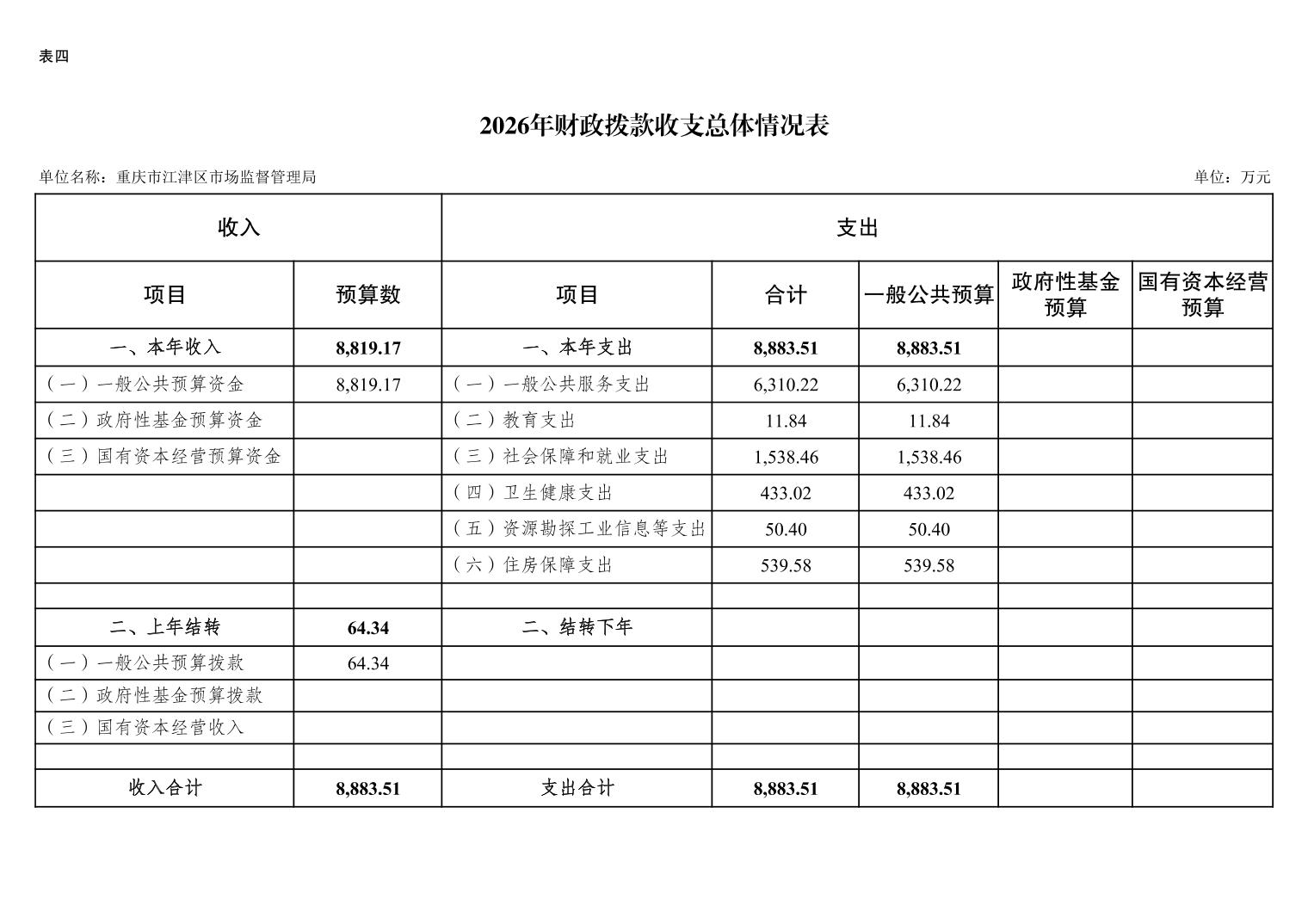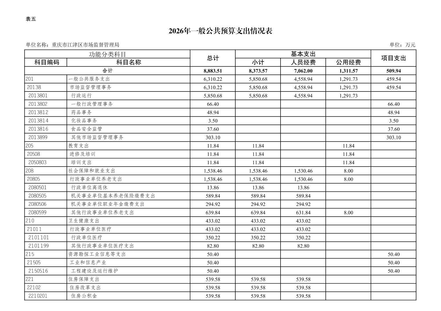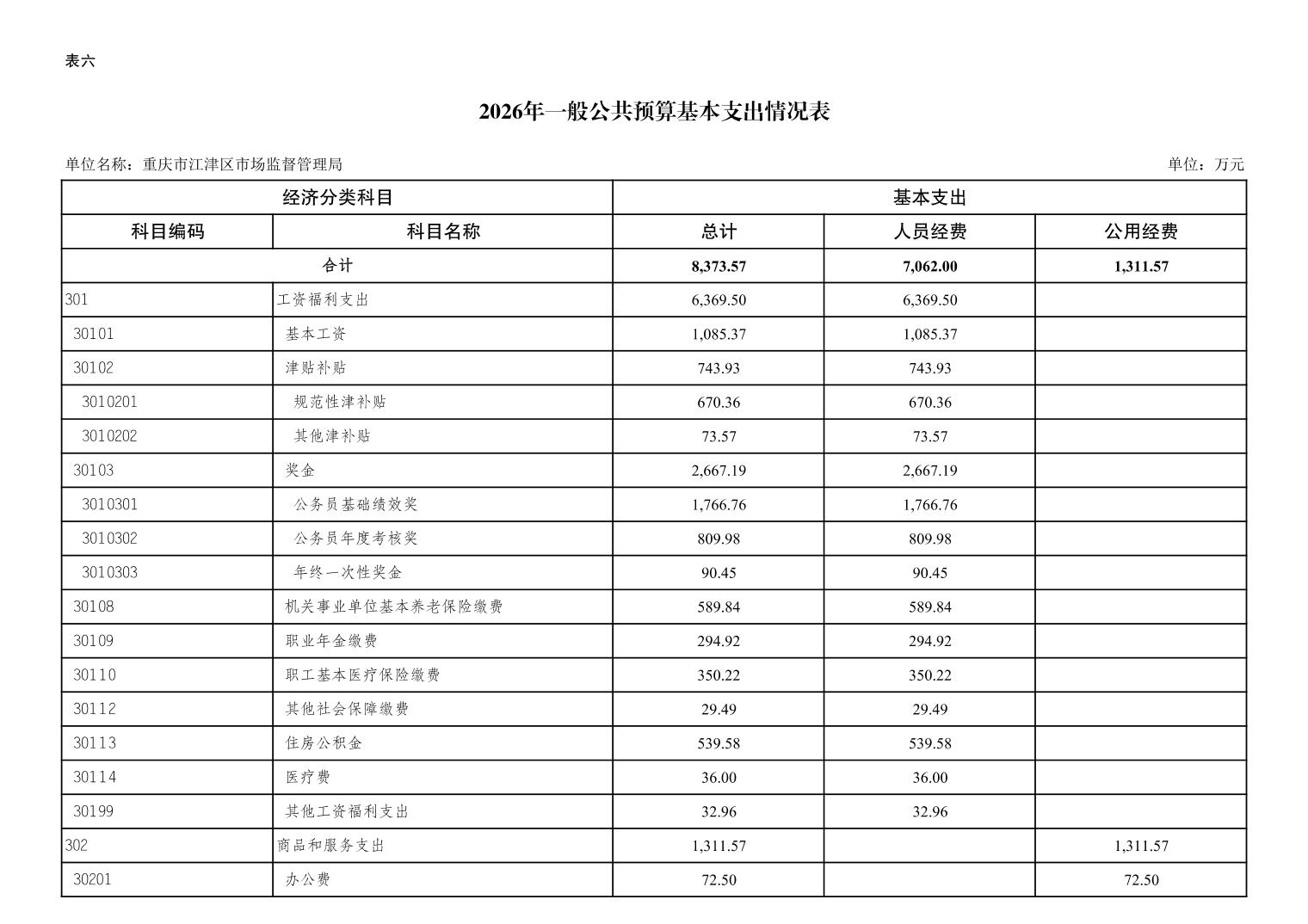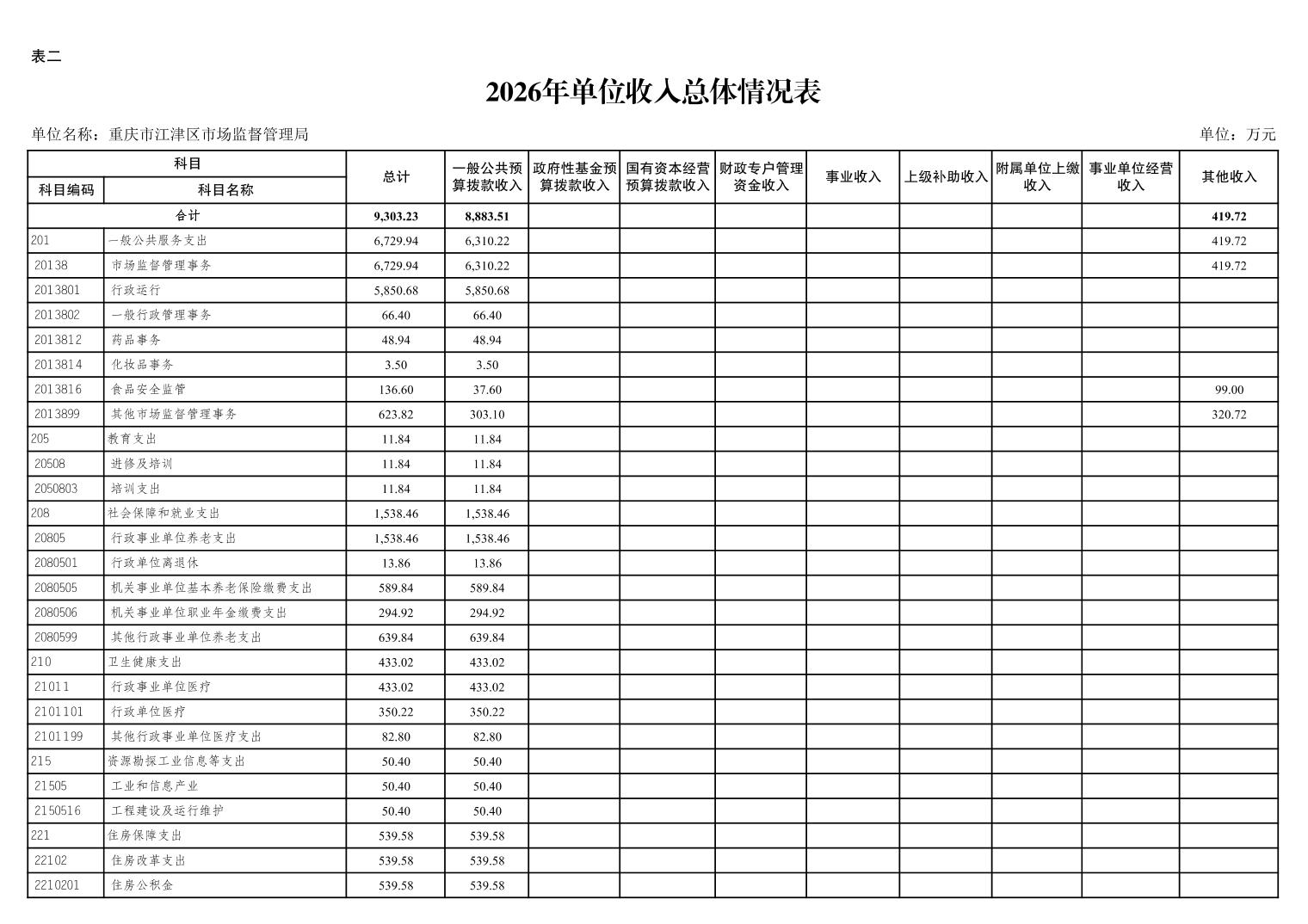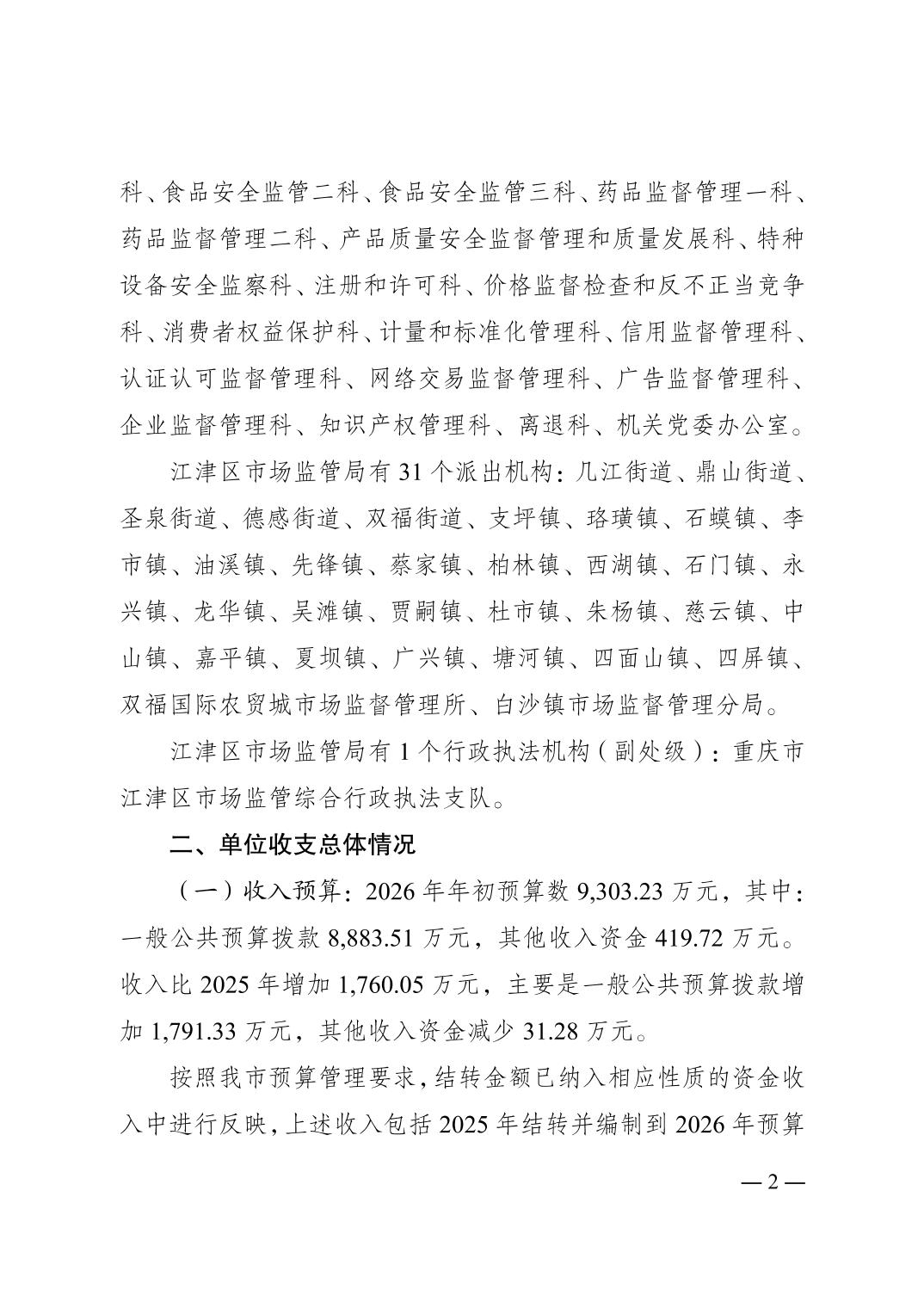 重庆市江津区市场监督管理局2026年单位预算情况说明