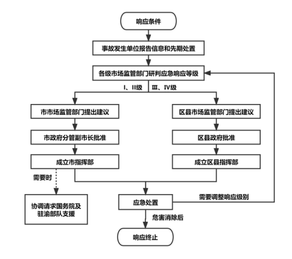 I级、II级应急响应由市市场监管部门组织会商后提出启动应急响应建议,报市政府分管副市长批准决定启动 I级、II级应急响应;Ⅲ级、Ⅳ级应急响由区县市场监管部门组织会商后提出启动应急响应建议,报区县政府批准决定启动Ⅲ级、Ⅳ级应急响应。