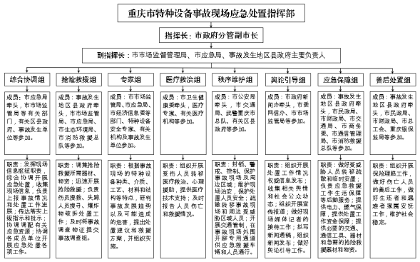 重庆市特种设备事故应急处置组织机构及工作组职责