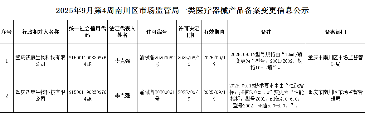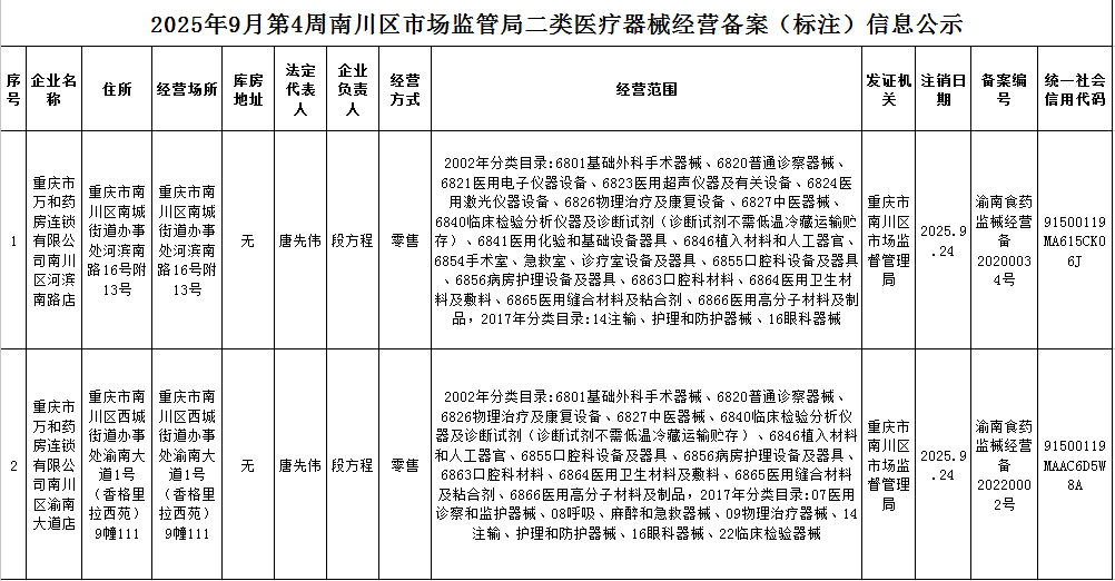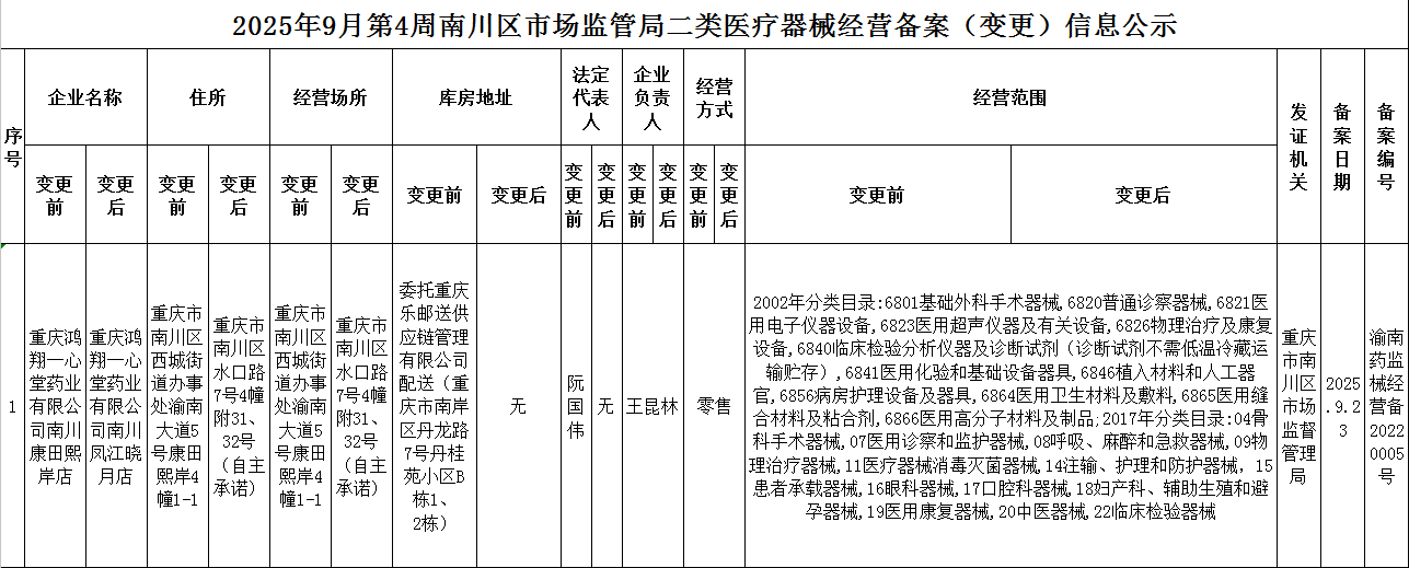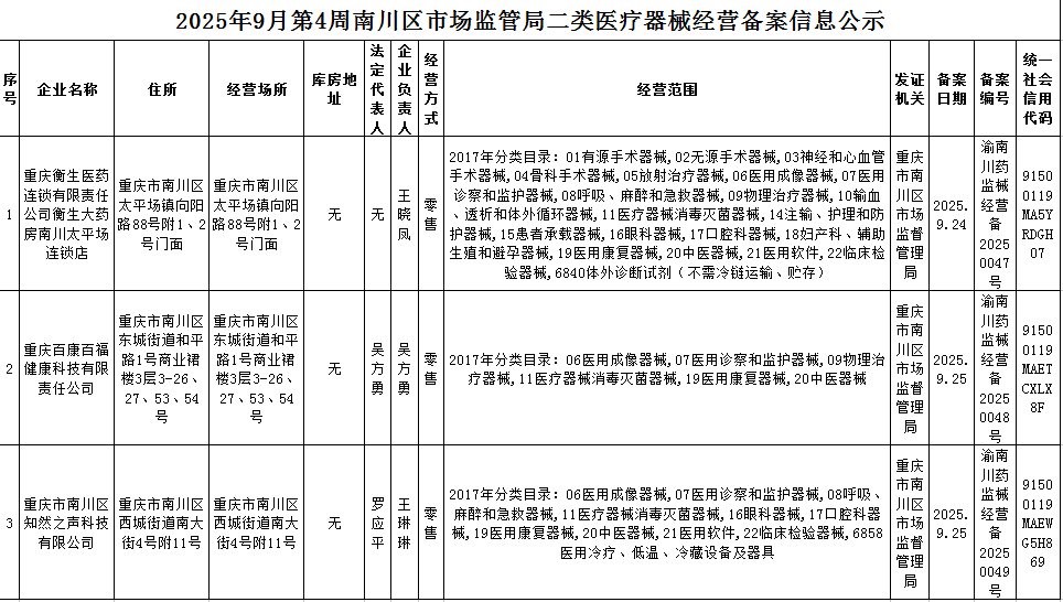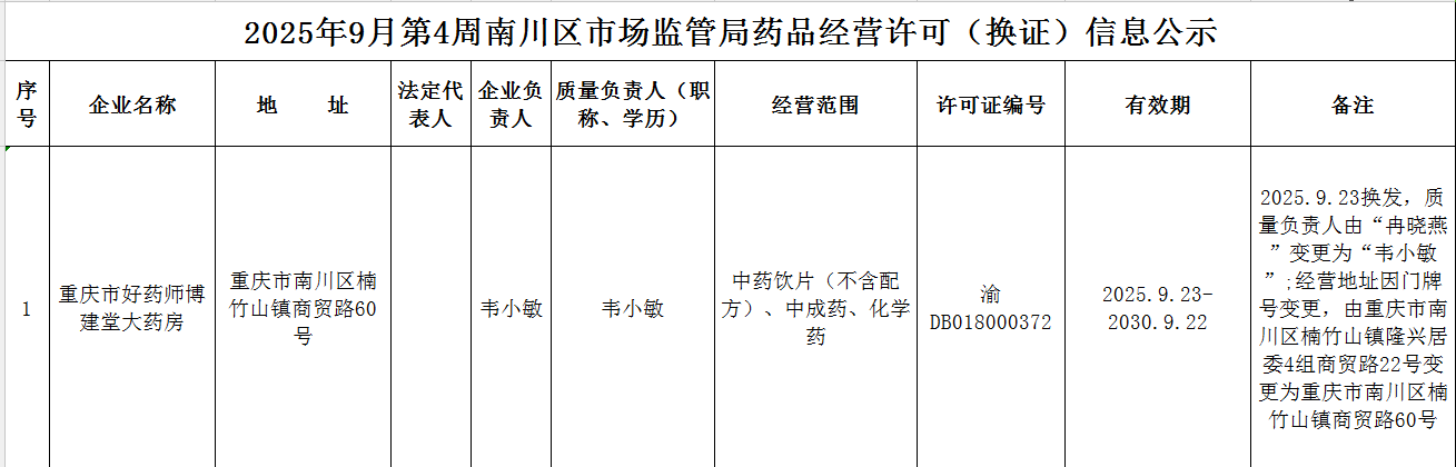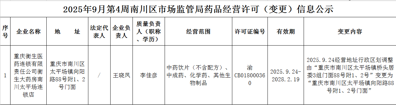 2025年9月第4周南川区市场监管局药品行政审批许可信息