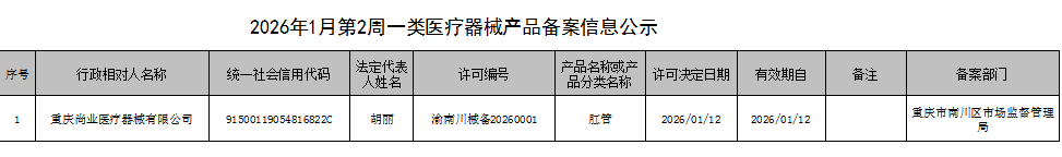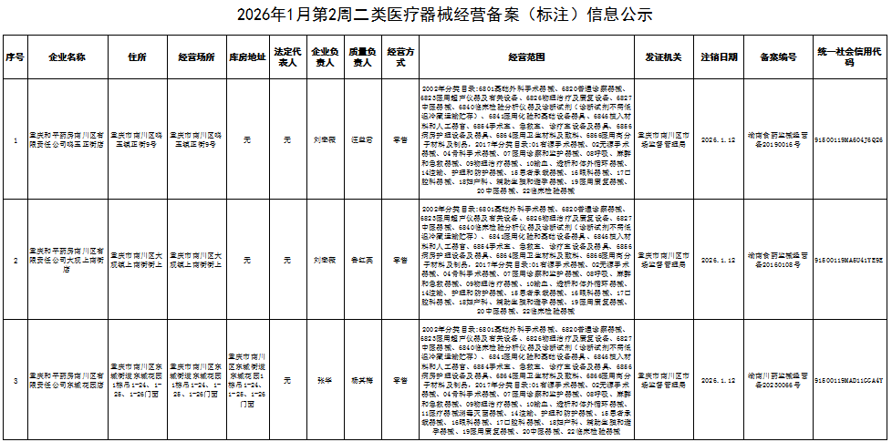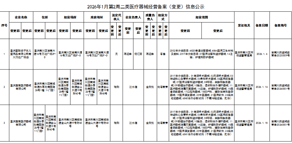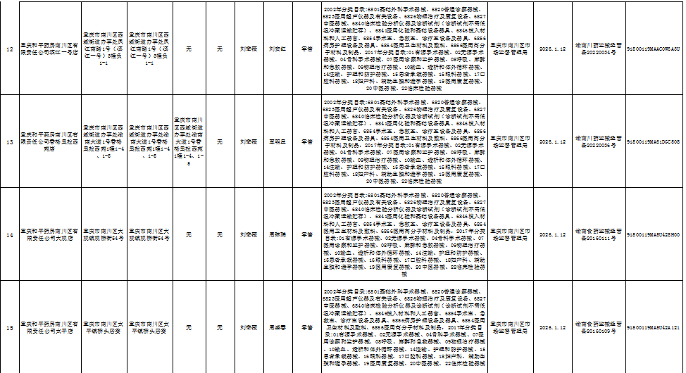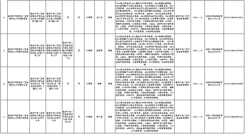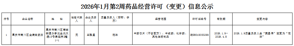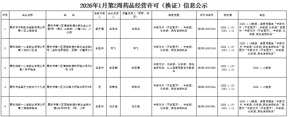 2026年1月第2周南川区市场监管局药品行政审批许可信息