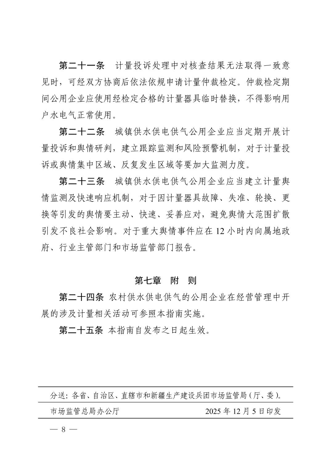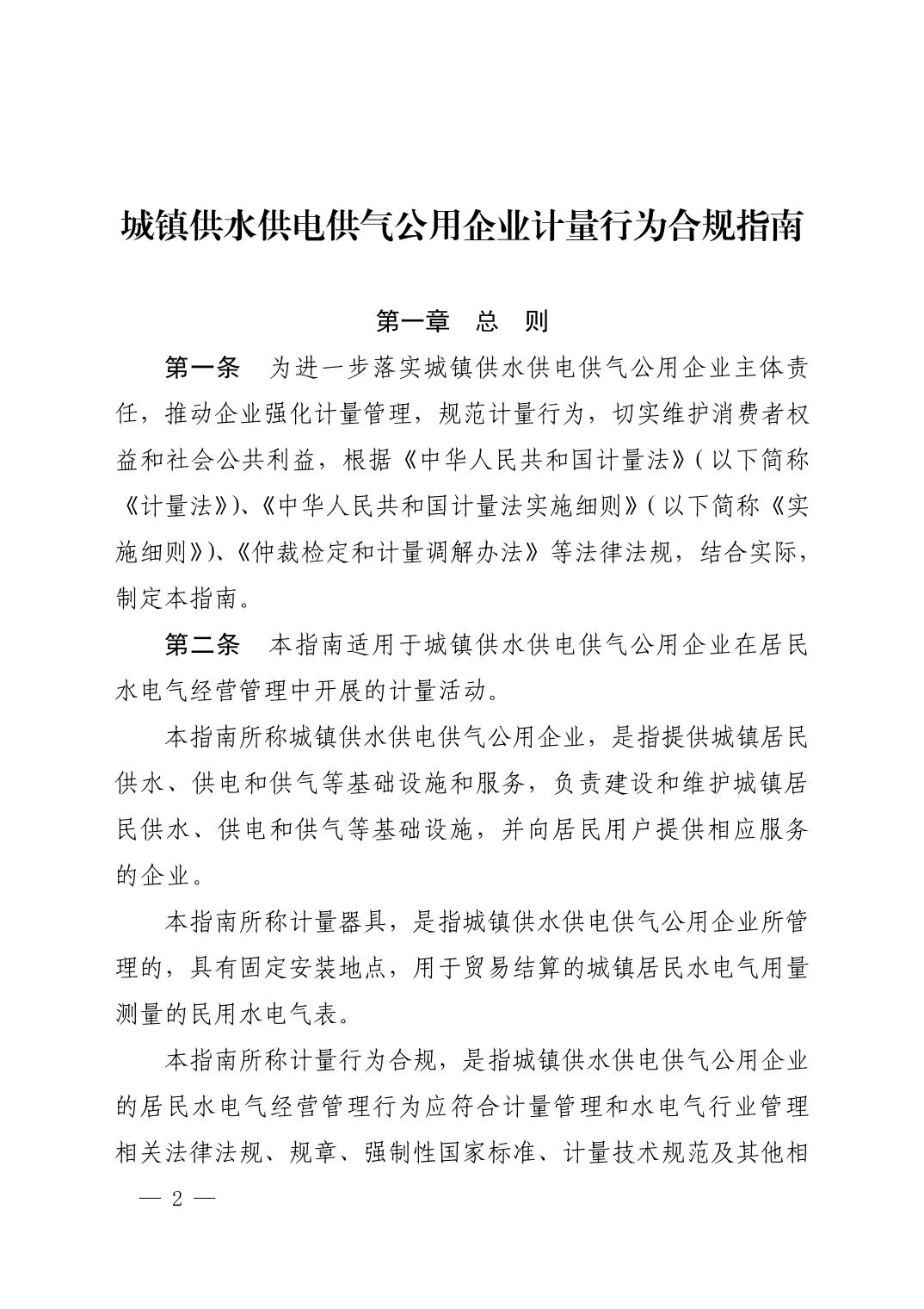 市场监管总局关于发布《城镇供水供电供气公用企业计量行为合规指南》的公告