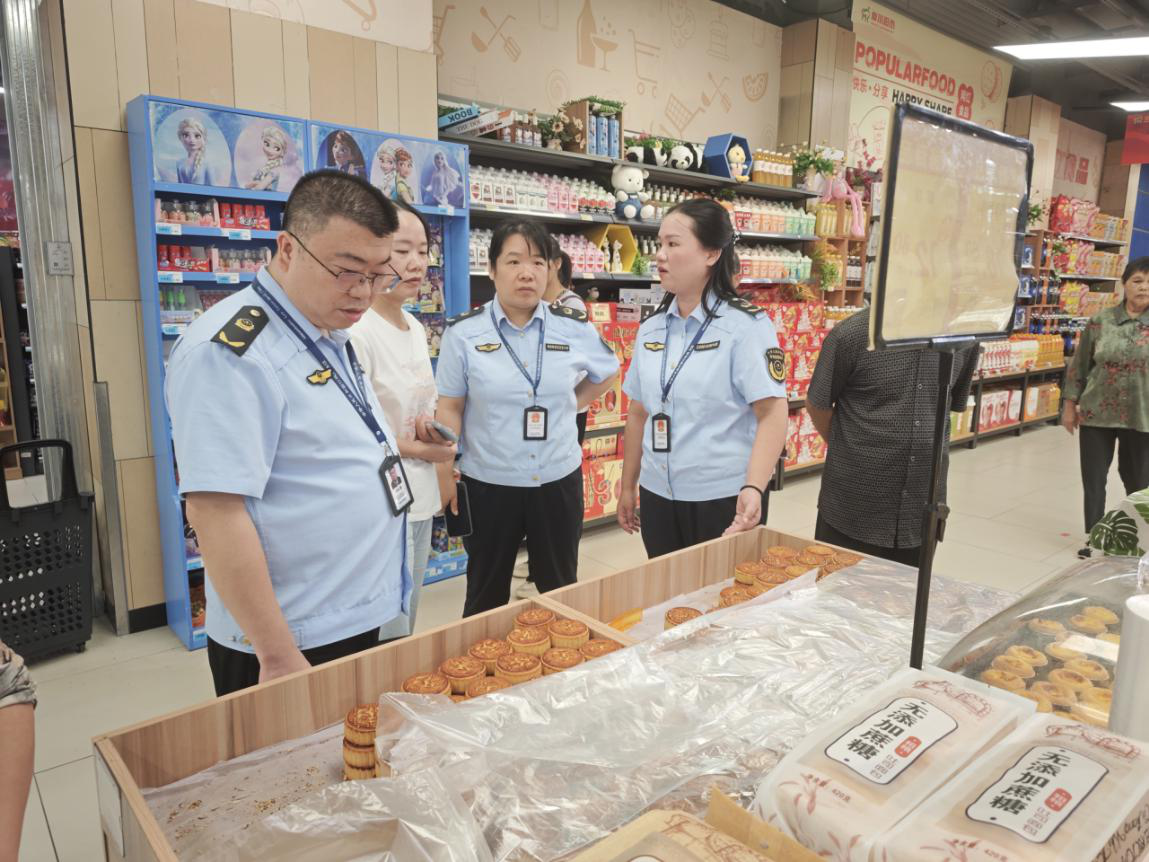 8月以来,区市场监管局抽检月饼共计15批次,暂未发现问题食品。下一步,区市场监管局将持续加大节前巡查频次与监管力度,严把市场准入关、原料进货关、质量安全关。同时畅通12315投诉举报渠道,对违法违规行为依法从严从快打击,以扎实举措保障节日期间食品安全和市场秩序稳定,让群众买得放心、吃得安心,度过一个安全祥和的中秋国庆。(图为执法人员检查月饼食品安全)