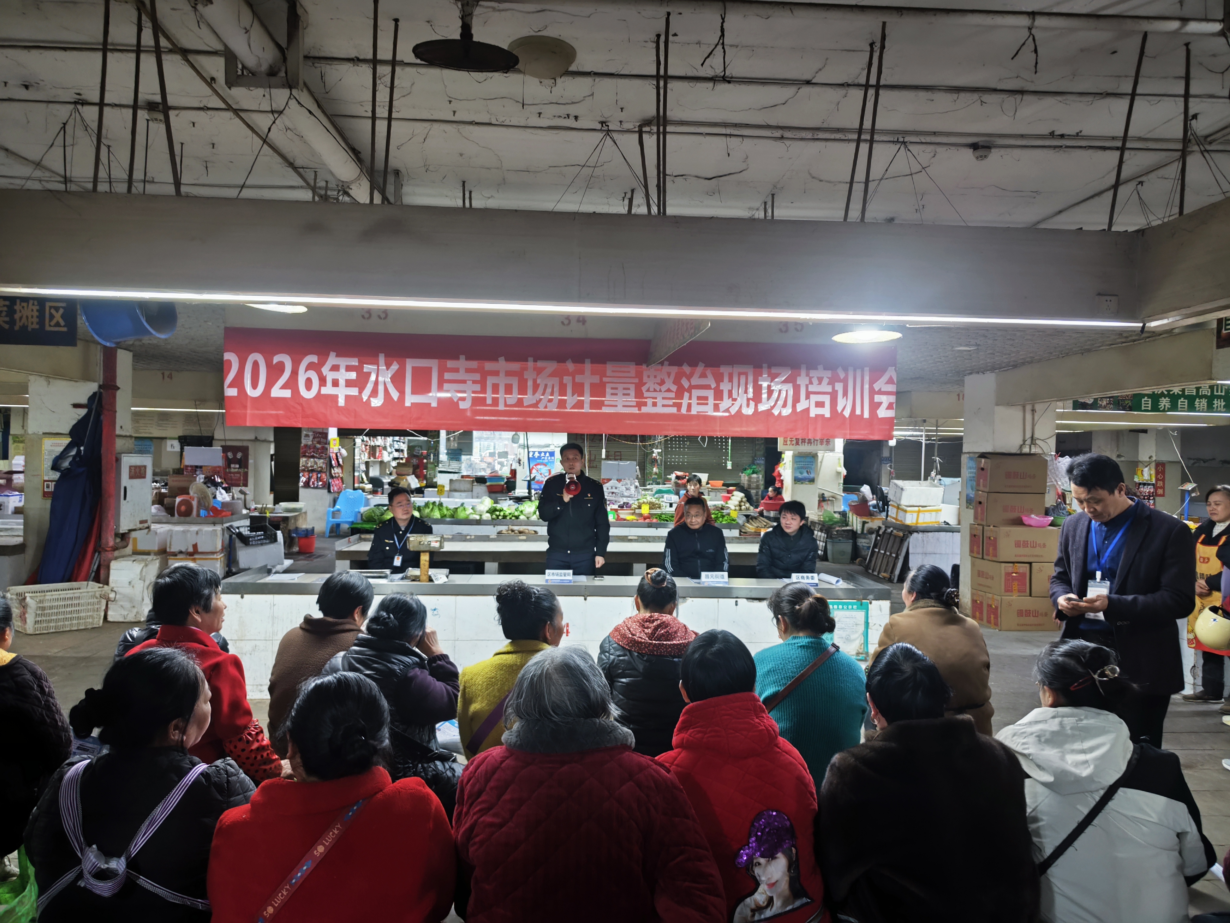 区市场监管局严查“鬼秤”护民生 召开水口寺市场计量整治现场警示培训会