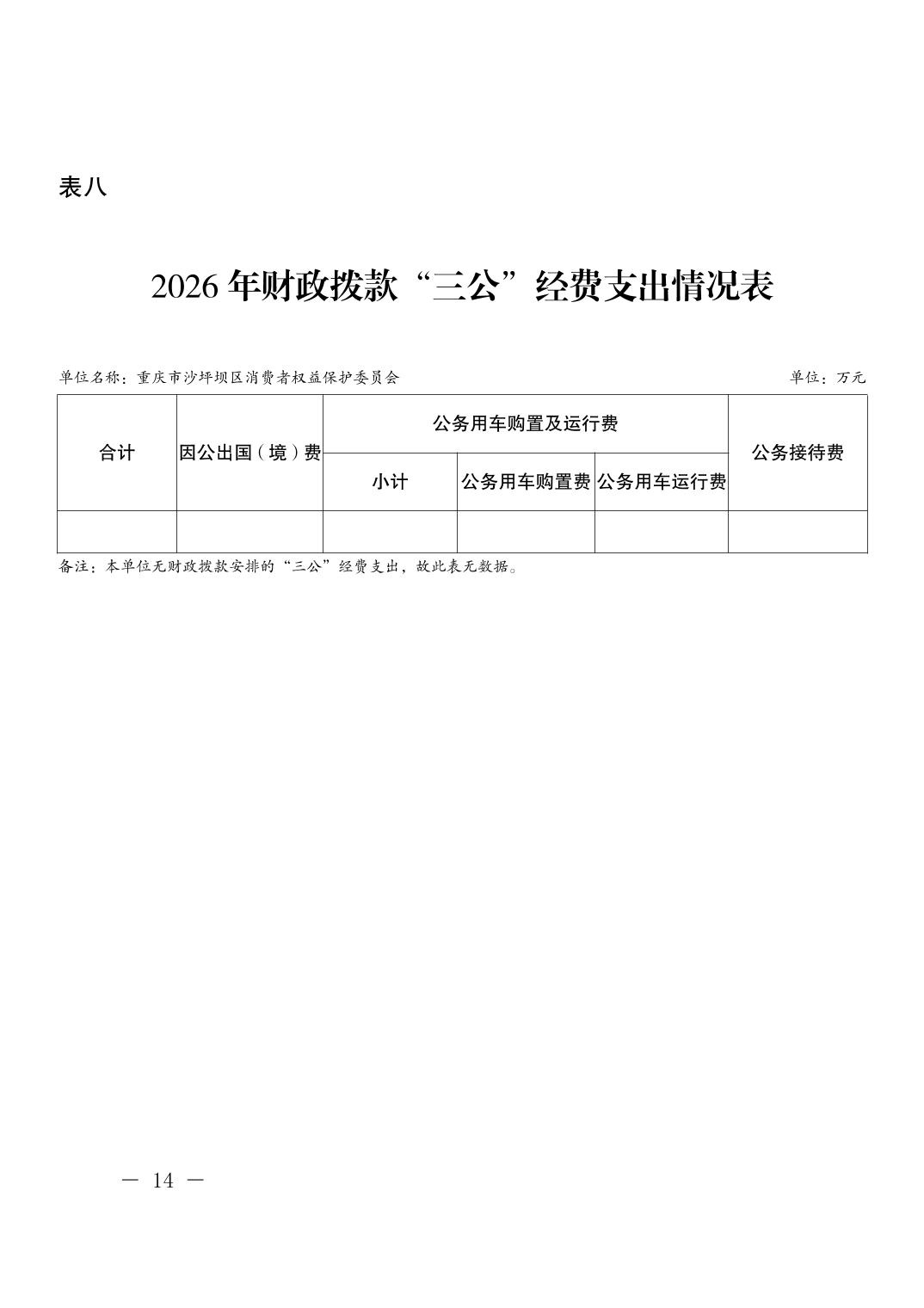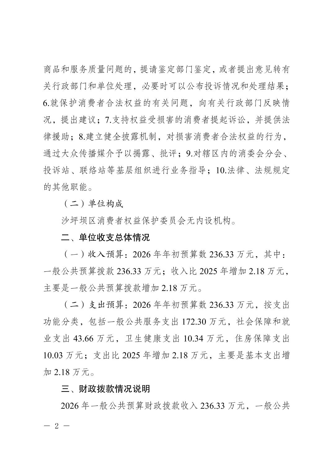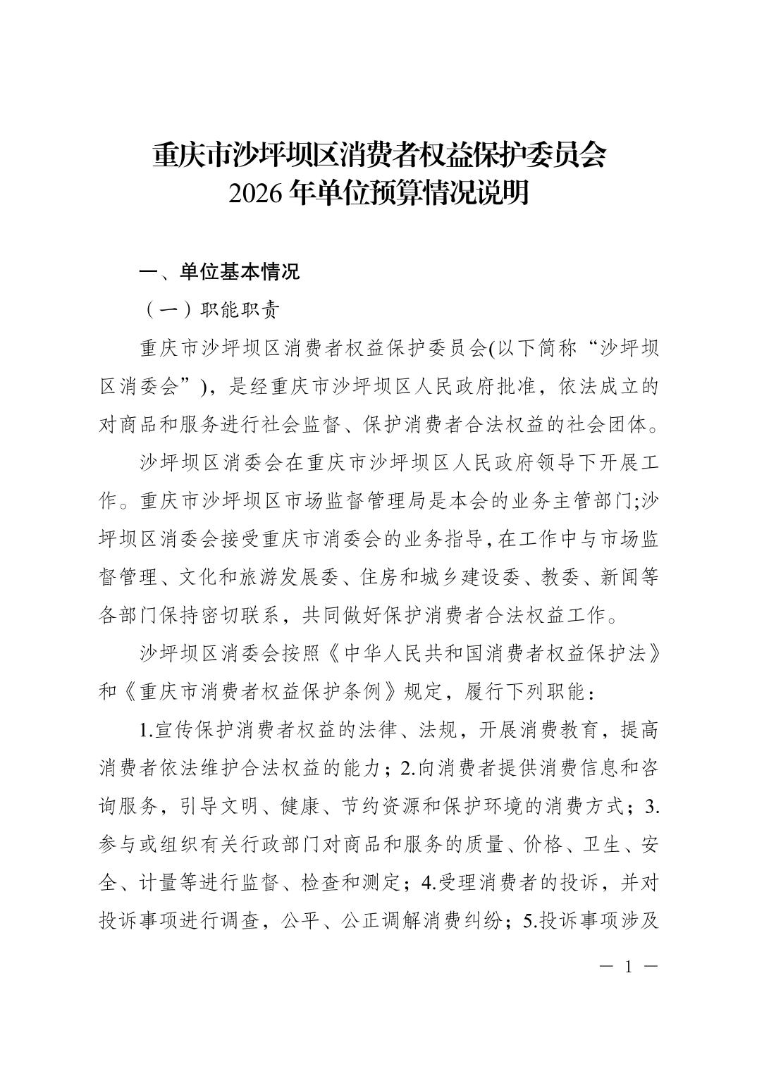 重庆市沙坪坝区消费者权益保护委员会2026年单位预算情况说明