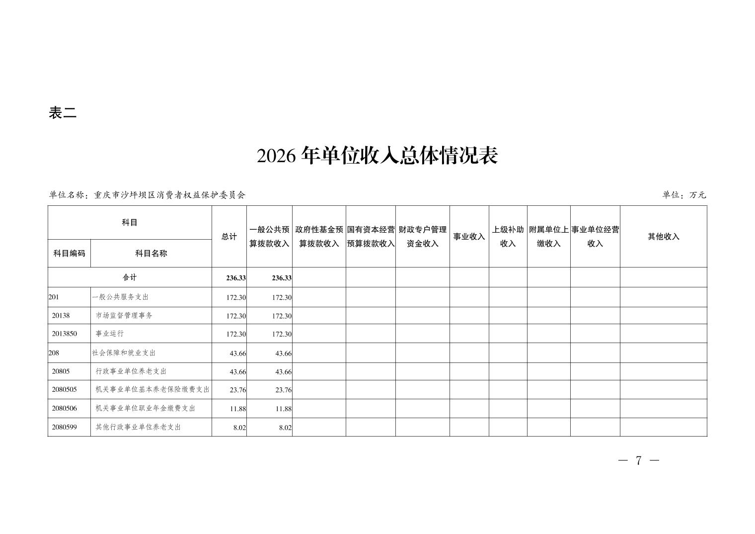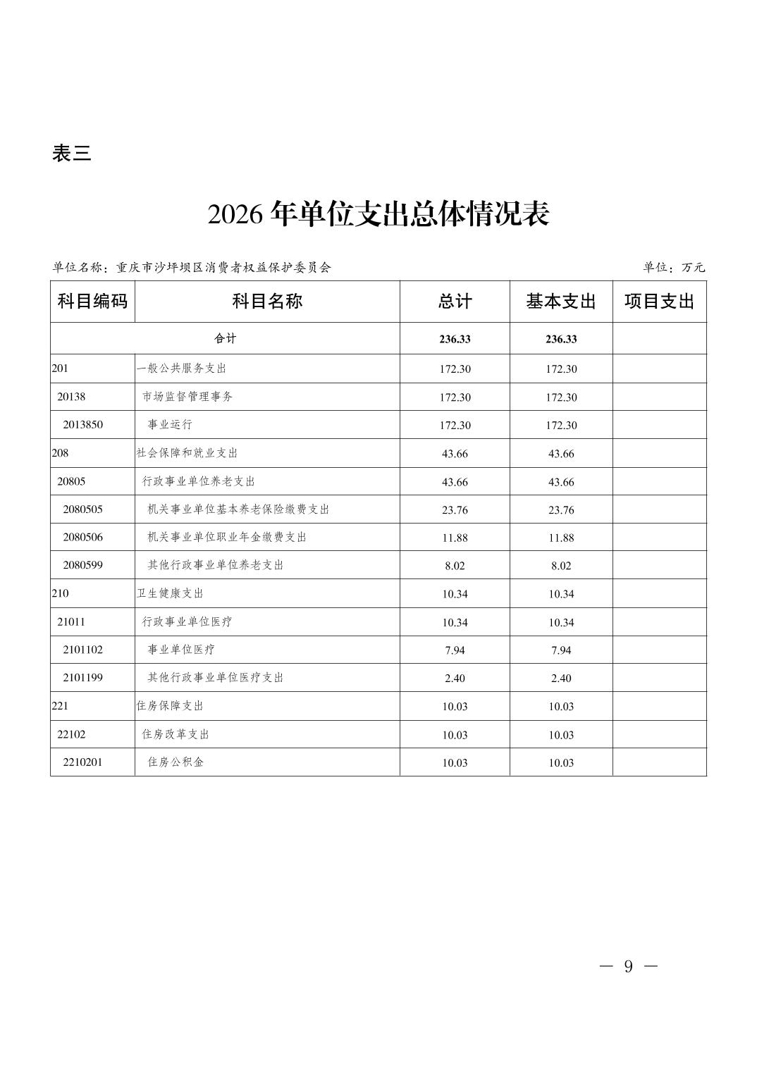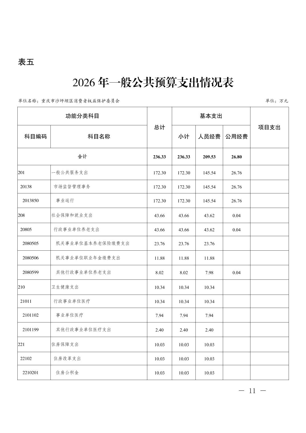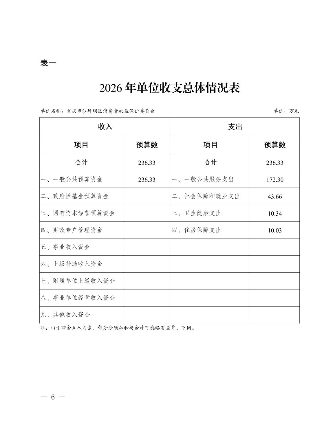 重庆市沙坪坝区消费者权益保护委员会2026年单位预算情况说明