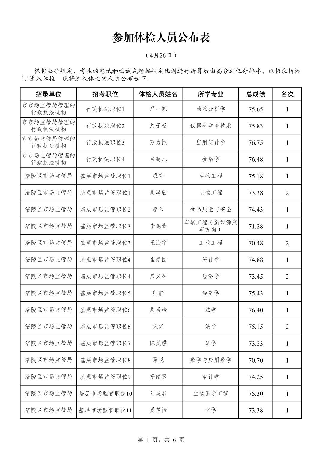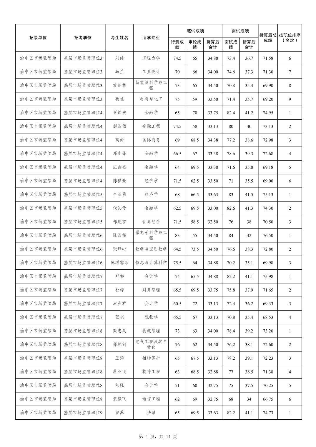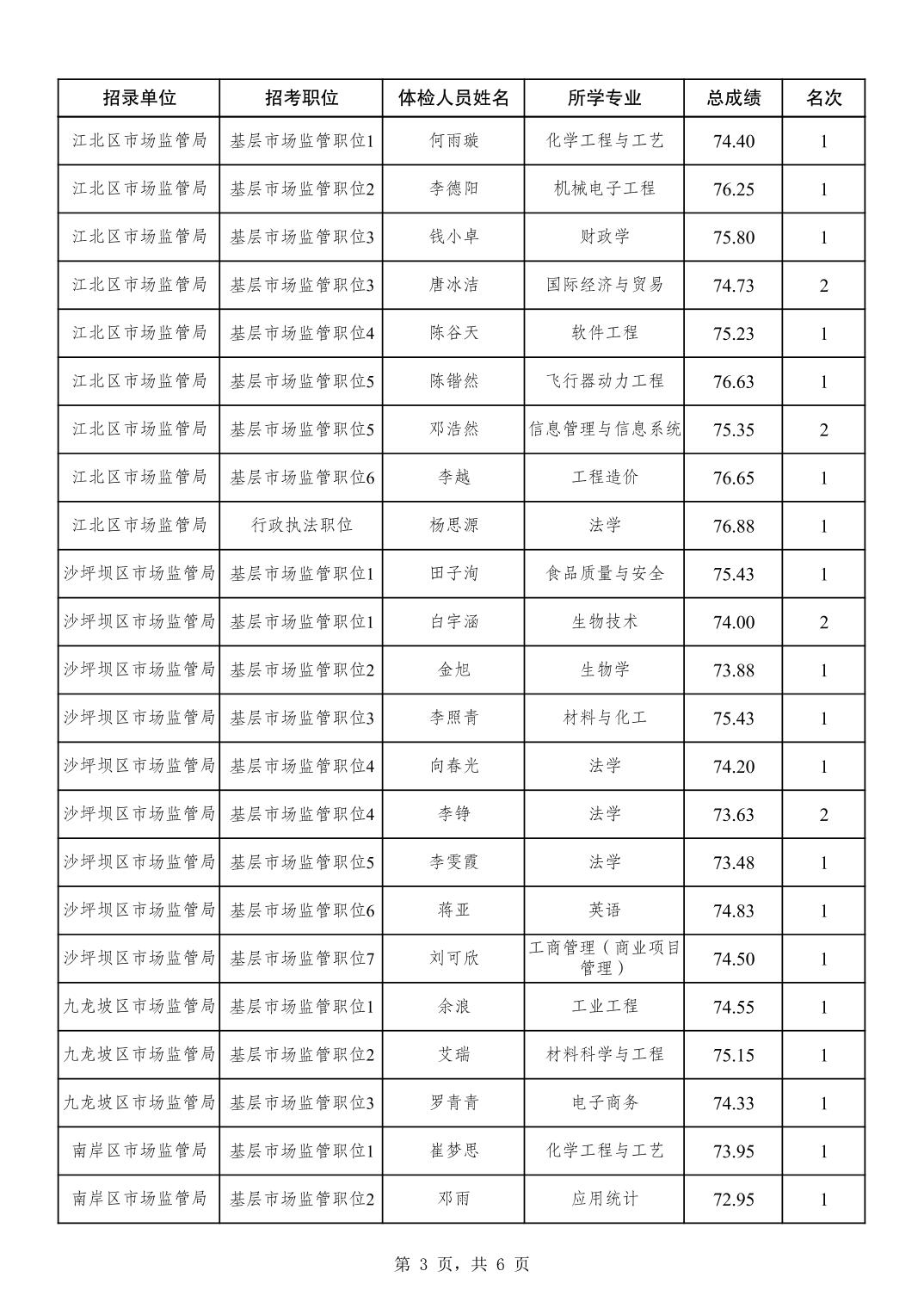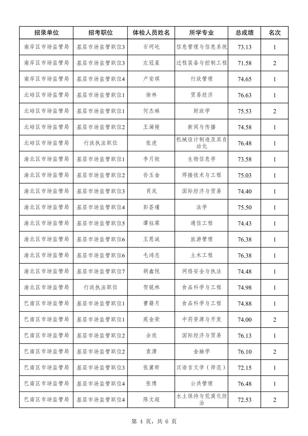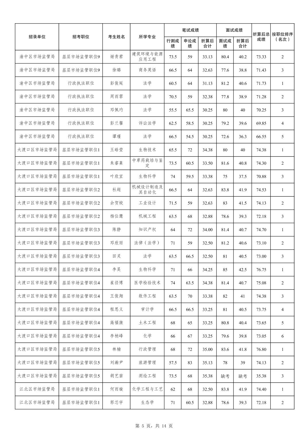 重庆市市场监督管理局2025年公开考试录用公务员成绩及参加体检人员公布(4月26日面试)