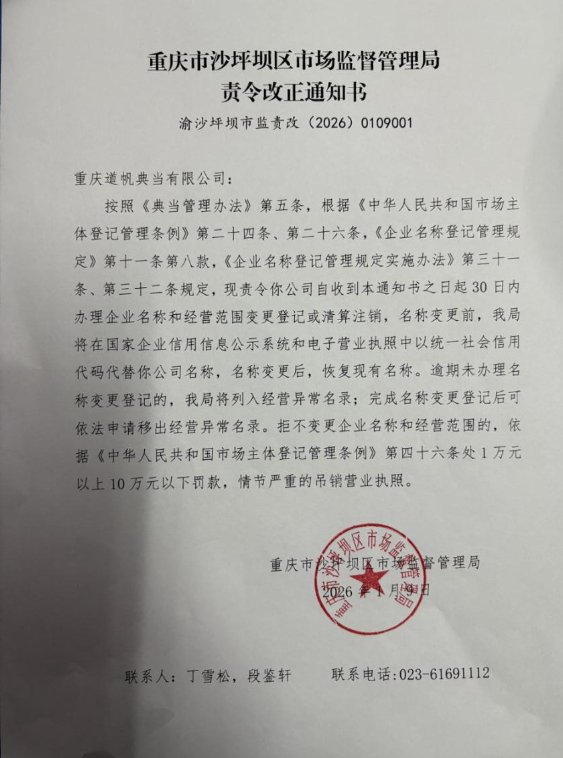 《重庆市沙坪坝区市场监督管理局责令改正通知书》送达公告