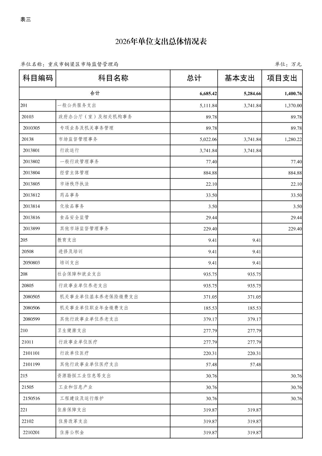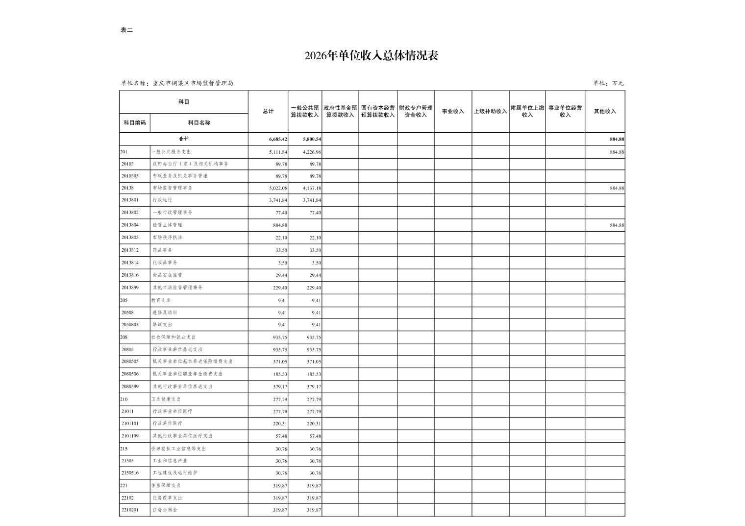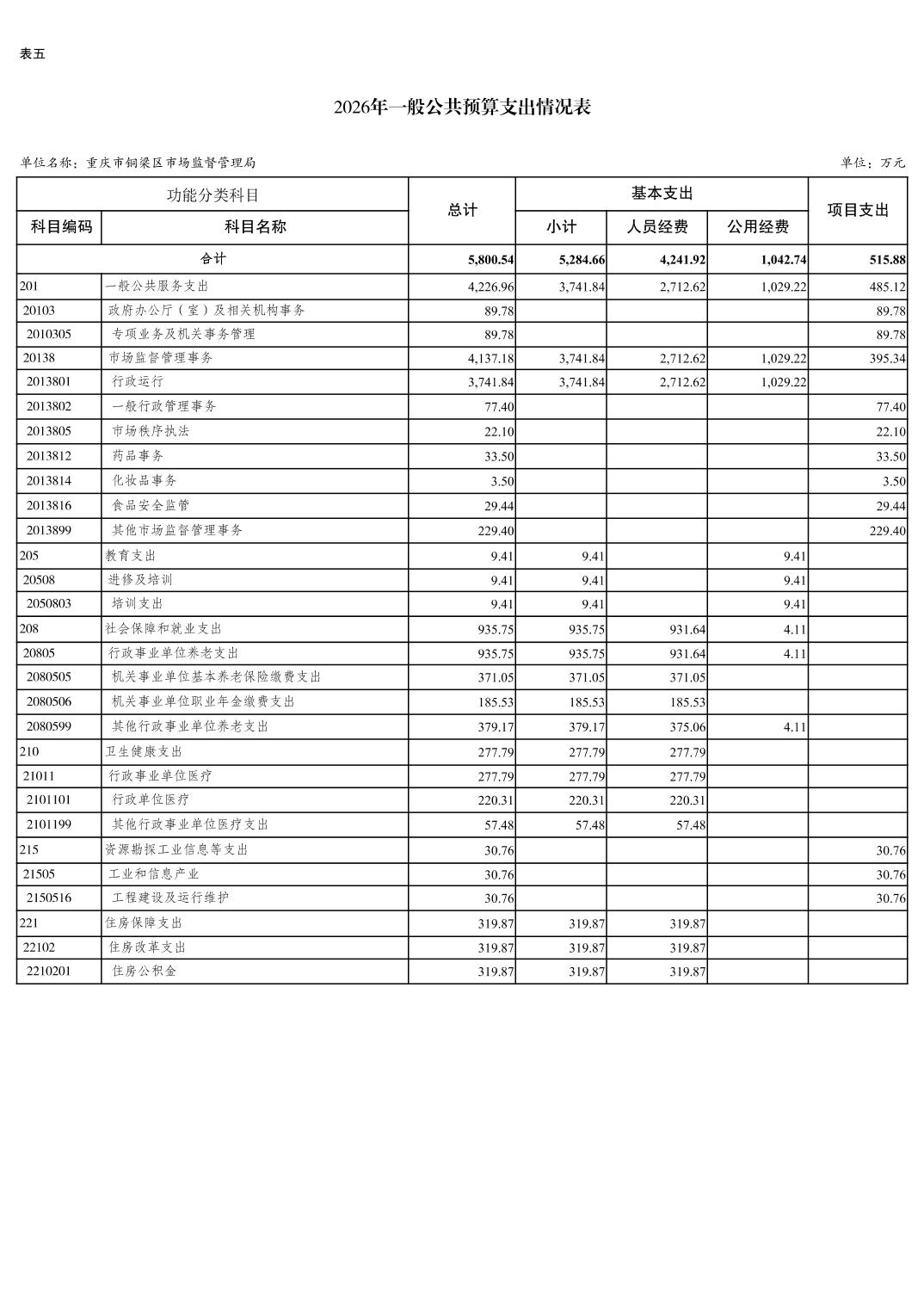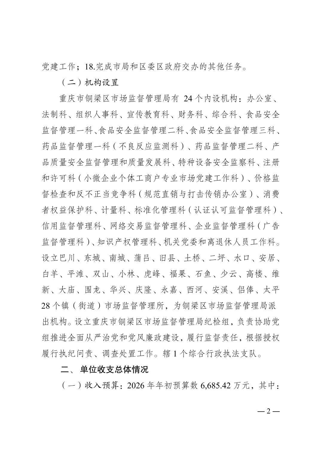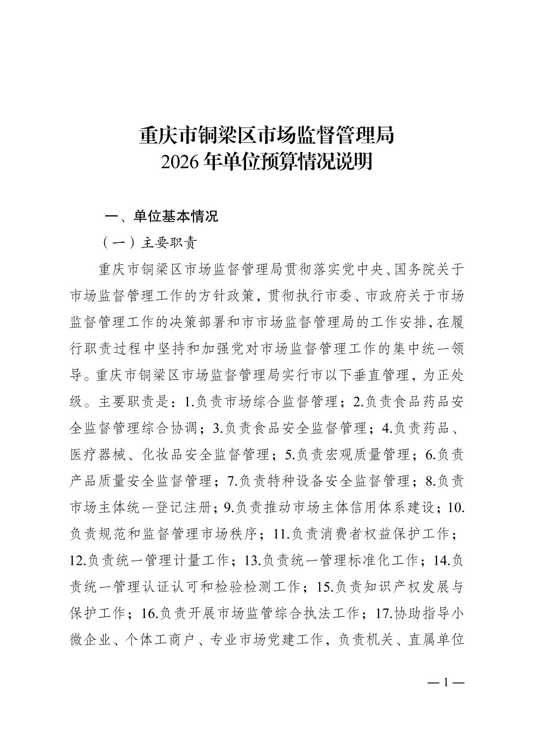 重庆市铜梁区市场监督管理局2026年单位预算情况说明