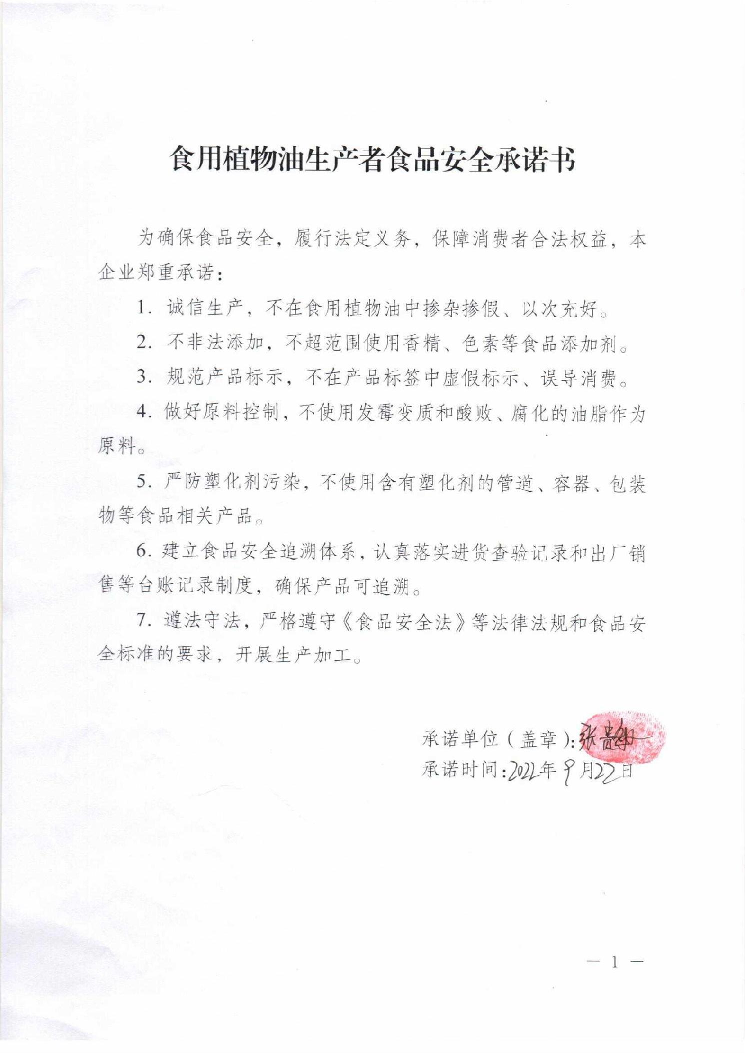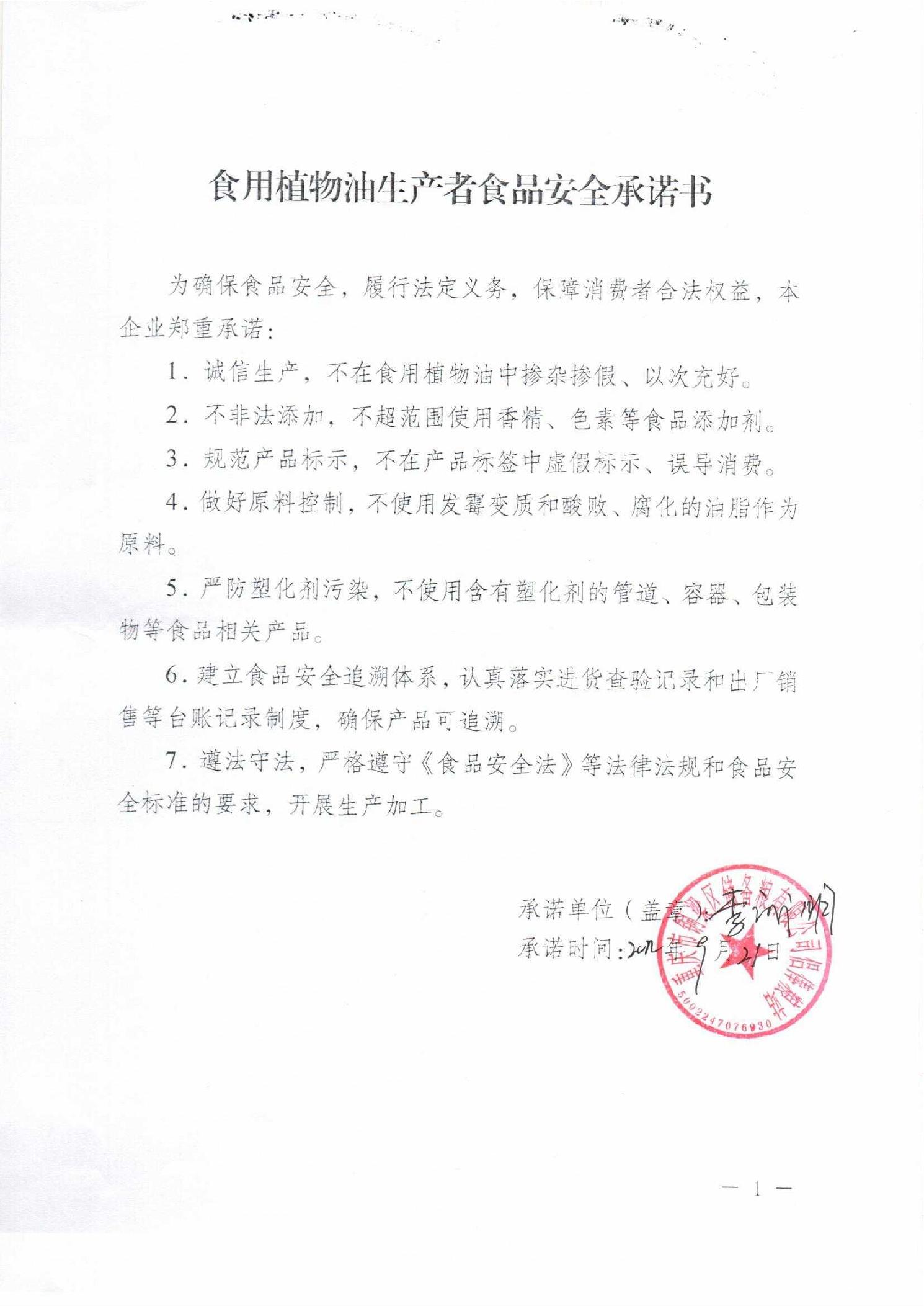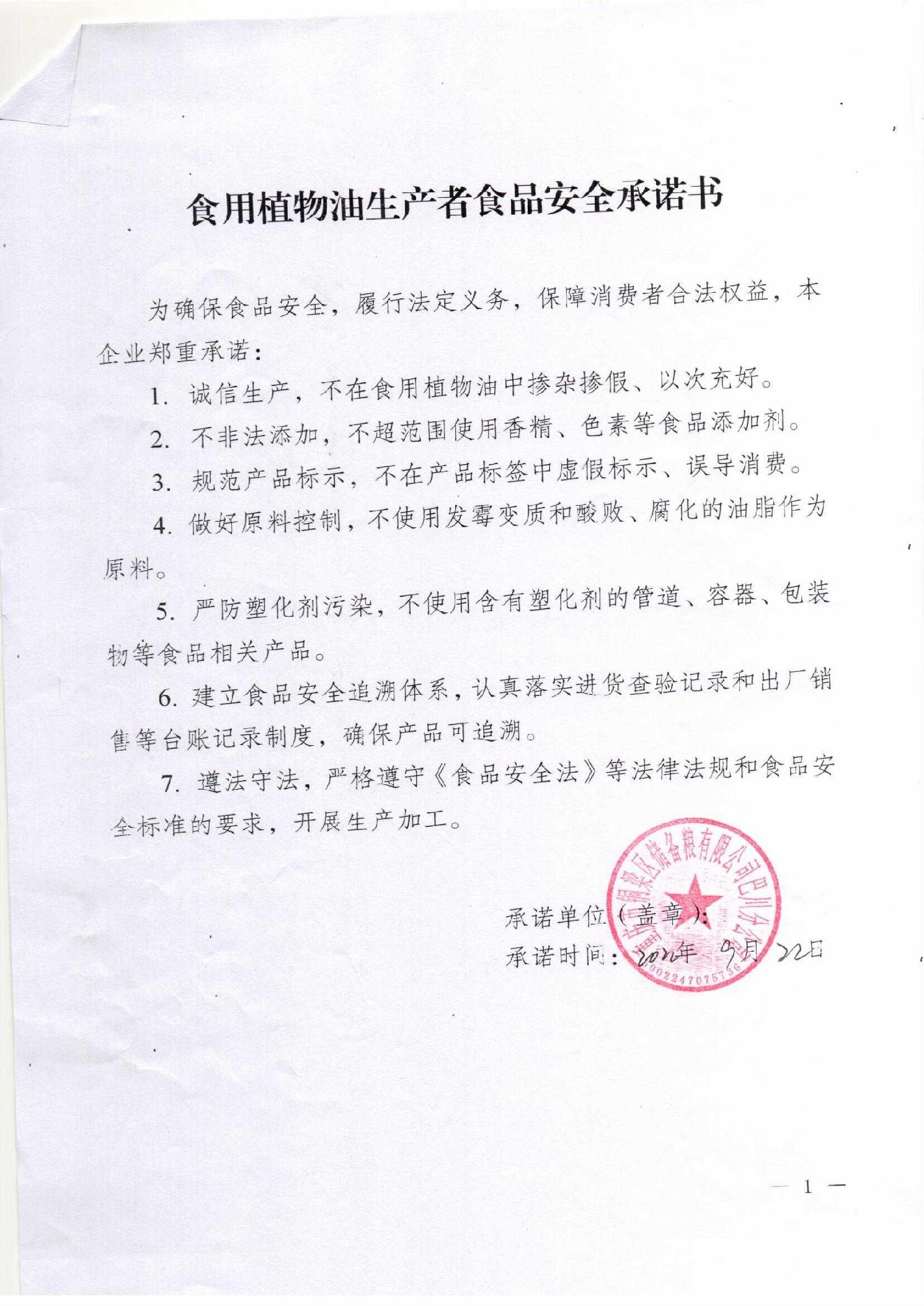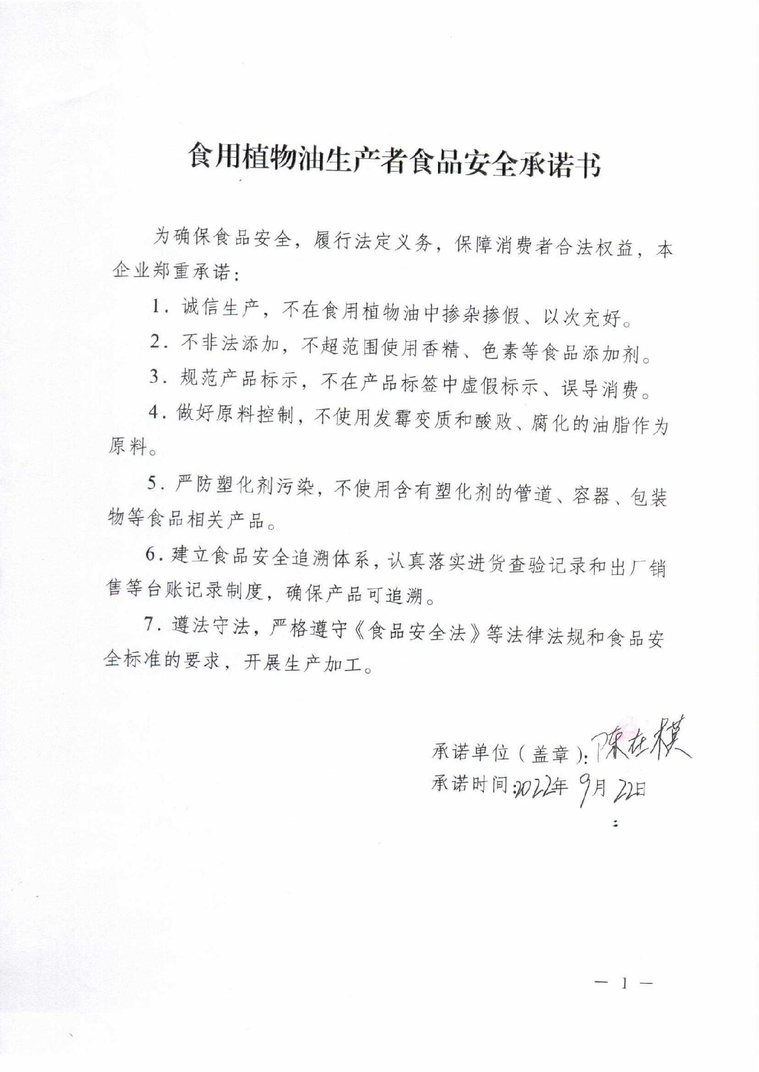 重庆市铜梁区食用植物油生产者食品安全承诺书公示