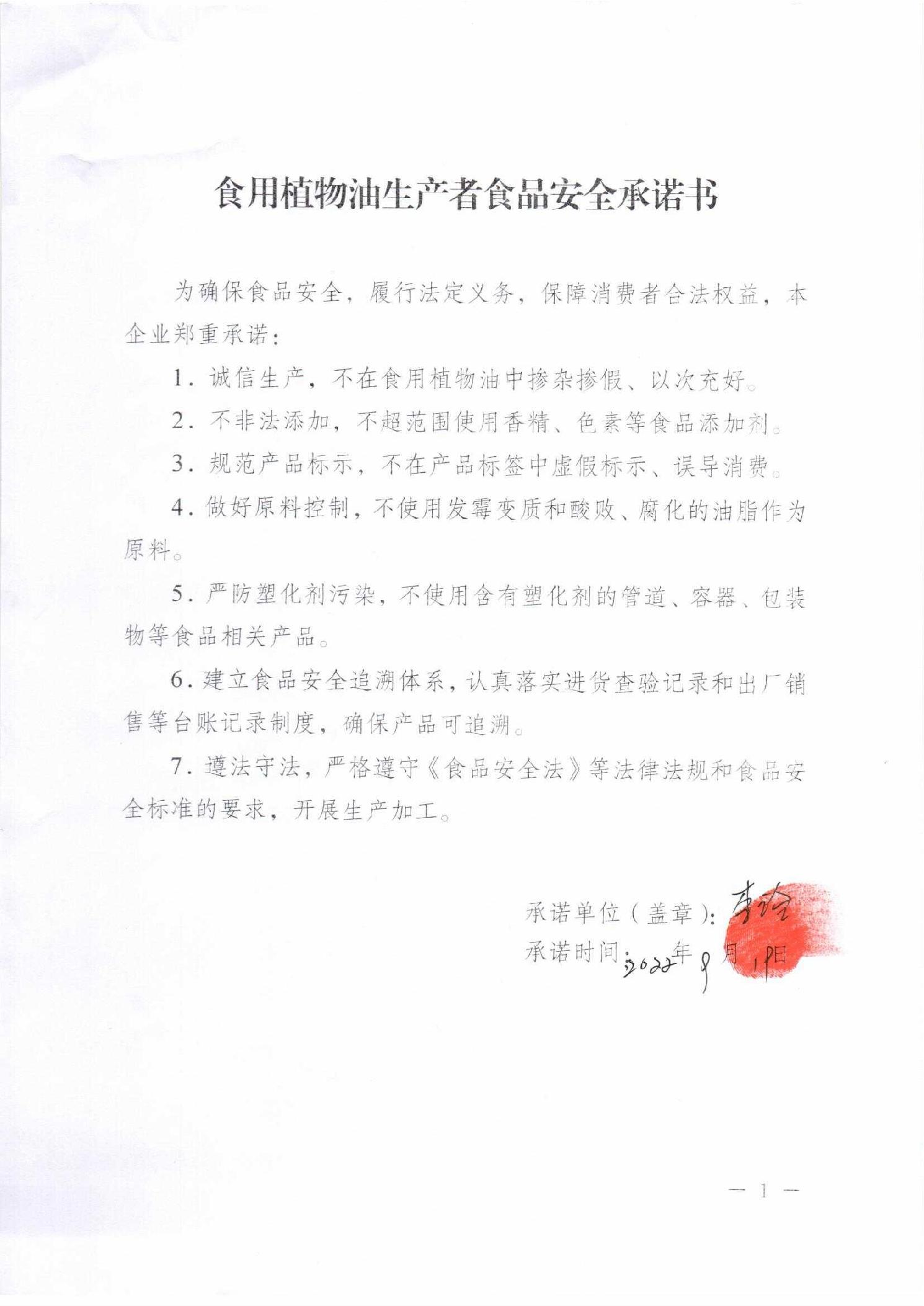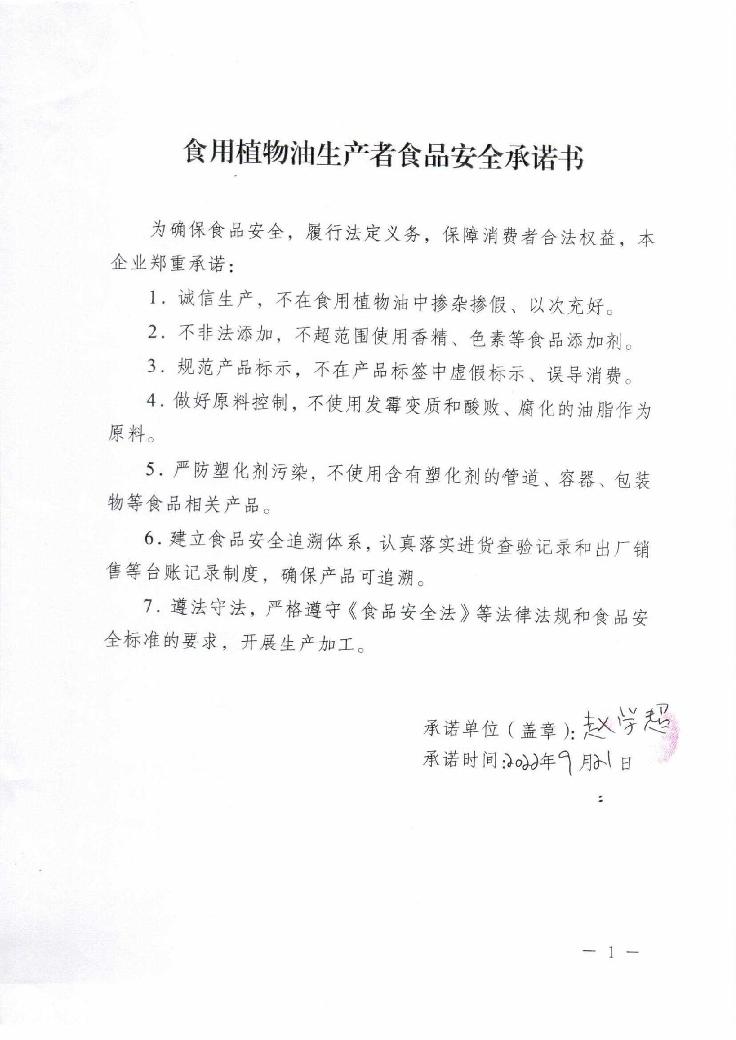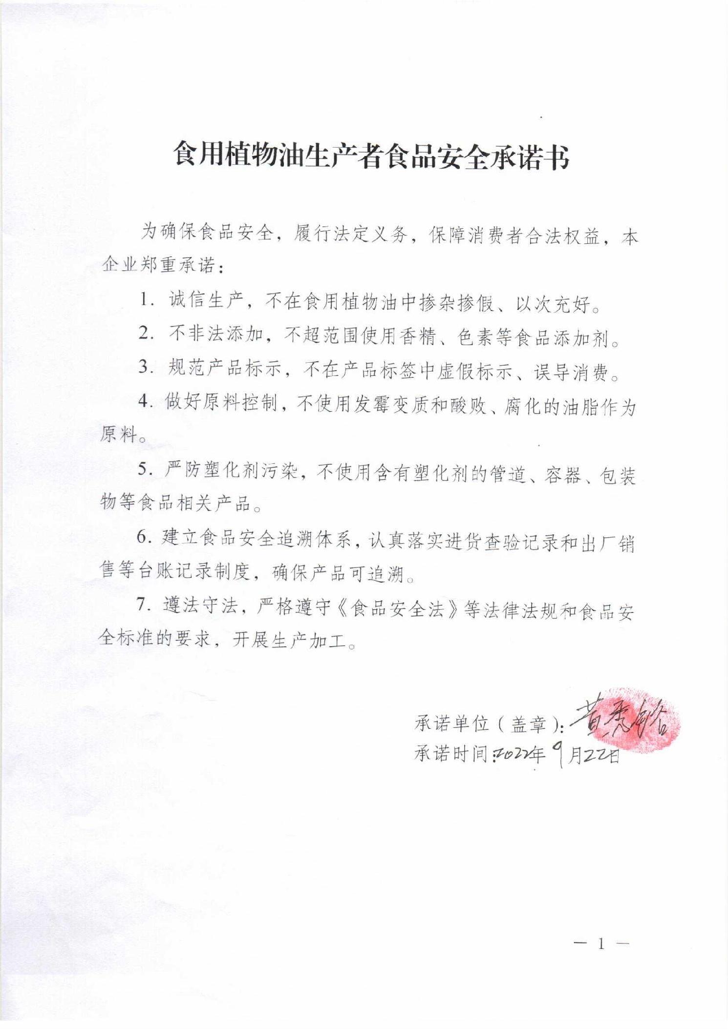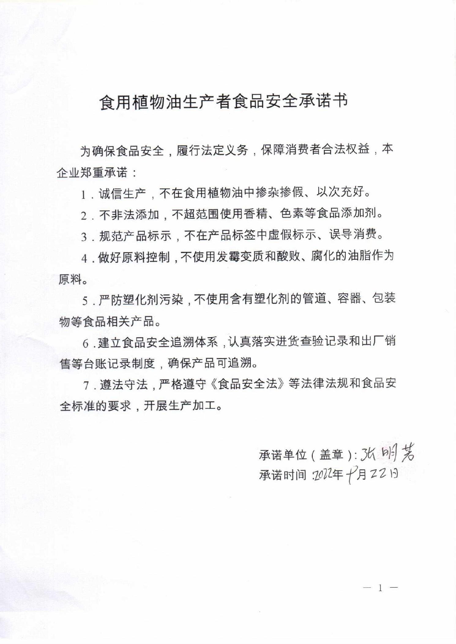 重庆市铜梁区食用植物油生产者食品安全承诺书公示