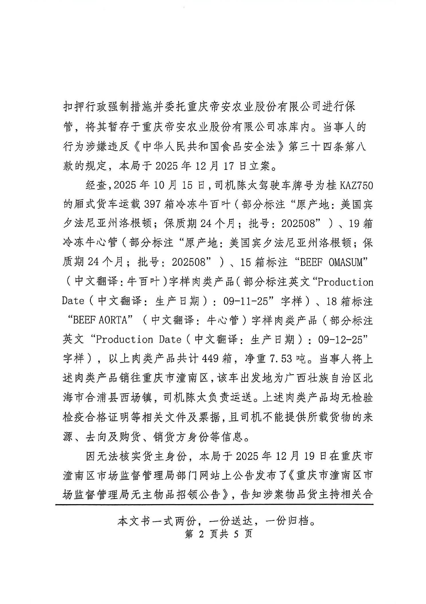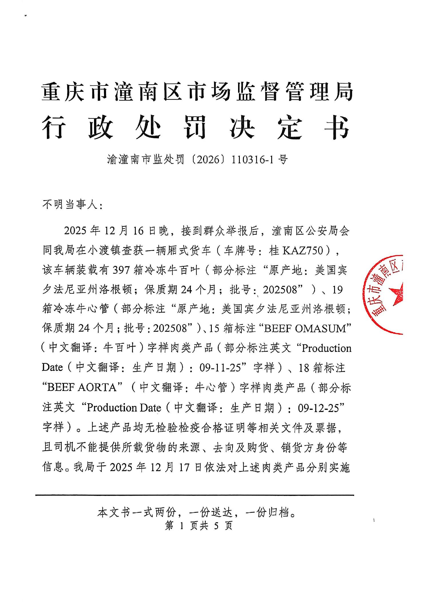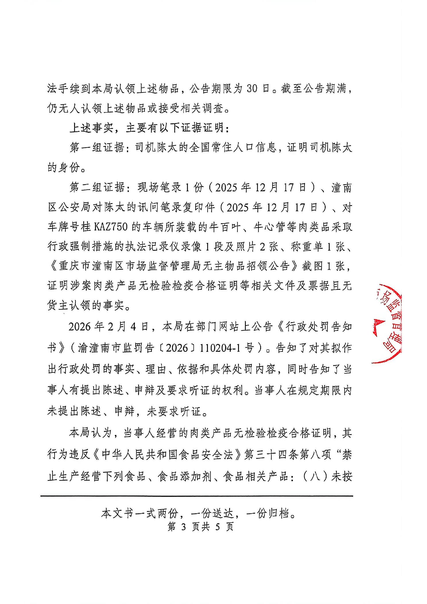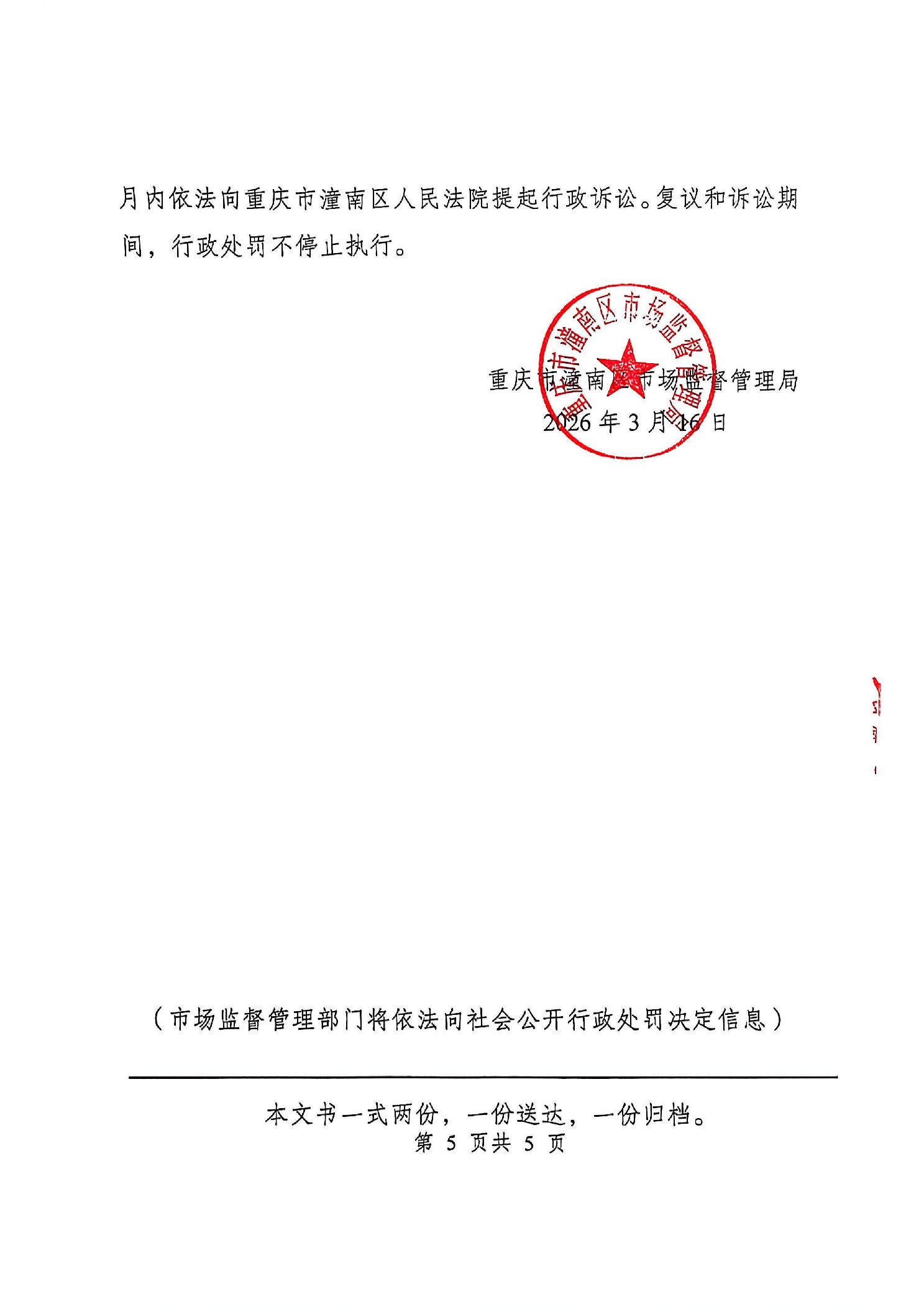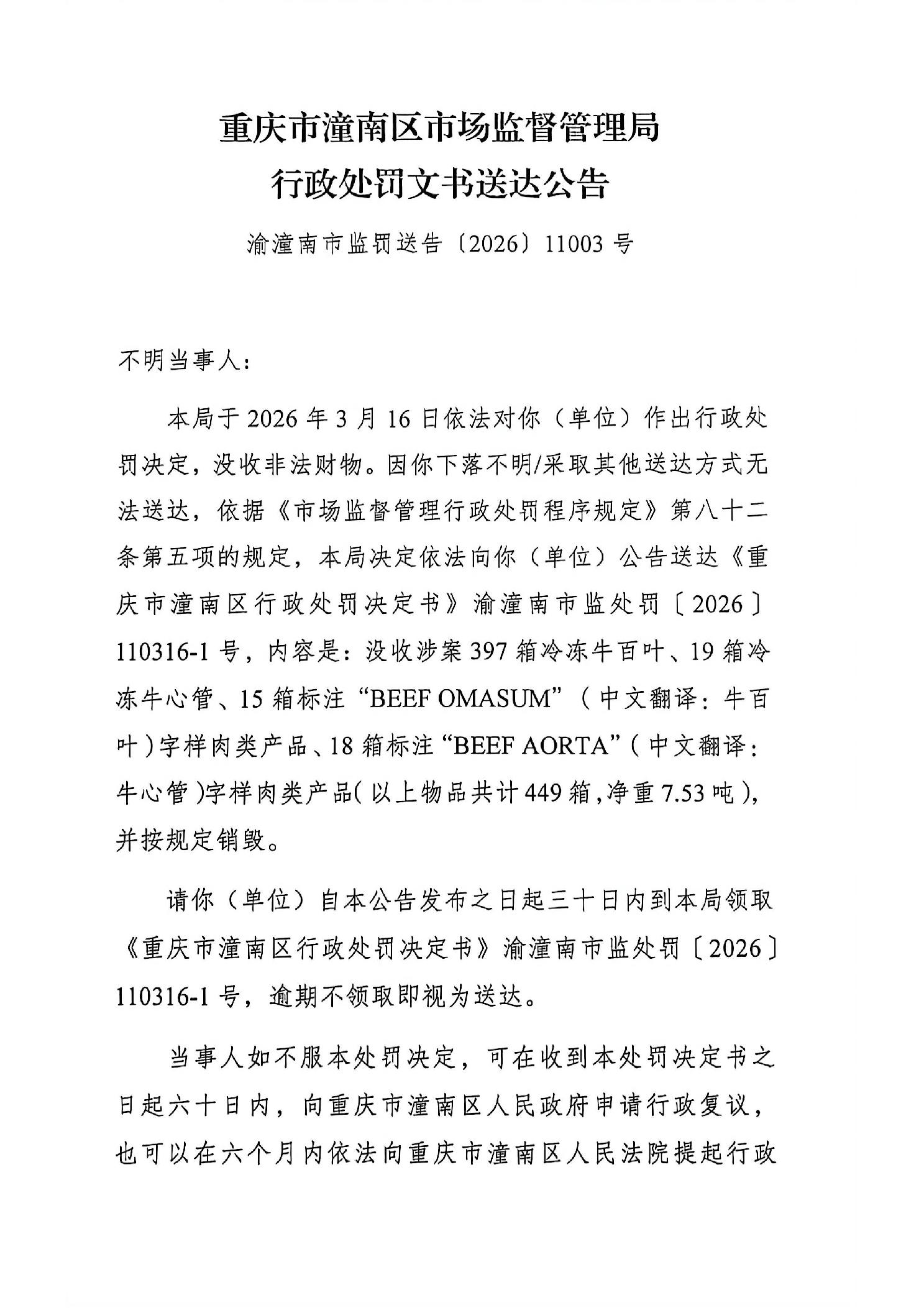 潼南区市场监管行政处罚送达公告【2026】11003号