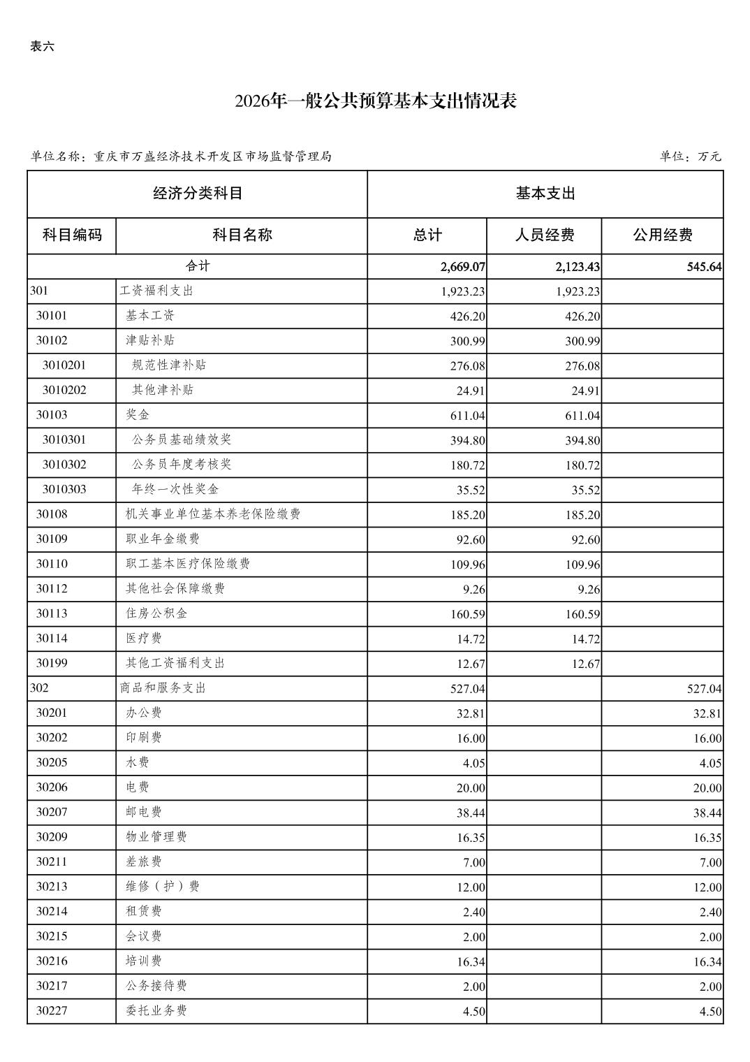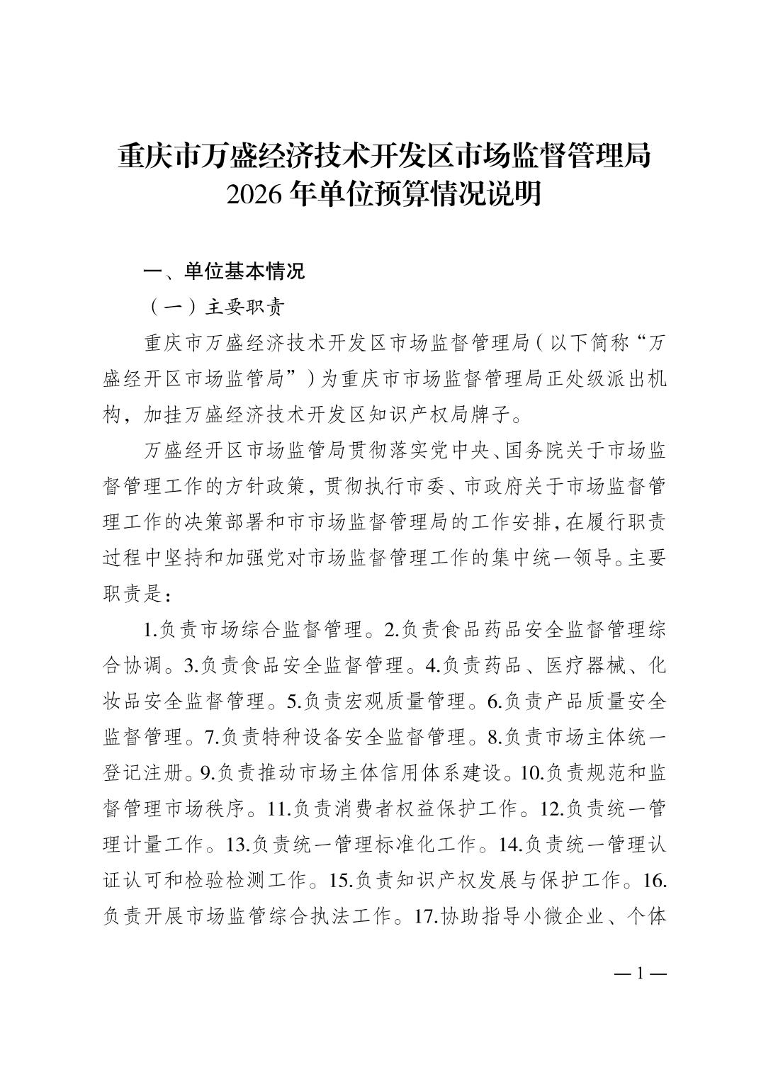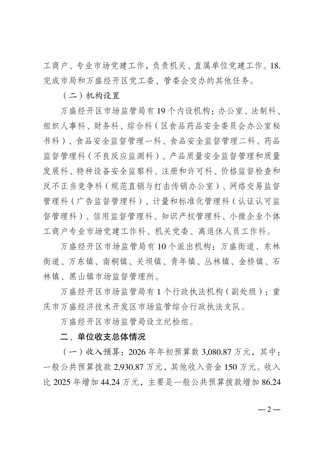 重庆市万盛经济技术开发区市场监督管理局2026年单位预算情况说明