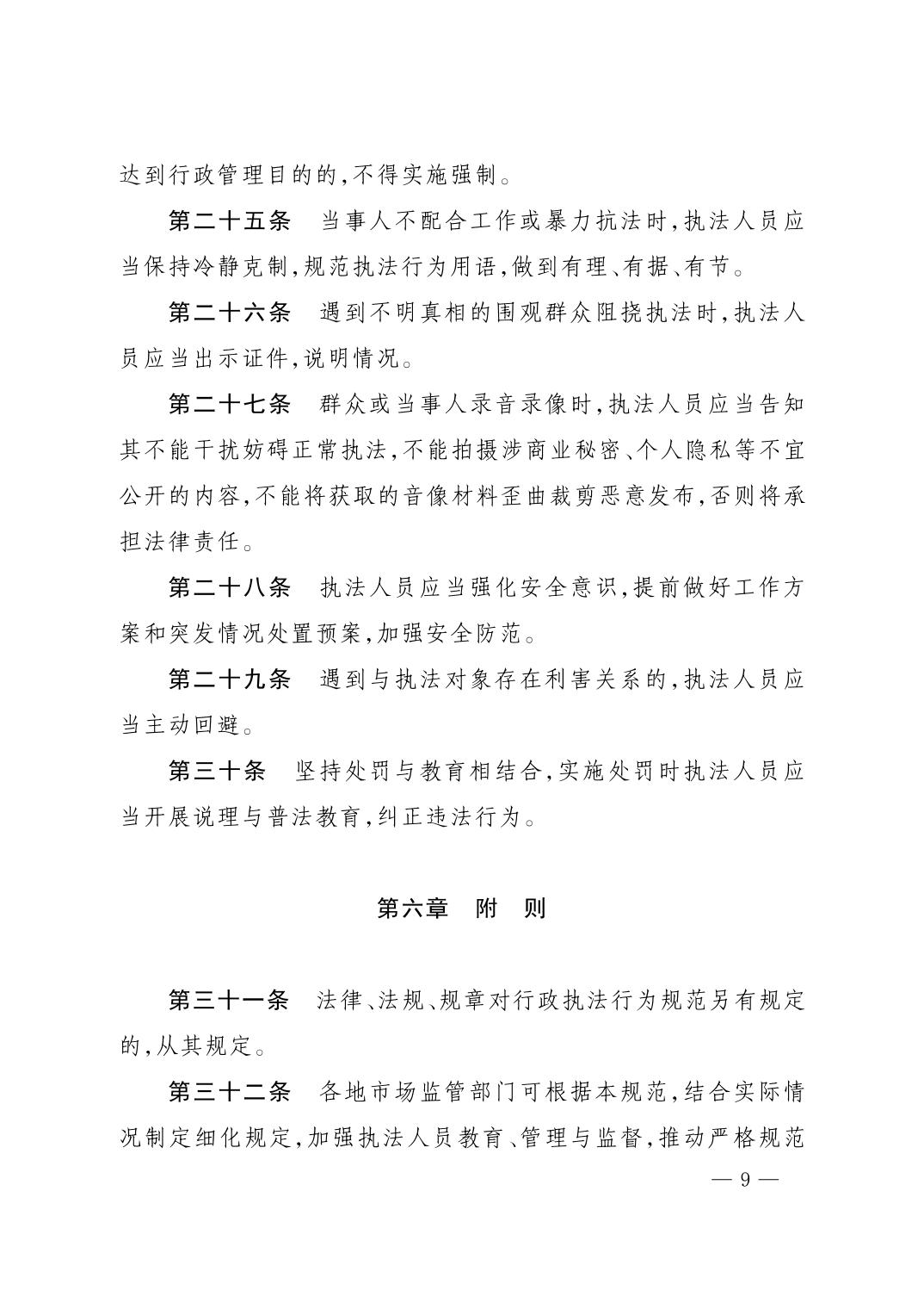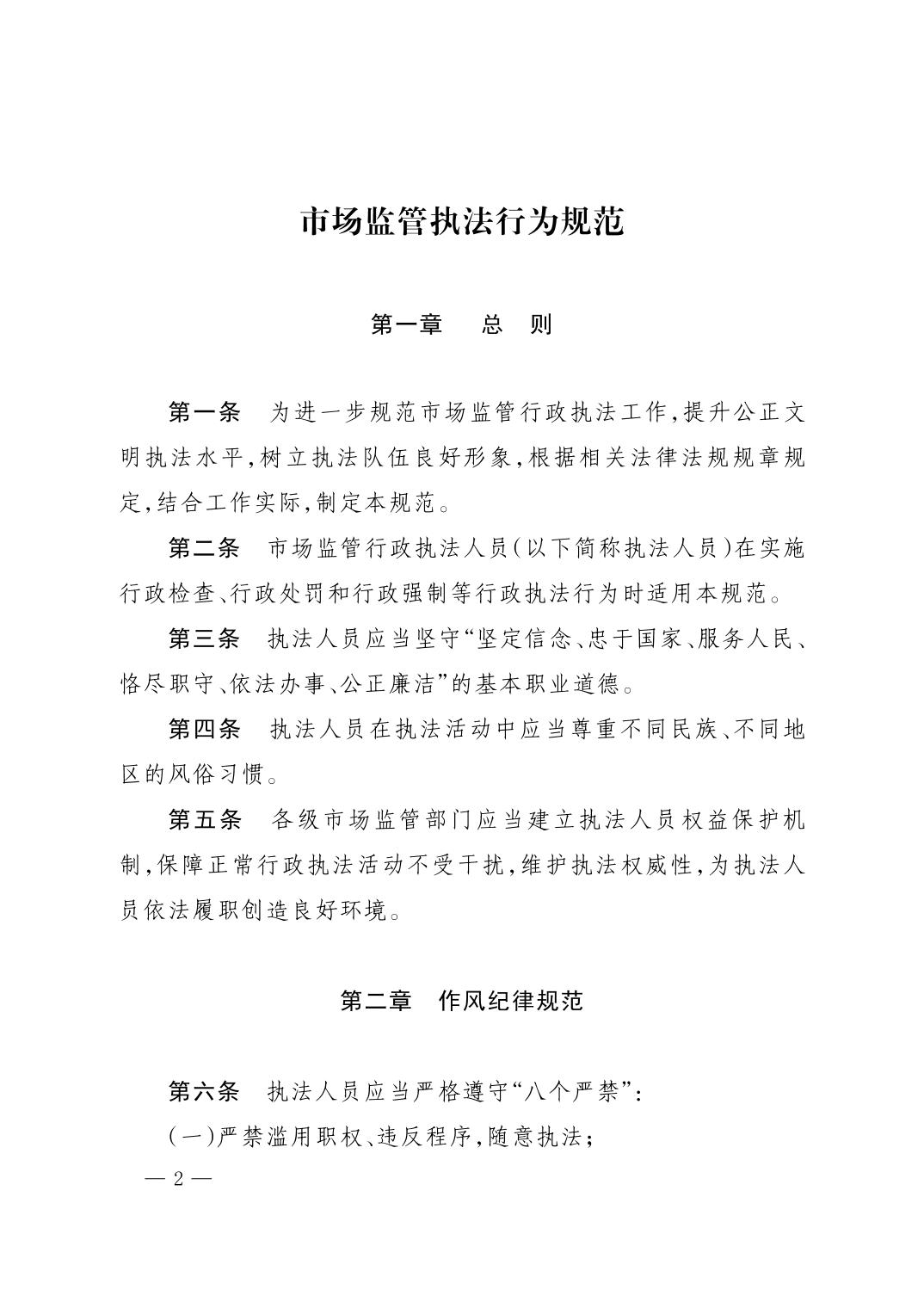 市场监管总局关于印发《市场监管执法行为规范》的通知