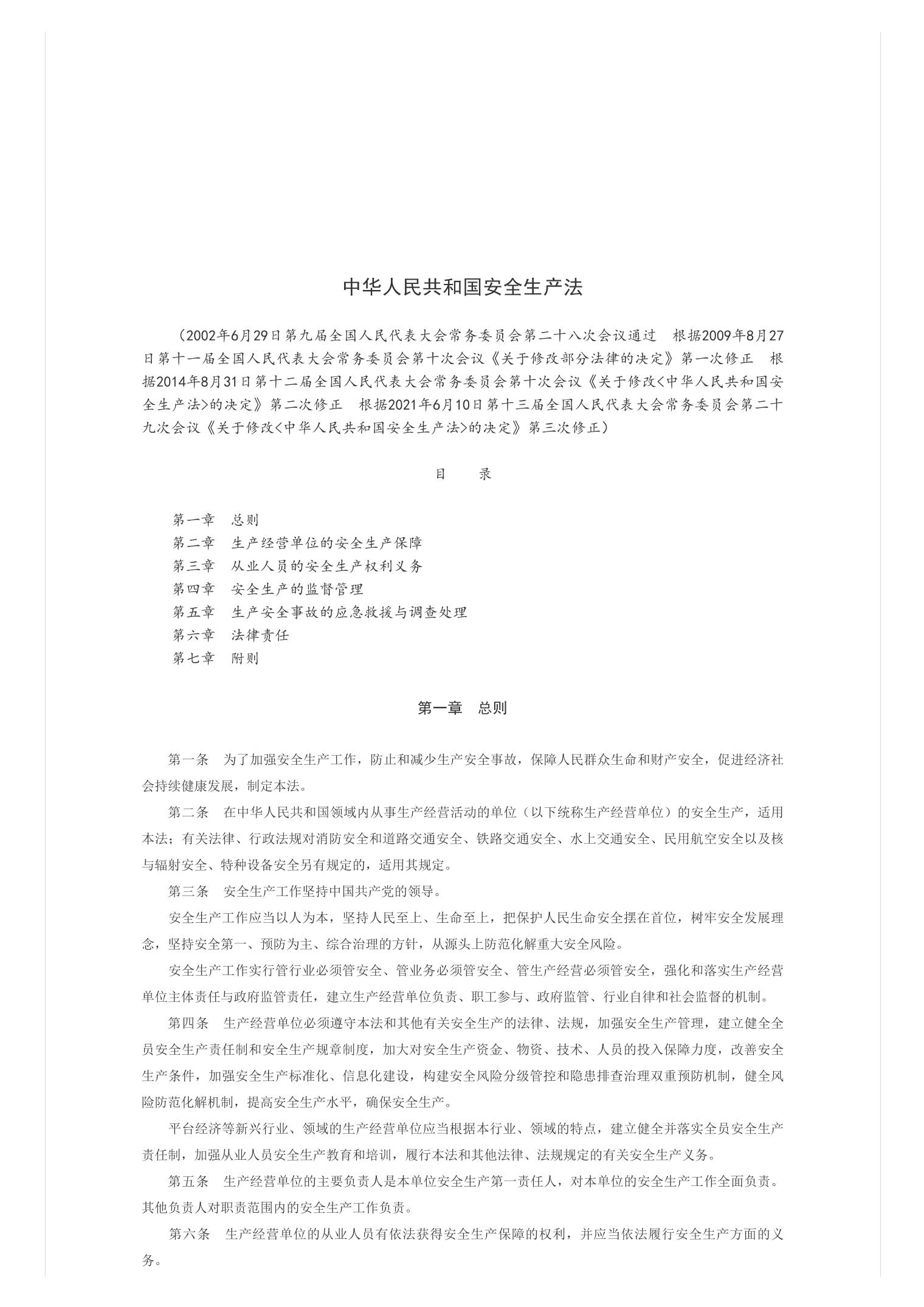 | [ 主题分类 ] | 市场监管、安全生产监管 | [ 体裁分类 ] | 法律 |