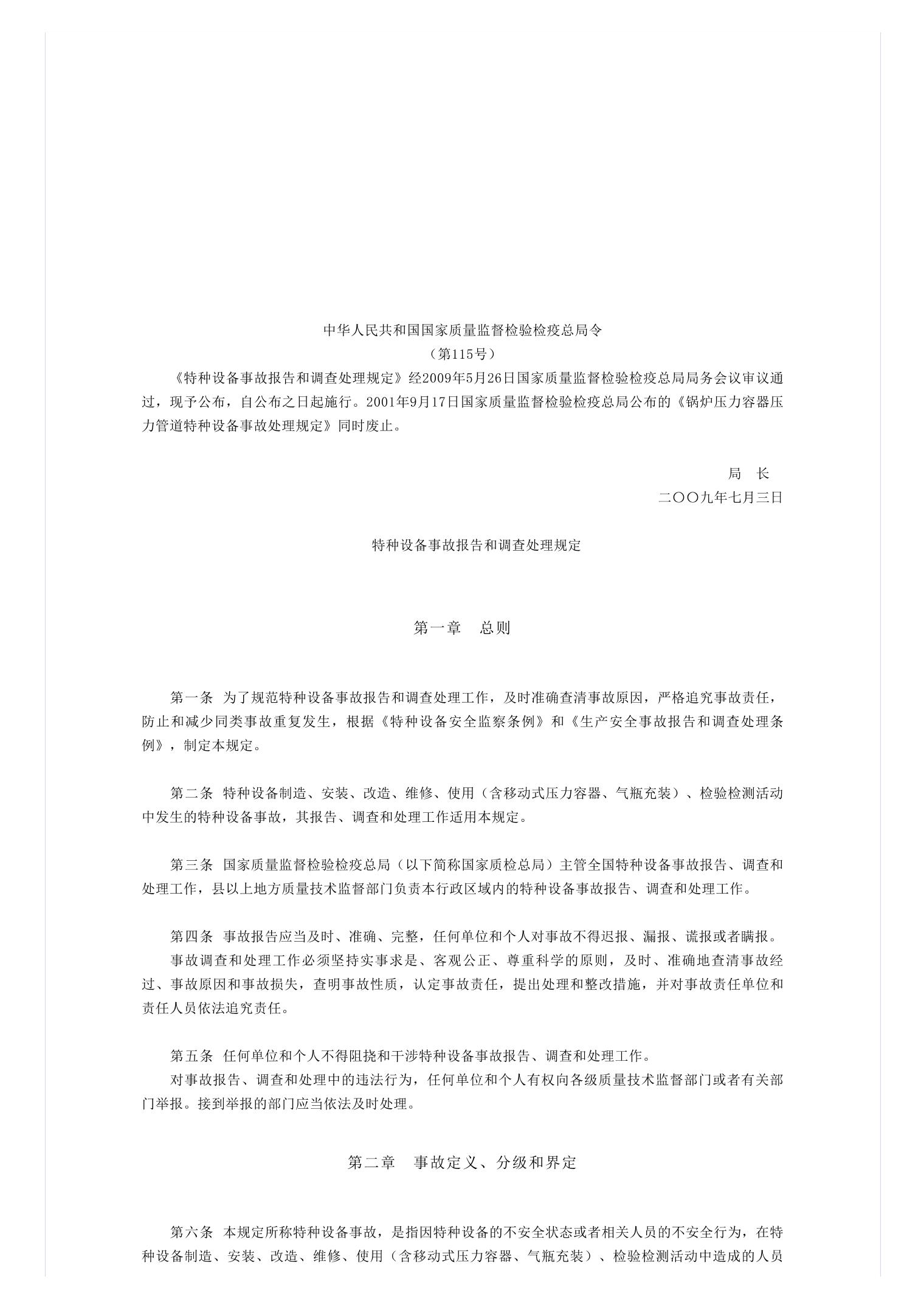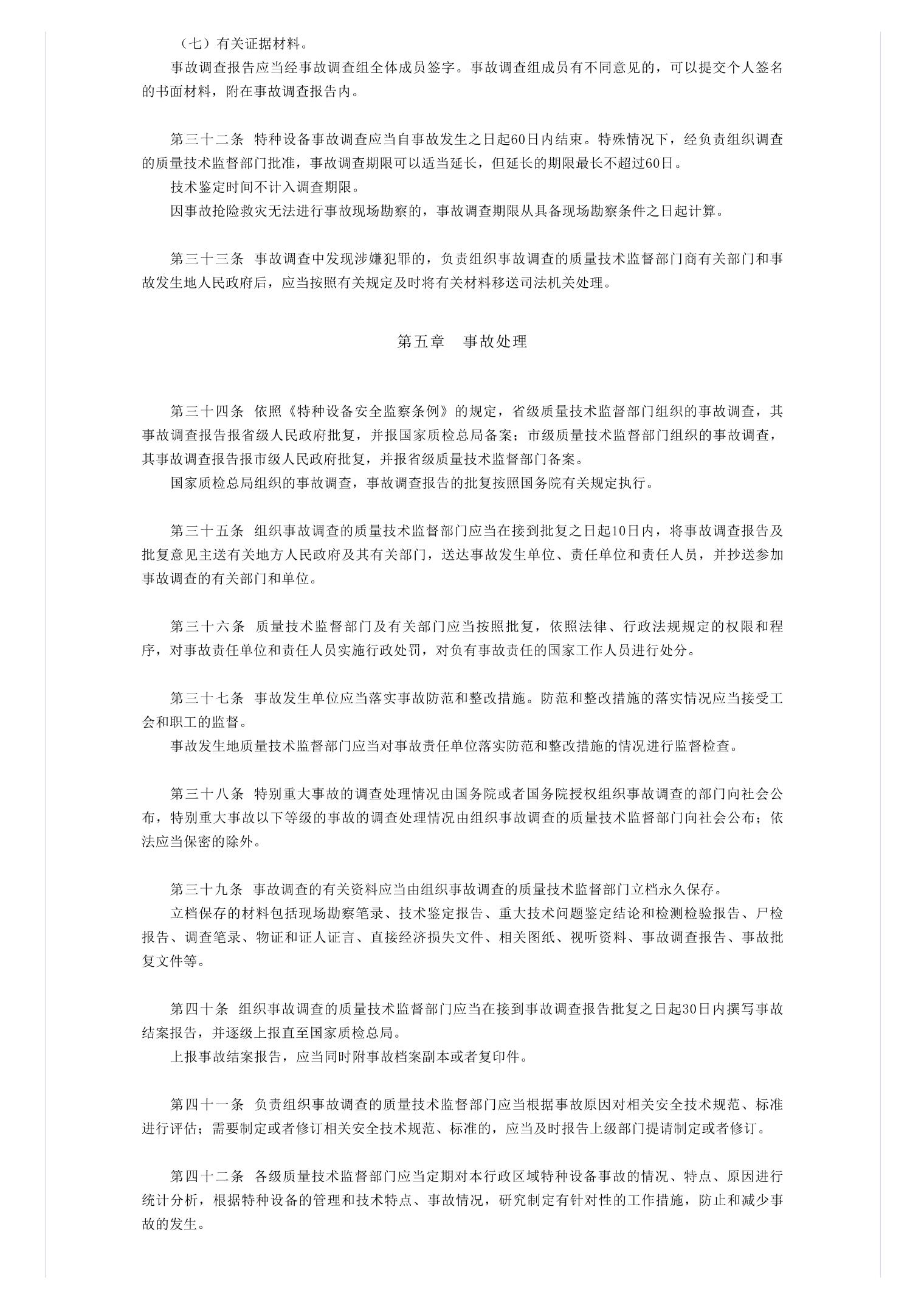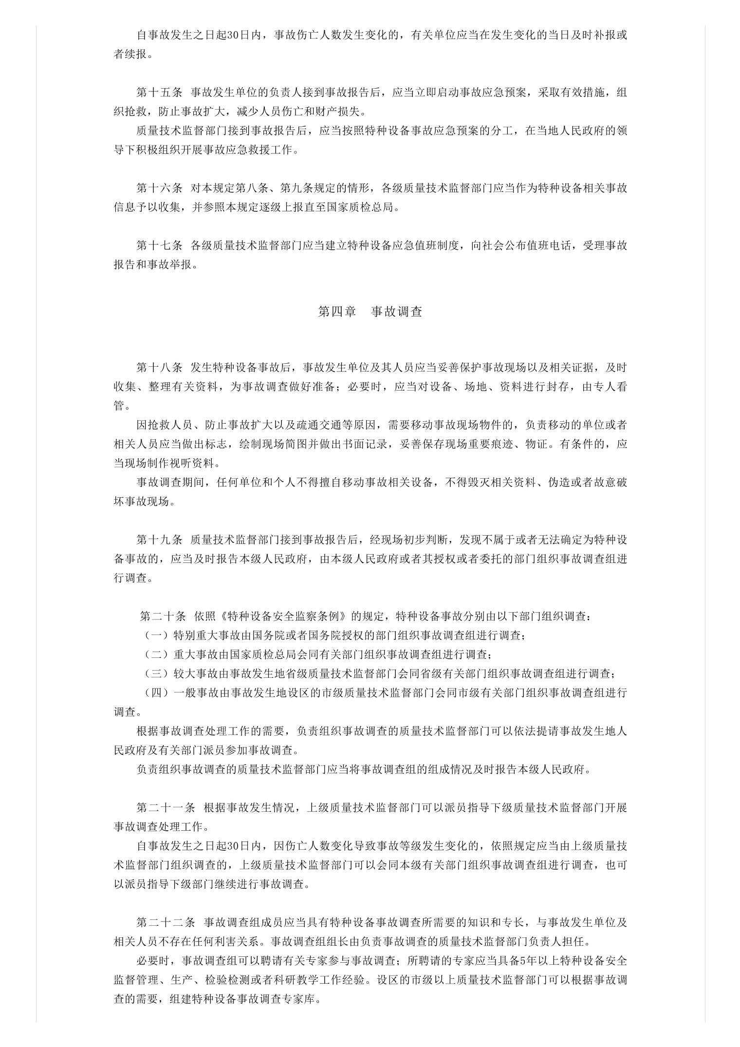 特种设备事故报告和调查处理规定