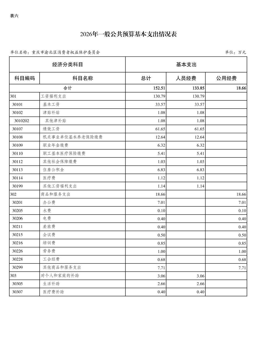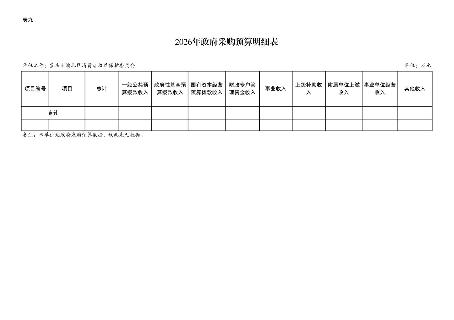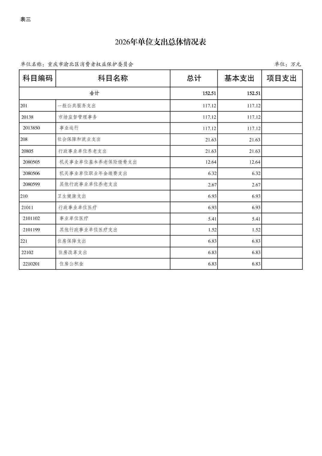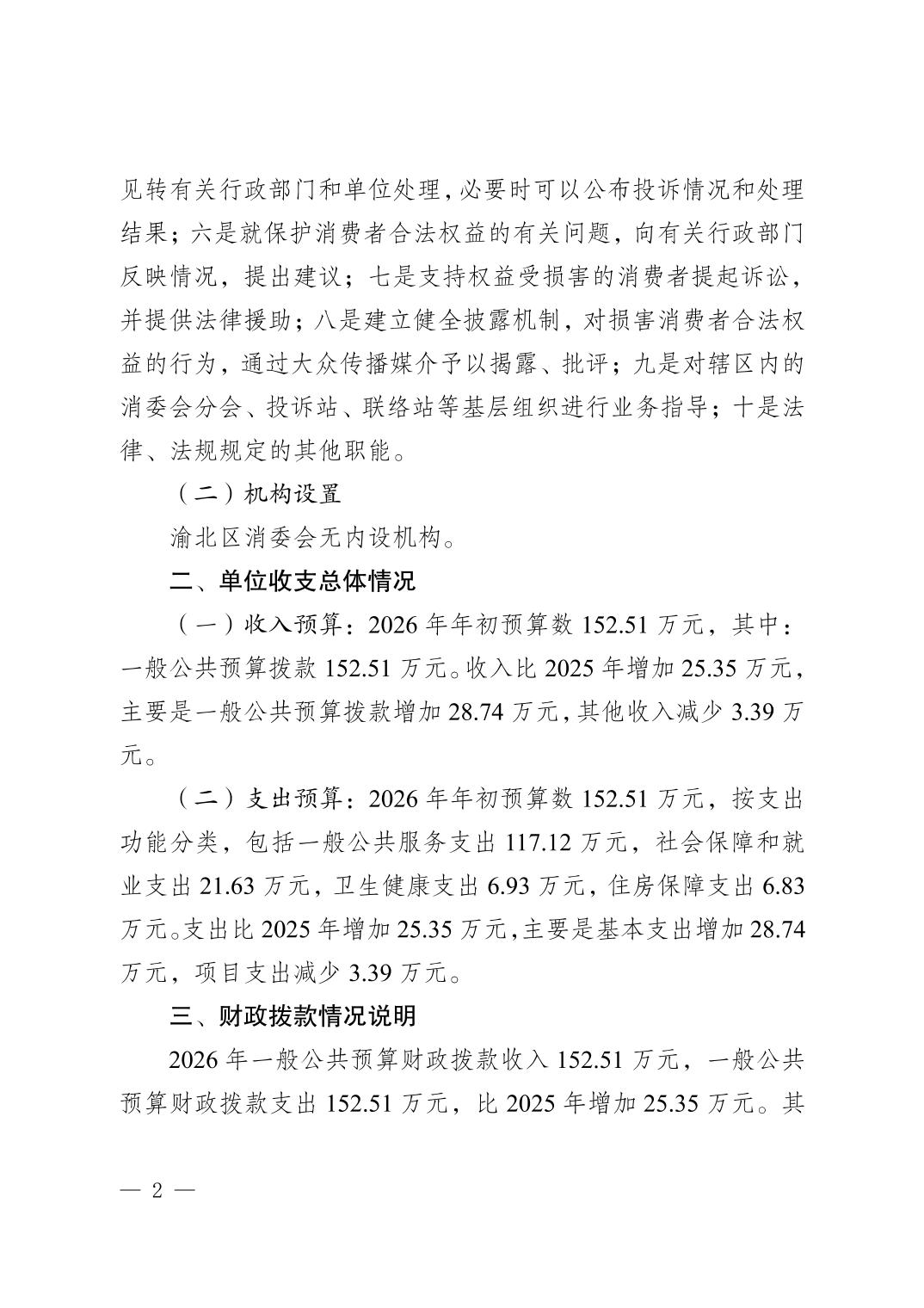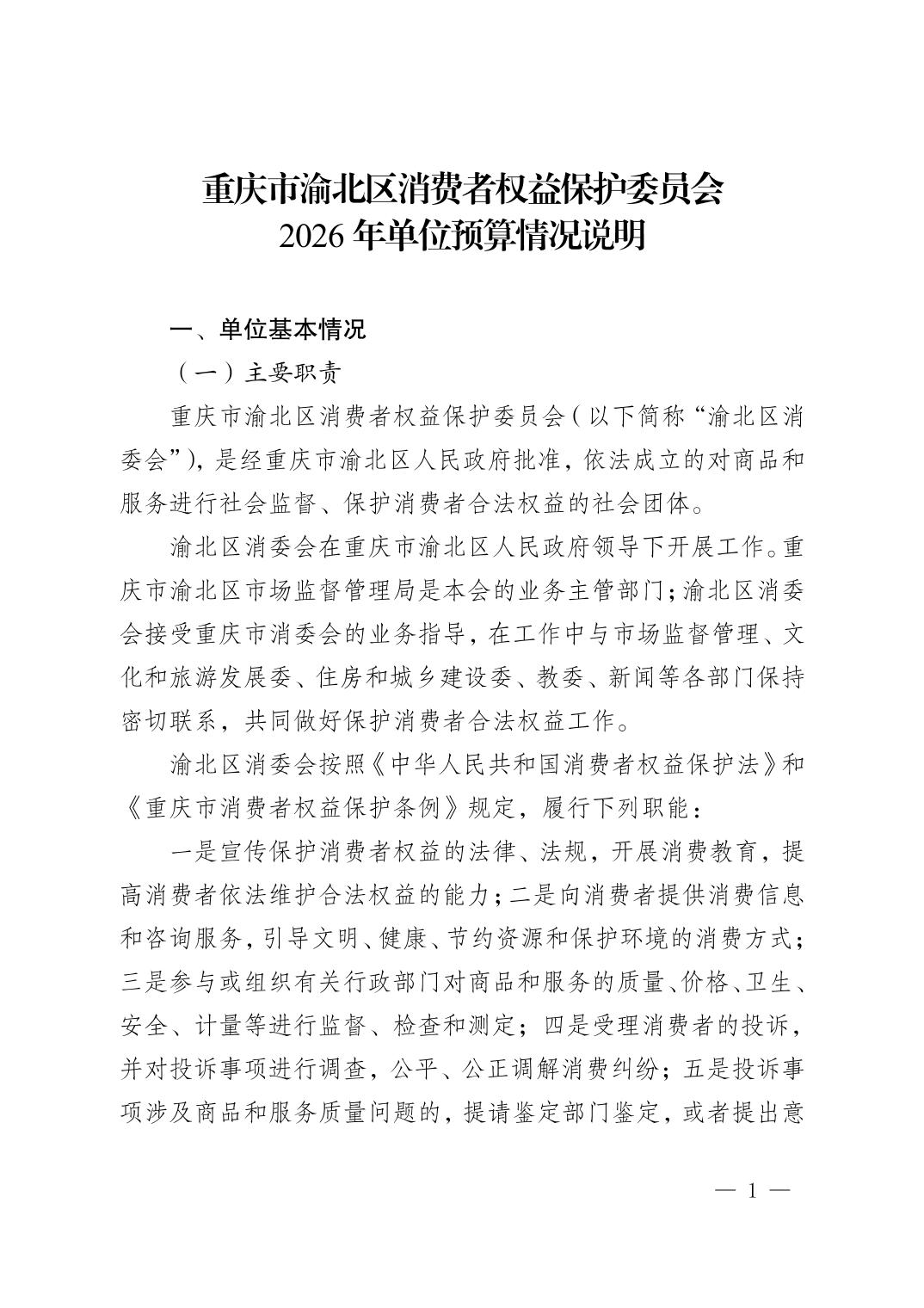 重庆市渝北区消费者权益保护委员会2026年单位预算情况说明及附表