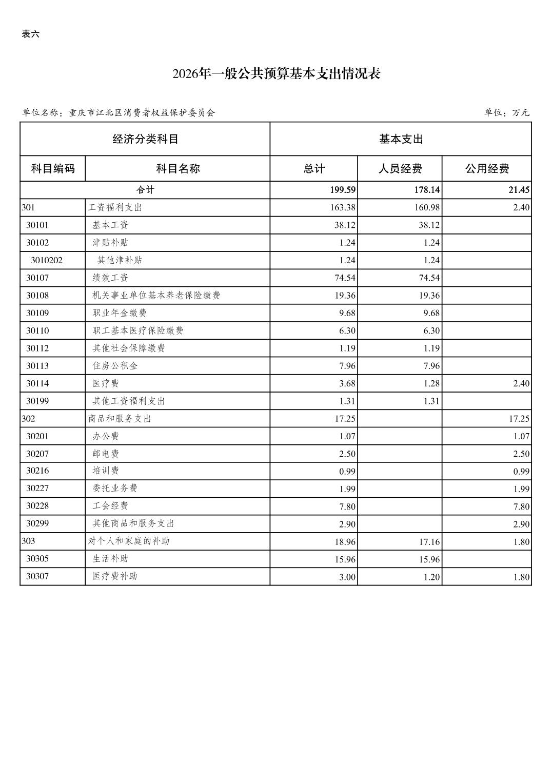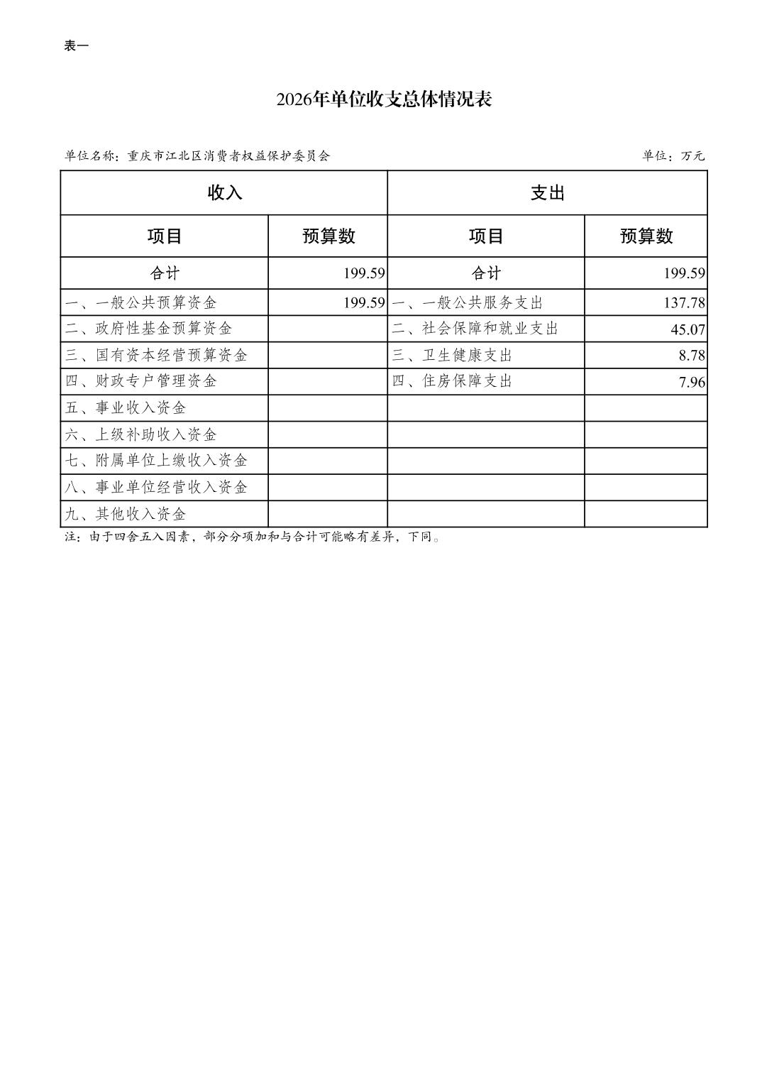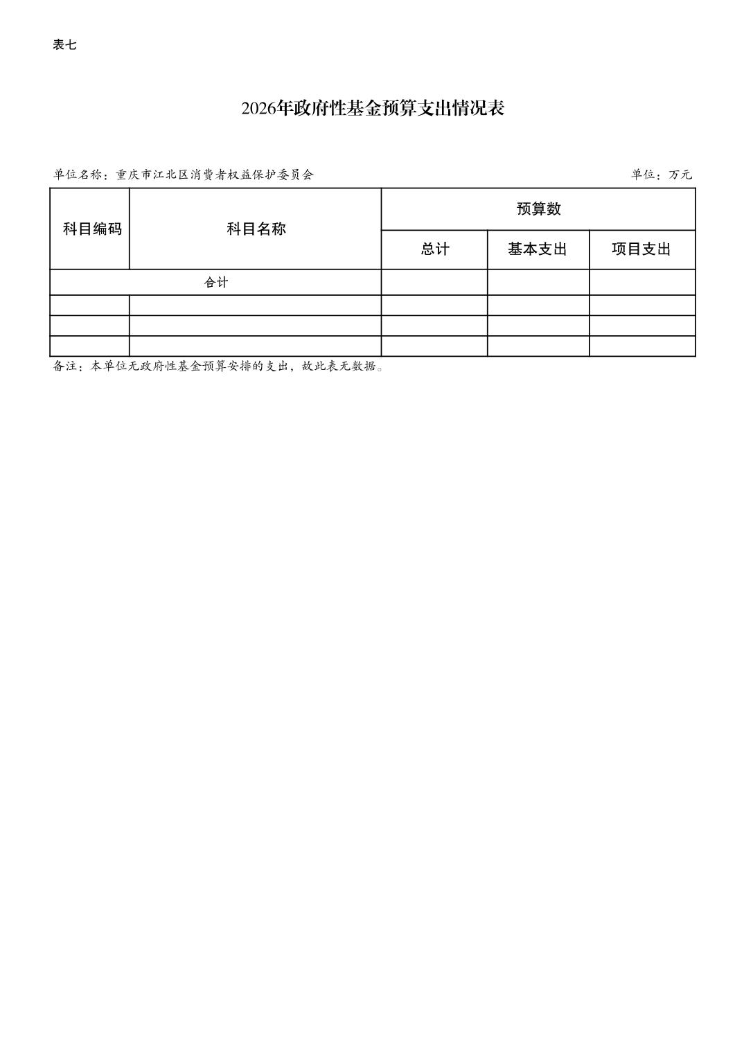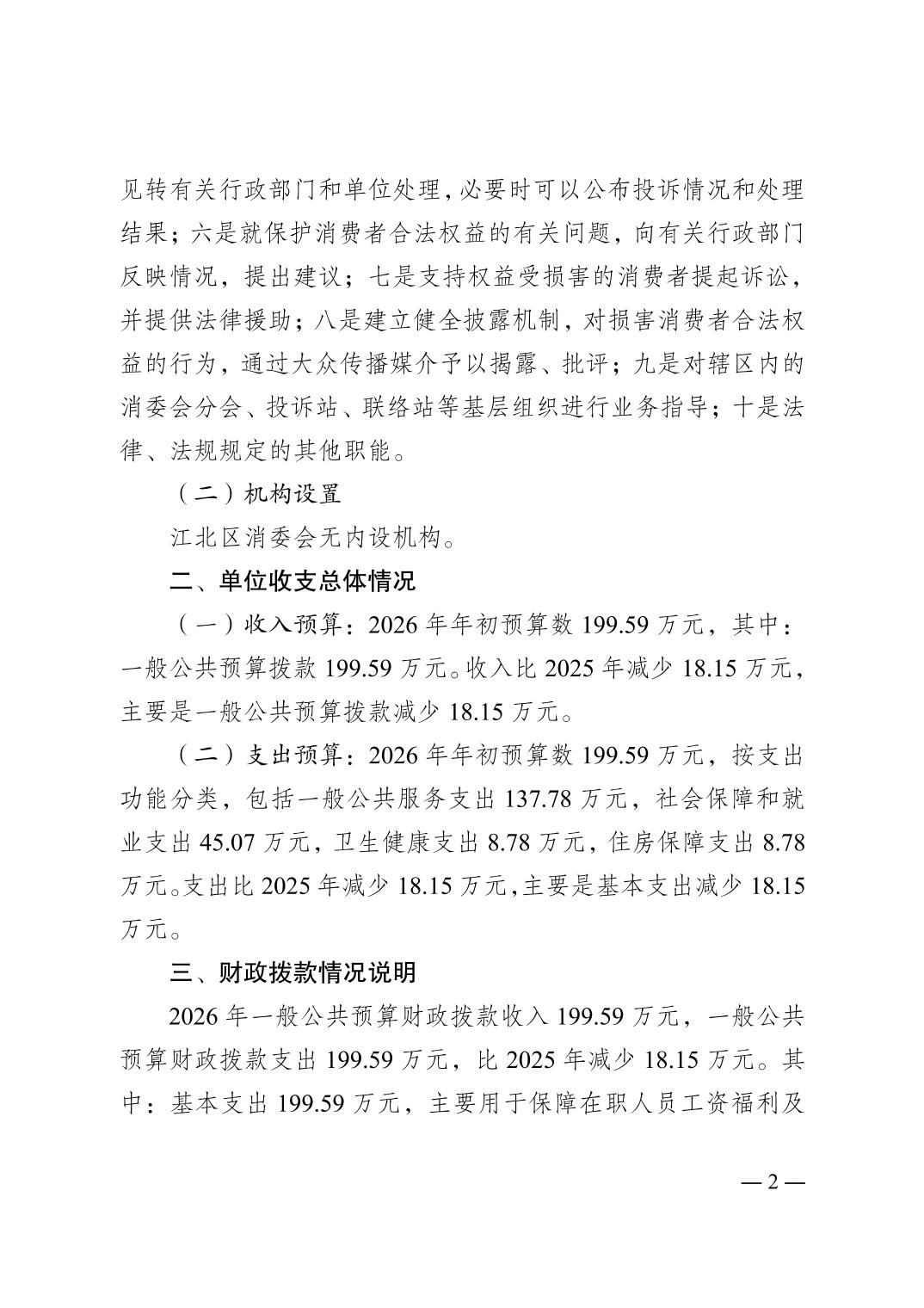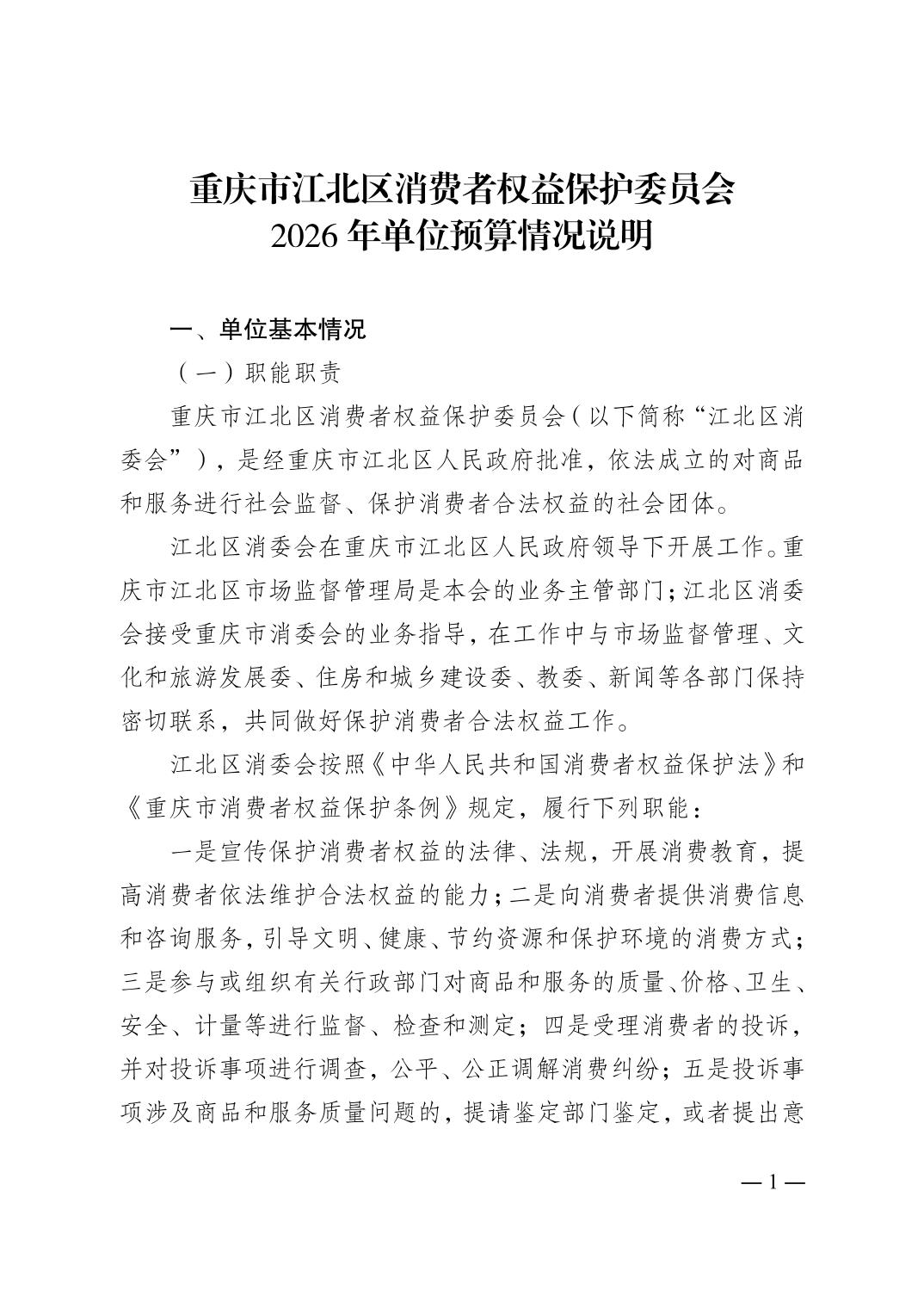 重庆市江北区消费者权益保护委员会2026年单位预算情况说明及附表