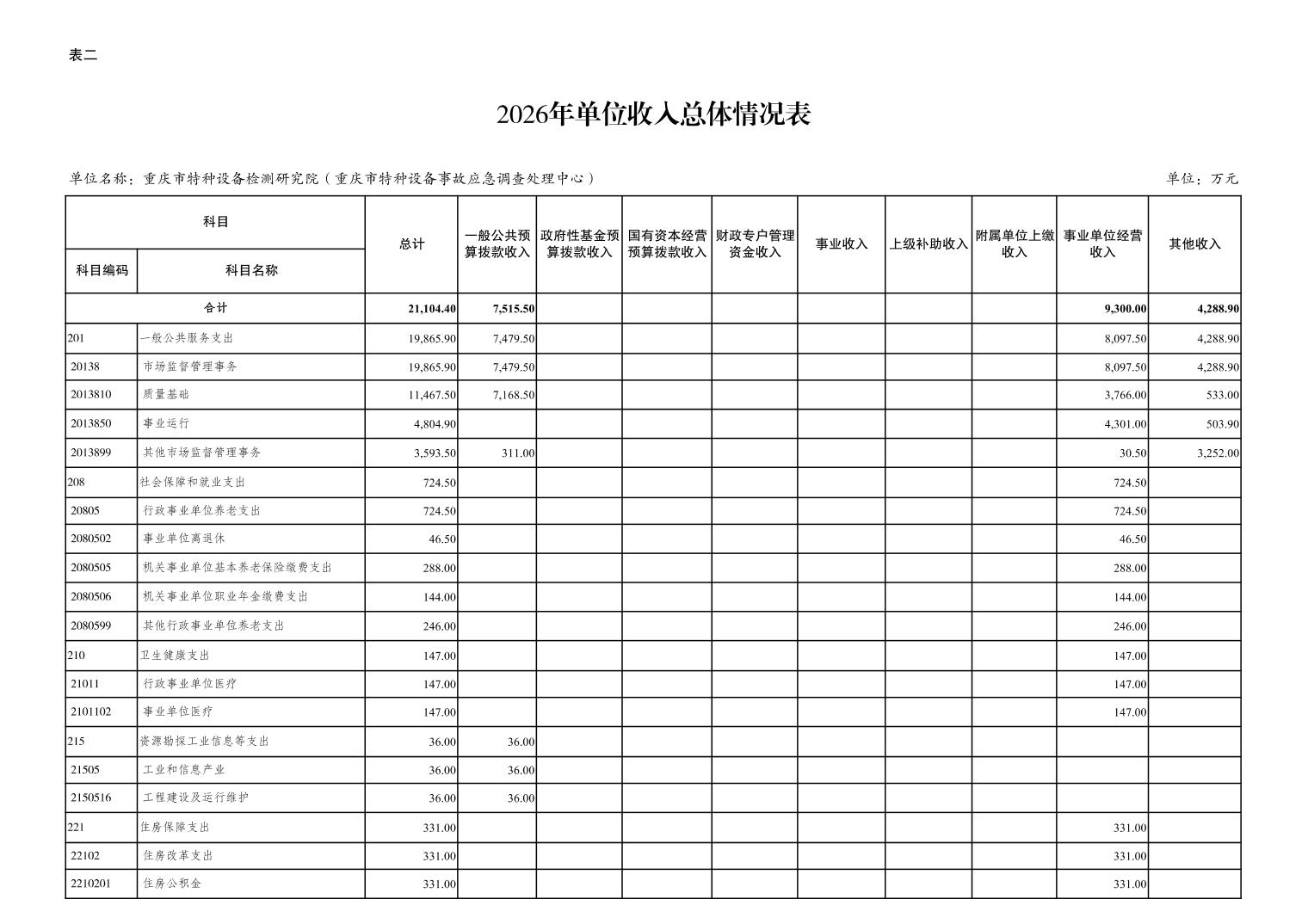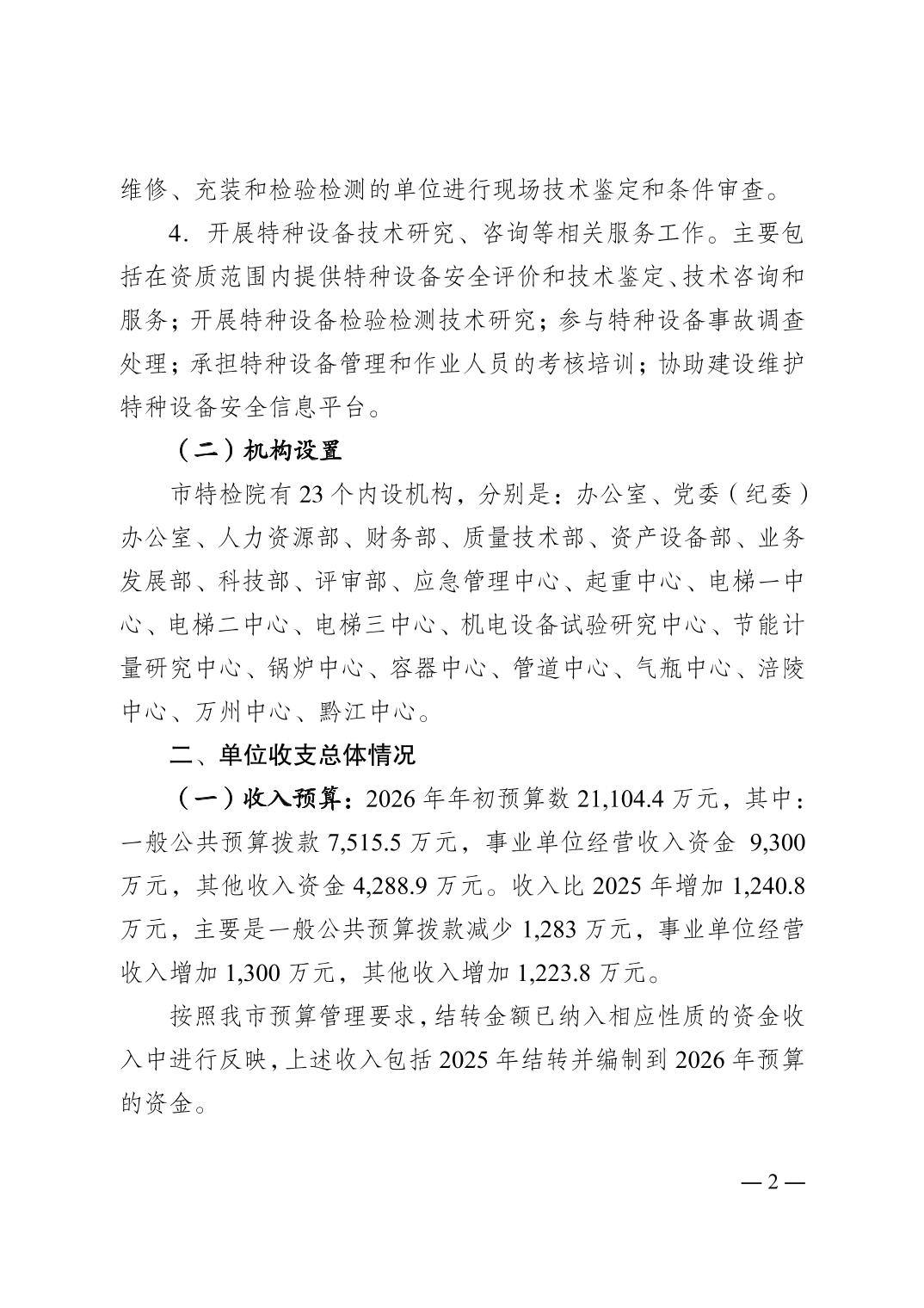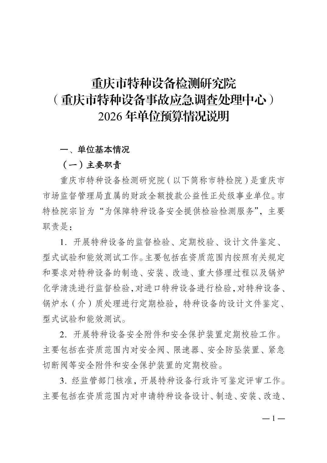 重庆市特种设备检测研究院(重庆市特种设备事故应急调查处理中心)2026年单位预算情况说明及附表