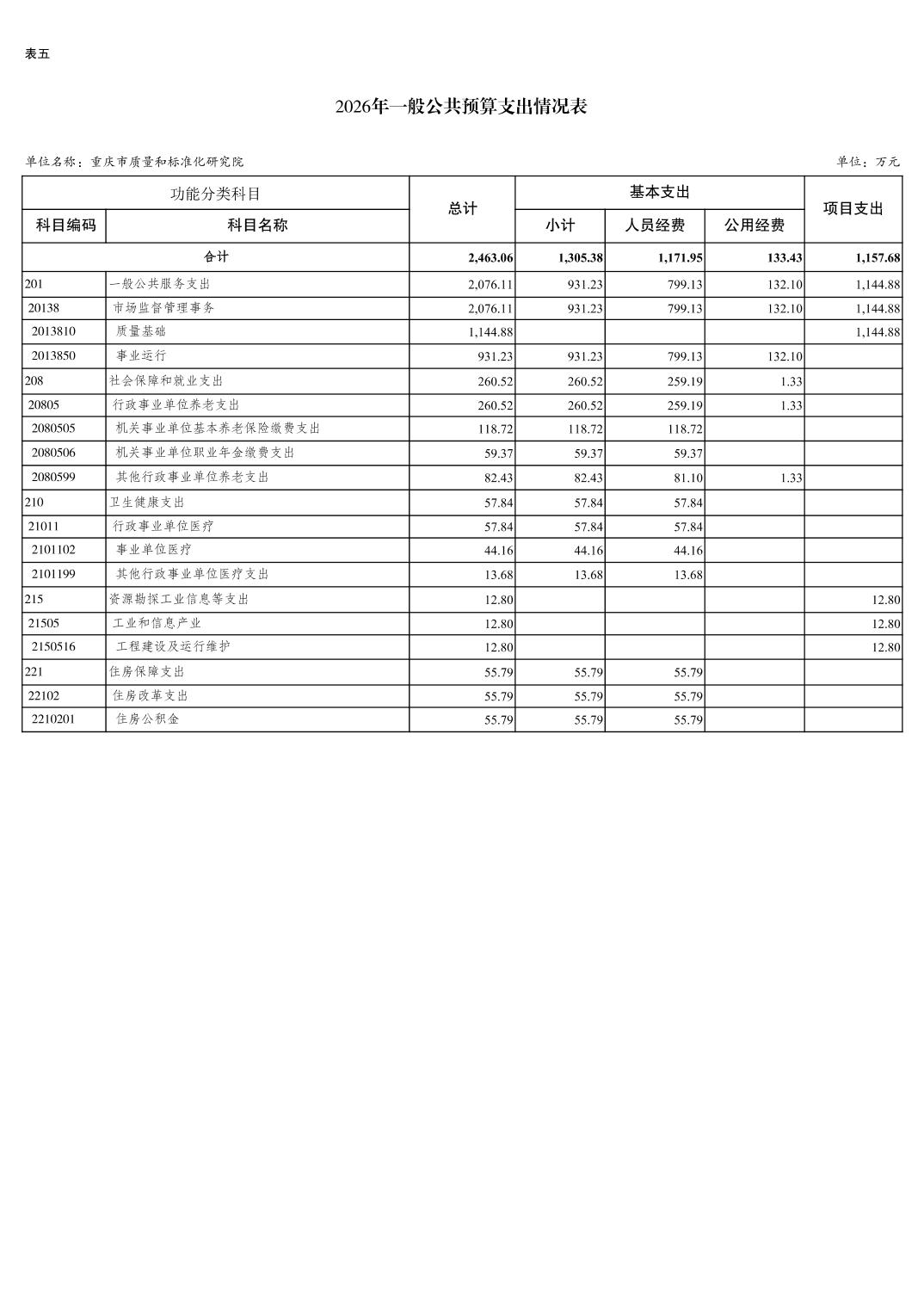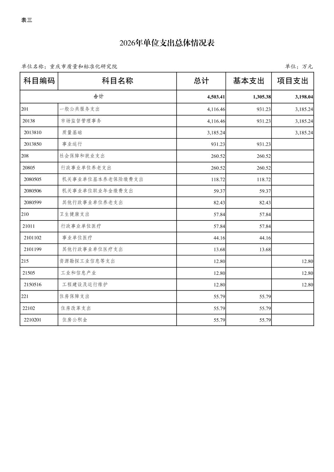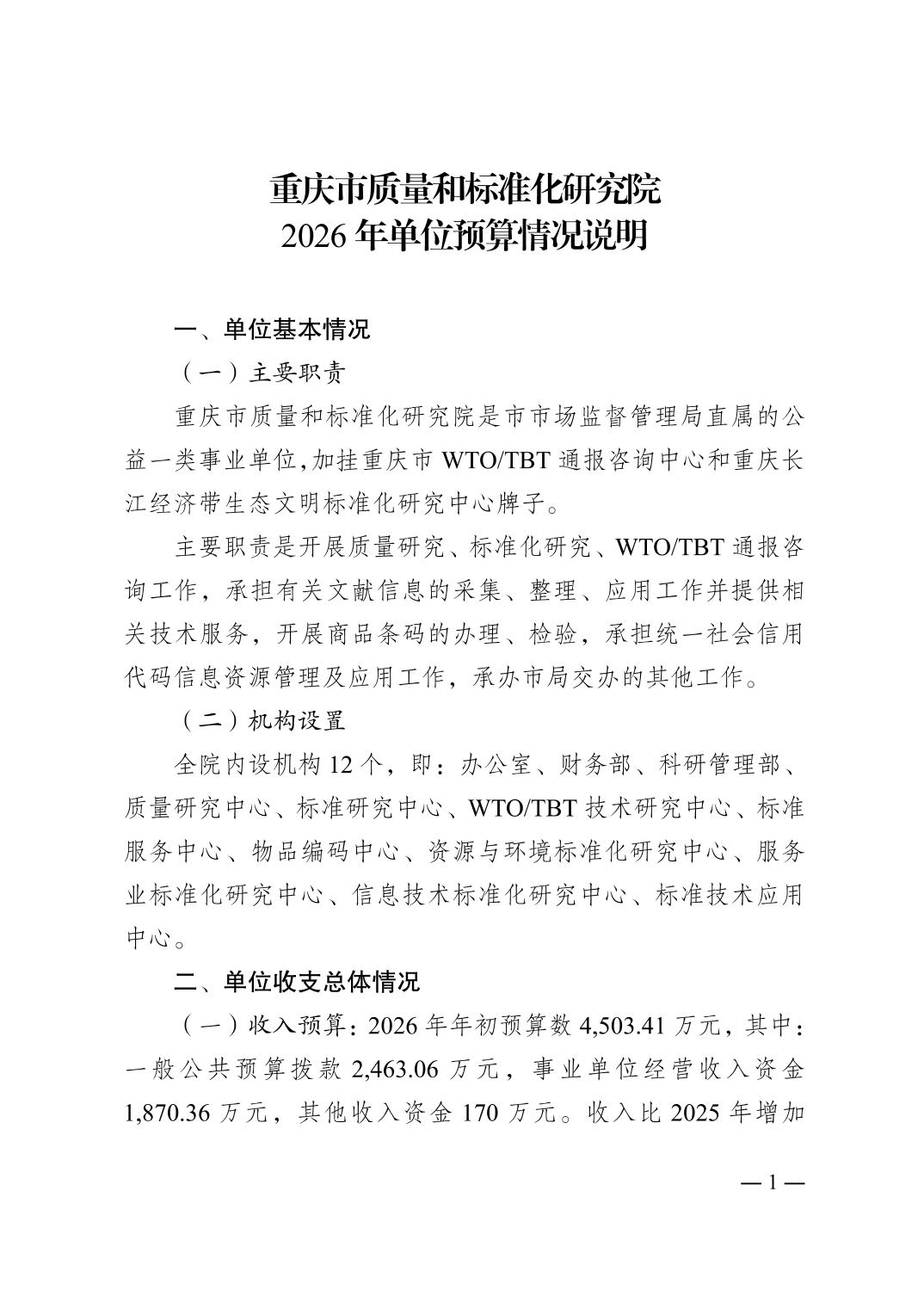 重庆市质量和标准化研究院2026年单位预算情况说明及附表