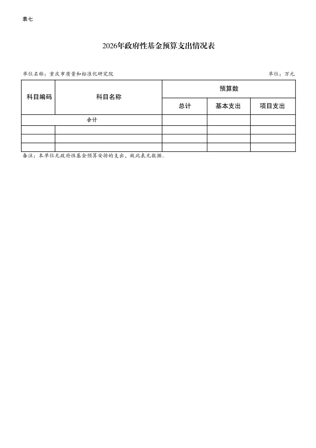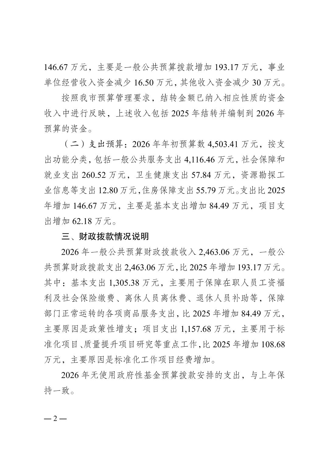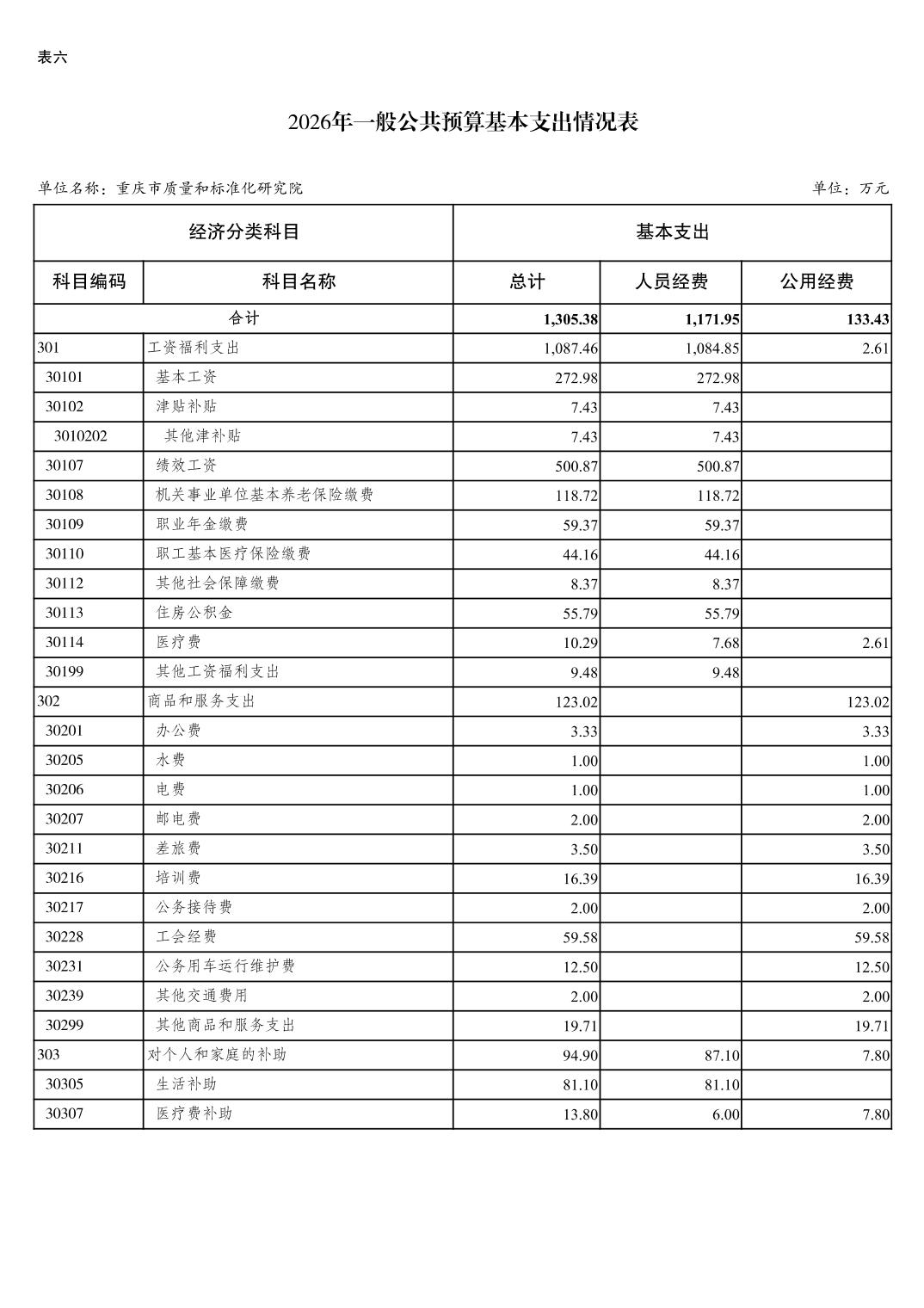 重庆市质量和标准化研究院2026年单位预算情况说明及附表